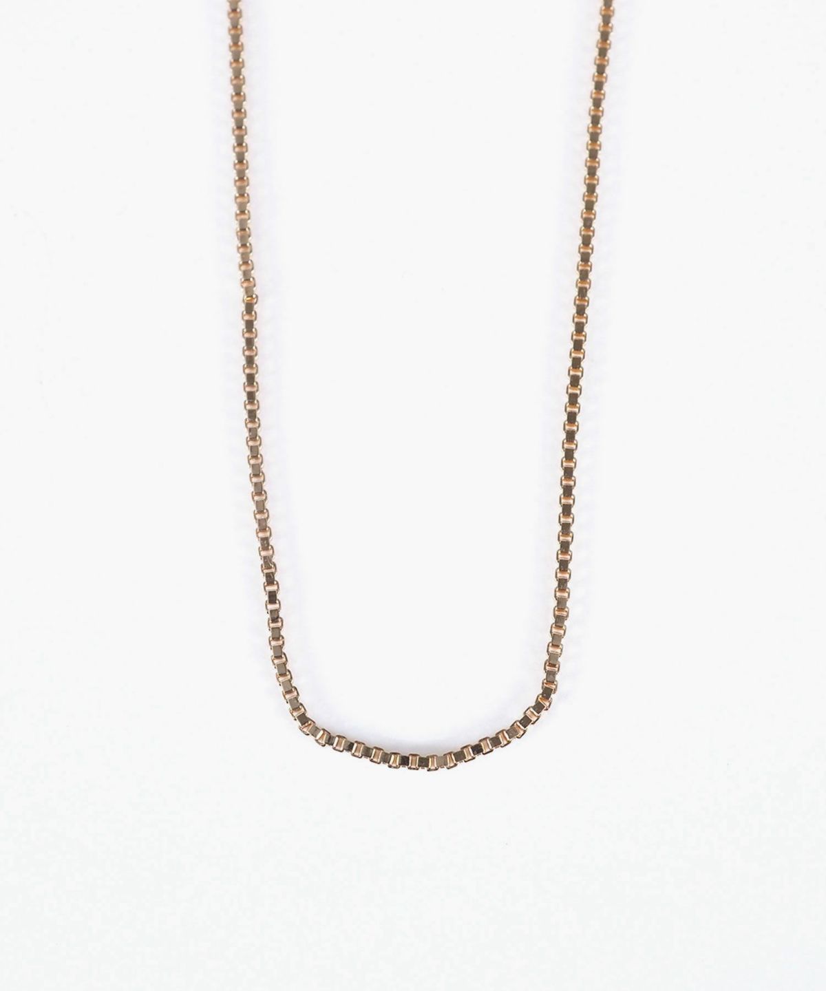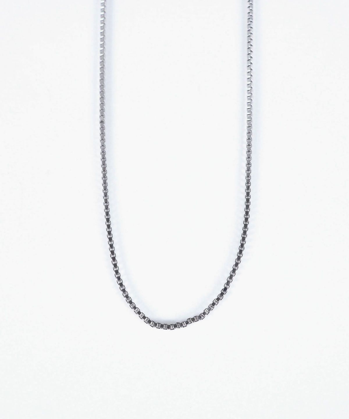 四角いコマが隙間なく連なるベネチアンチェーンネックレス。他のデザインにはないシンプルかつスタイリッシュな輝きが魅力です。コマ一つ一つが鏡のように光を反射し、立体的なフォルムが着けるだけで一気に垢抜けた印象に。ユニセックスネックレスです。