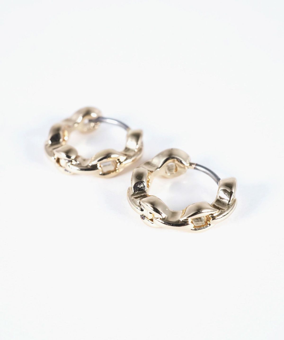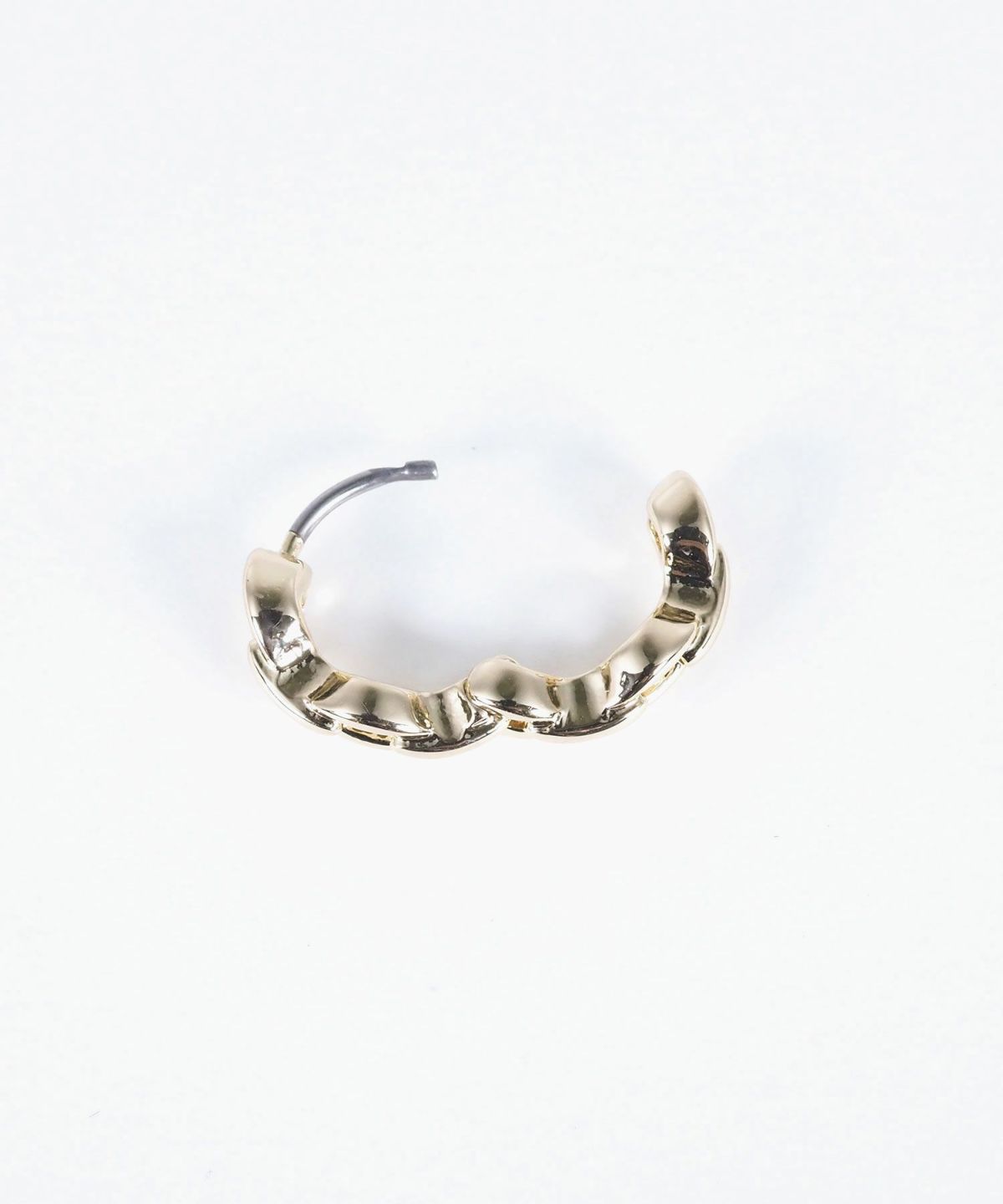 鎖のようなディテールを施したデザインがクールでエッジの効いた雰囲気を演出するワンタッチピアス。ゴールド、シルバー、ブラックの3色展開で、デイリーからオフィスまで幅広く活躍し、ユニセックスでお使いいただけます。お肌に優しいステンレスポストを使用しており金属アレルギーの方でも安心してお使いいただけます。ペアピアス(両耳用)です。