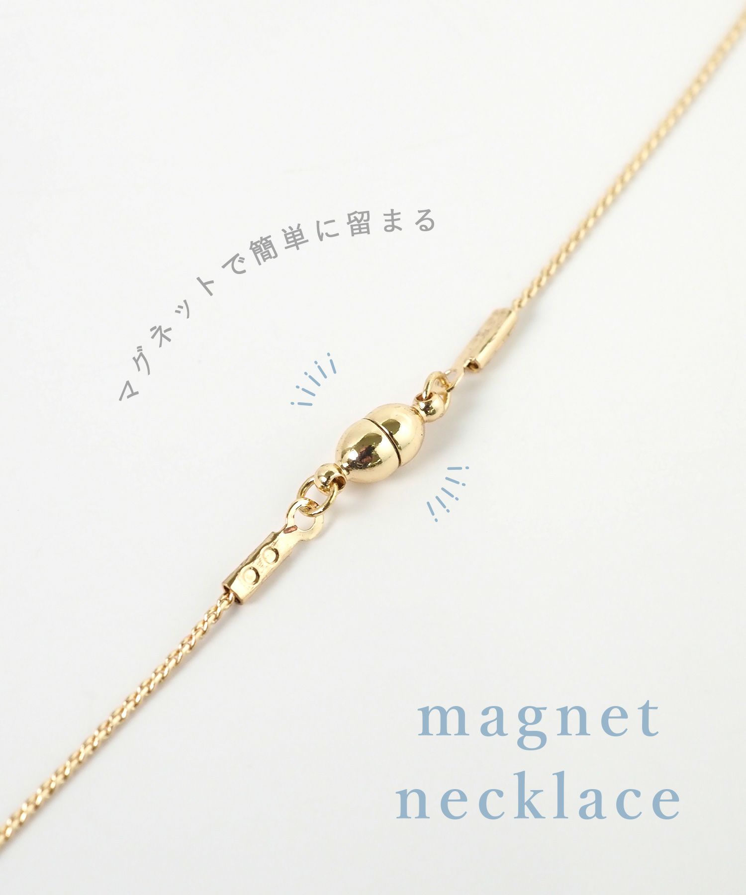 華奢なラインが女性らしさを引き立てる、ミニマルなステーションネックレス。 派手すぎず、かつ地味にならない絶妙な存在感で、オフィスカジュアルから休日のお出かけまで幅広く活躍します。留め具が磁石になっているので、着脱が簡単♪おでかけ前にサッとつけられます。