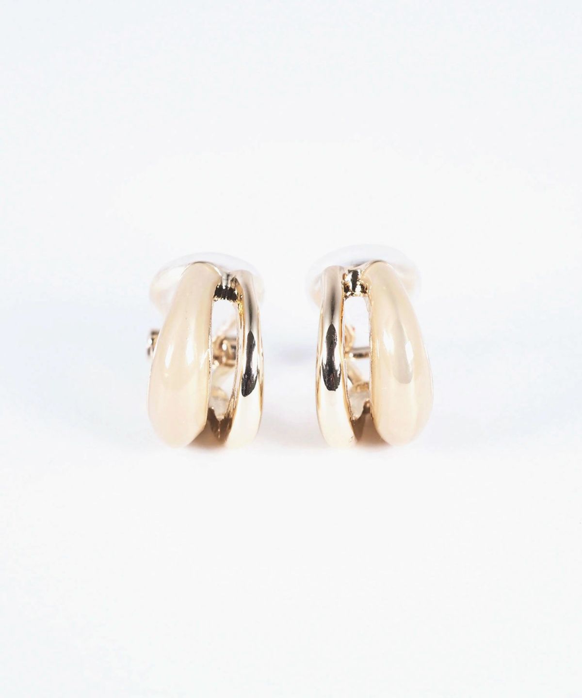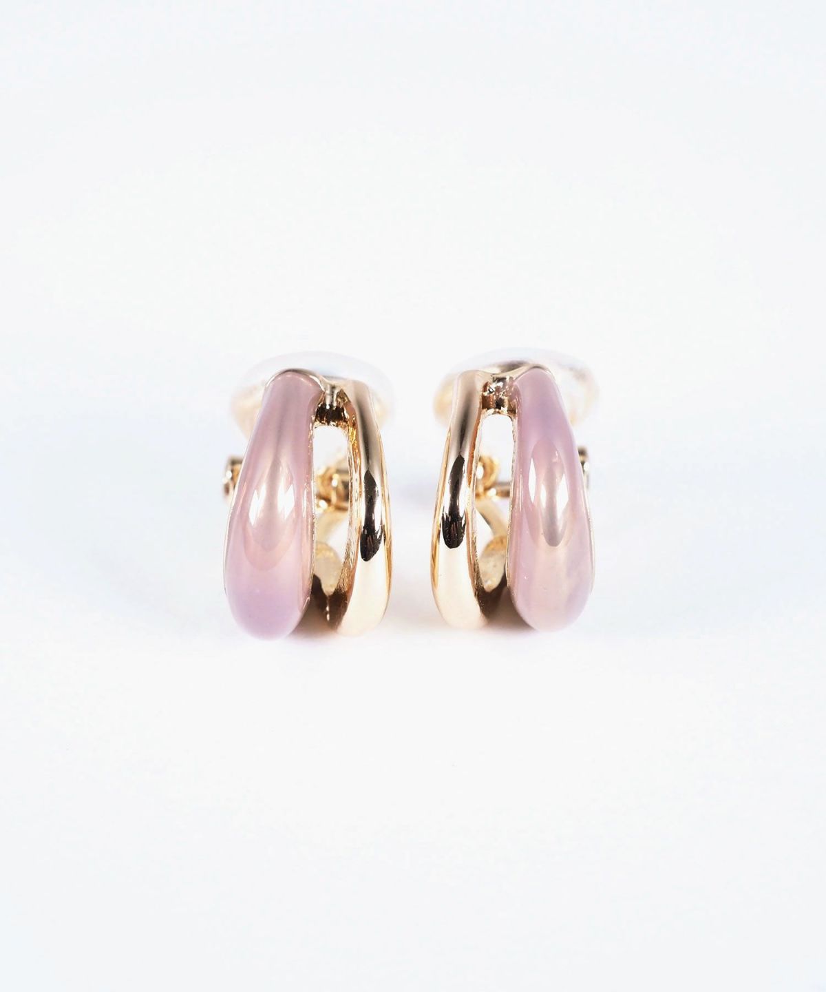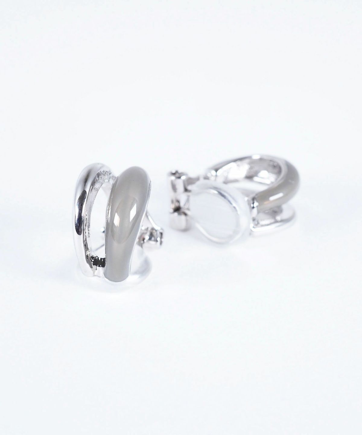 なめらかなメタルのカーブに艶やかなカラーを差し込んだバイカラーデザインのクリップイヤリング。シンプルながらも遊び心のあるデザインで普段のコーディネートをワンランクアップ。金具を開いてパチッと挟むだけの簡単で痛くなりにくいクリップ式です。