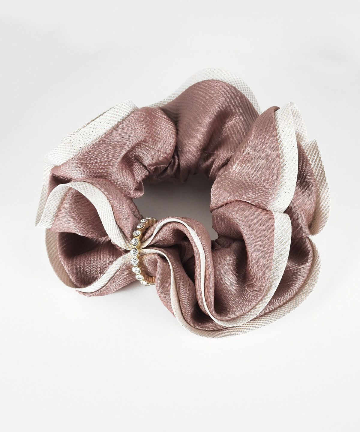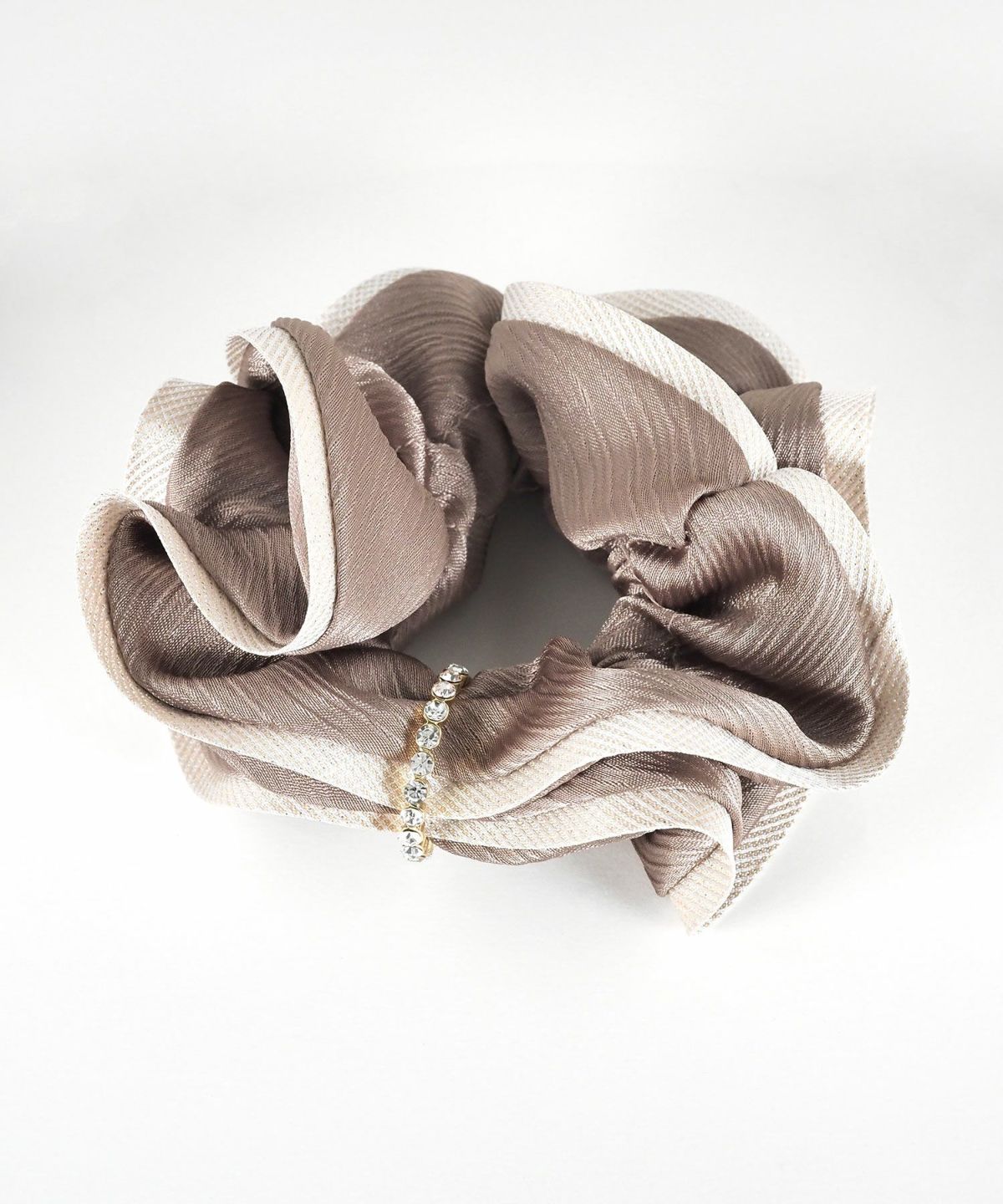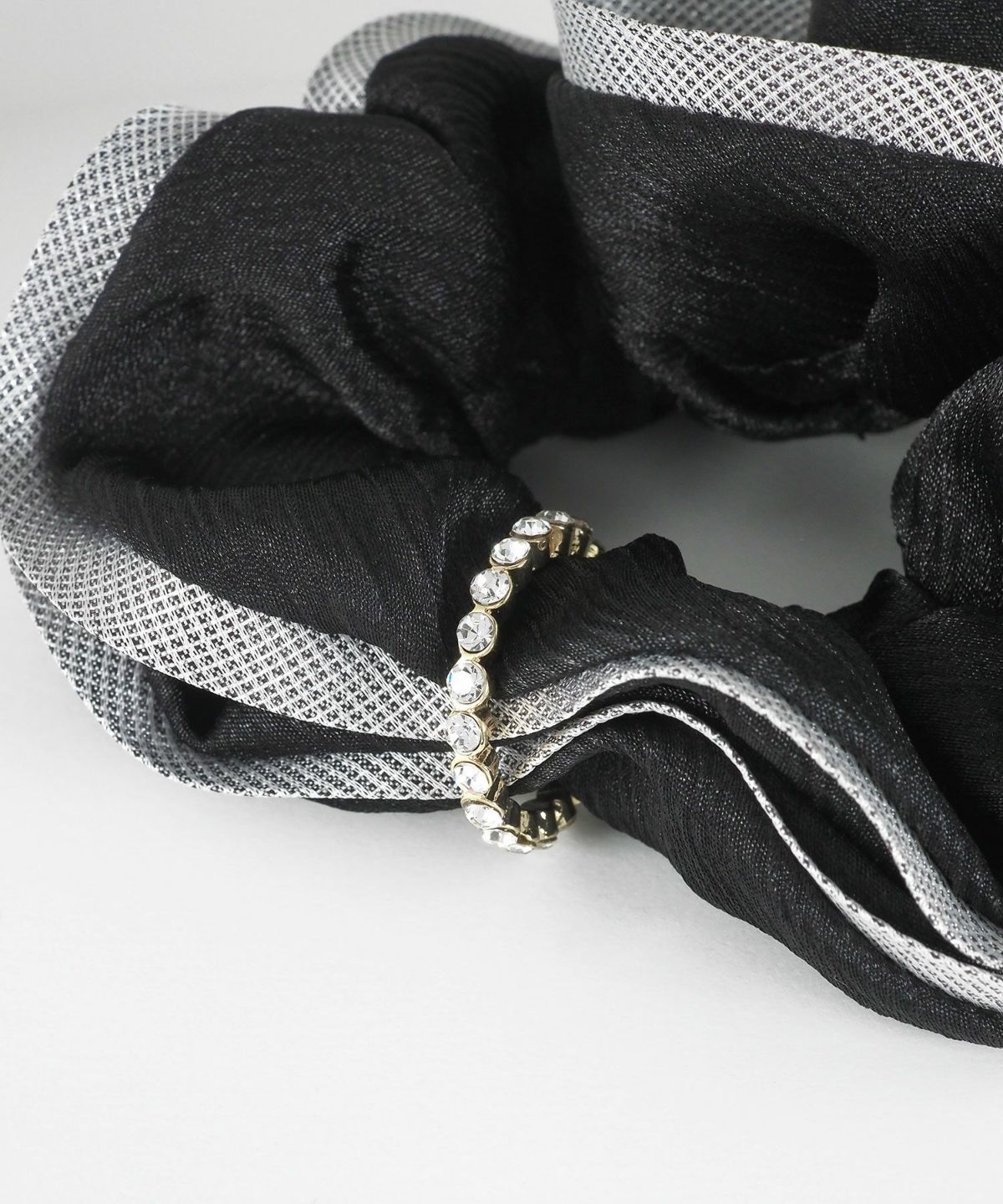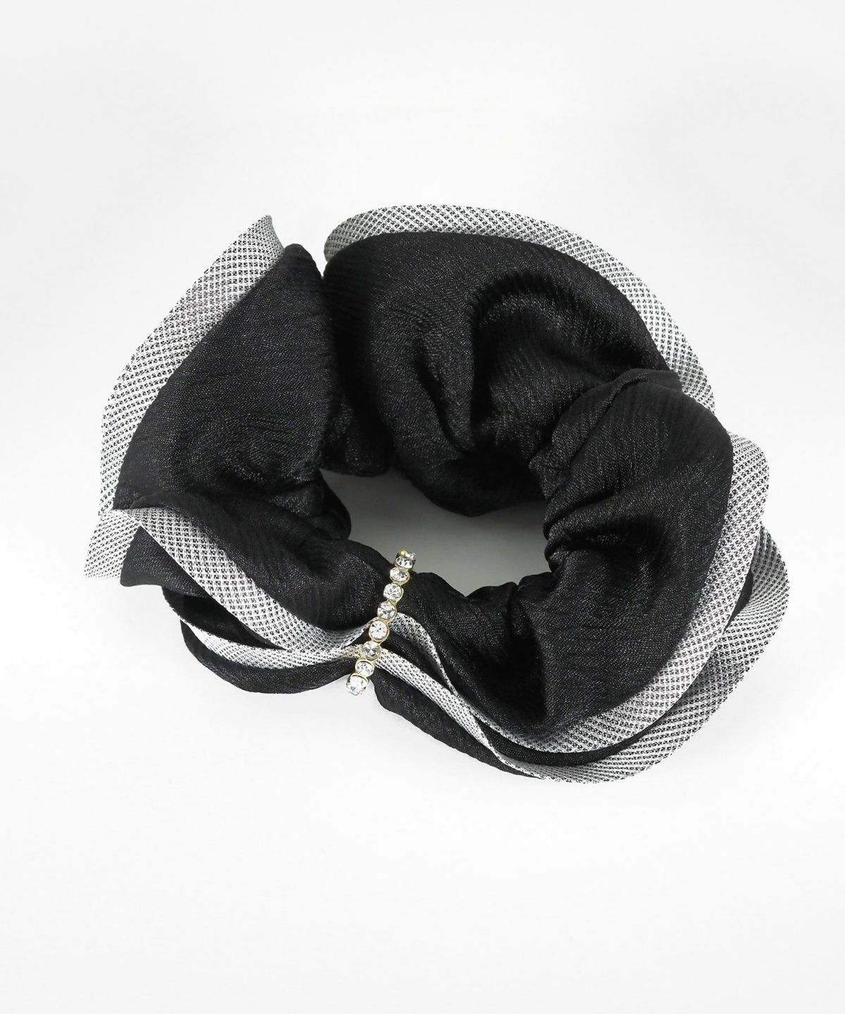 キラキラと輝くラインストーンが付いたシュシュ。サッと髪をまとめるだけで、シンプルながらも華やかな印象に。きらめく手首に付けても可愛らしく、日常使いからちょっとしたお出かけまで活躍します。