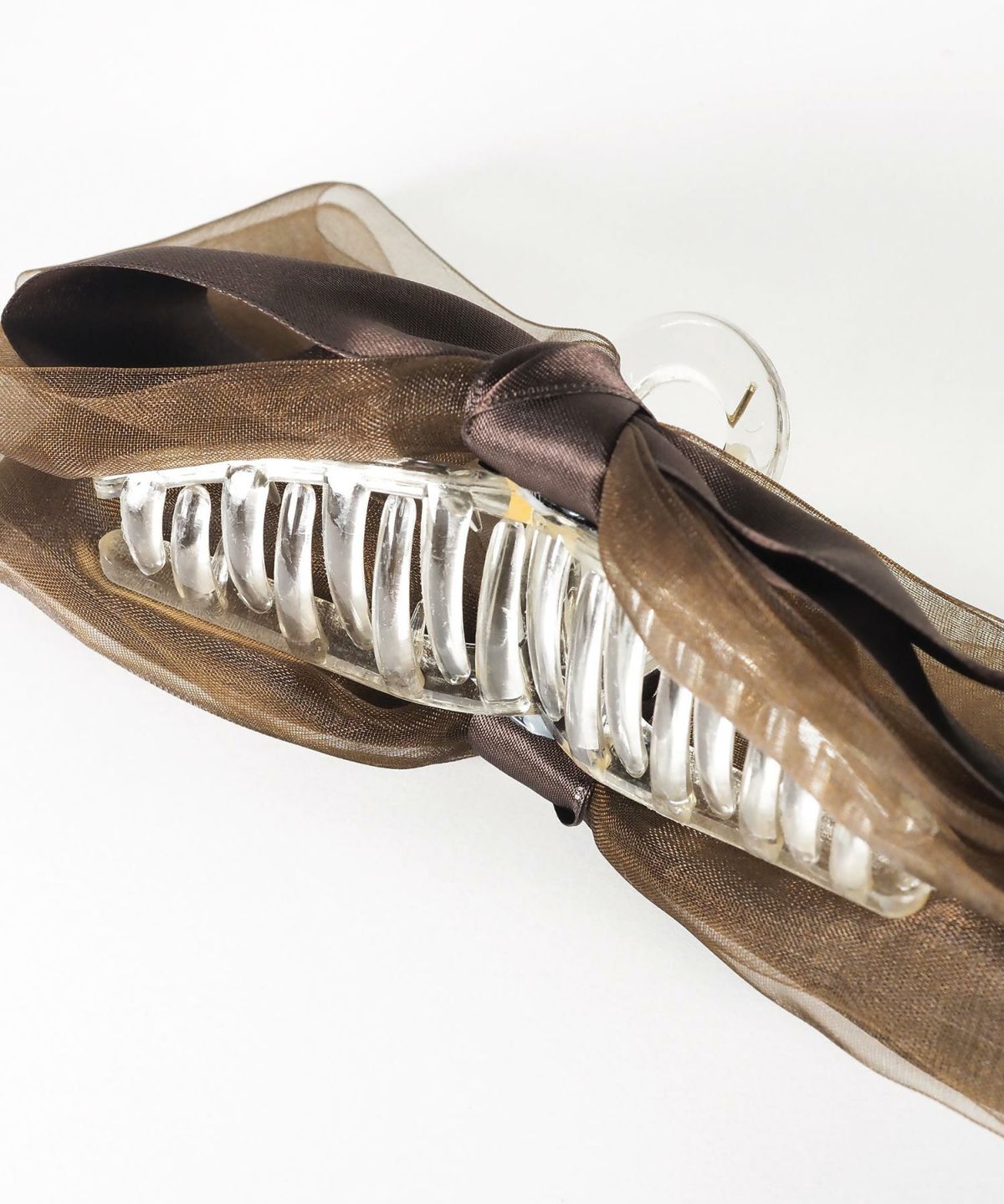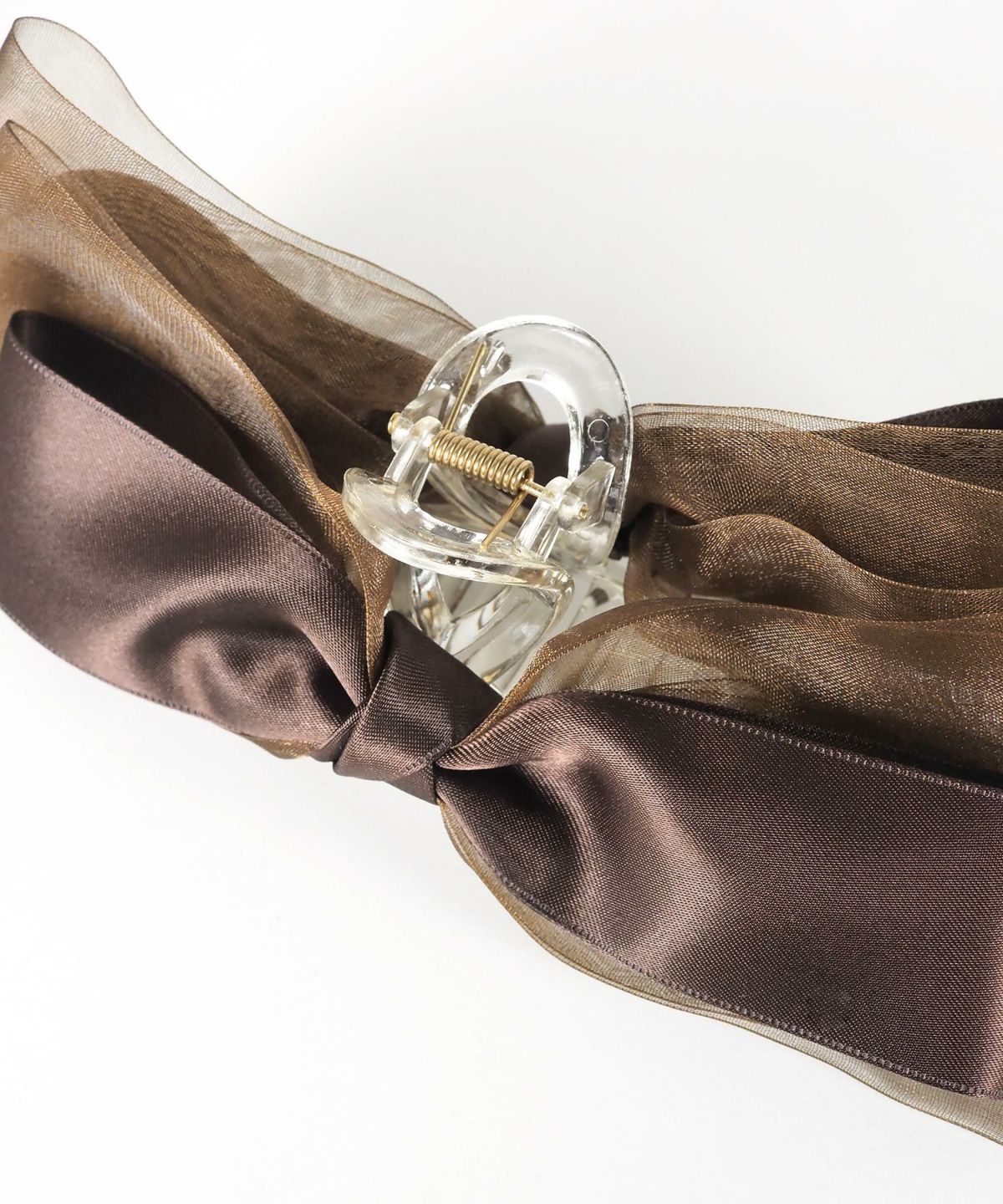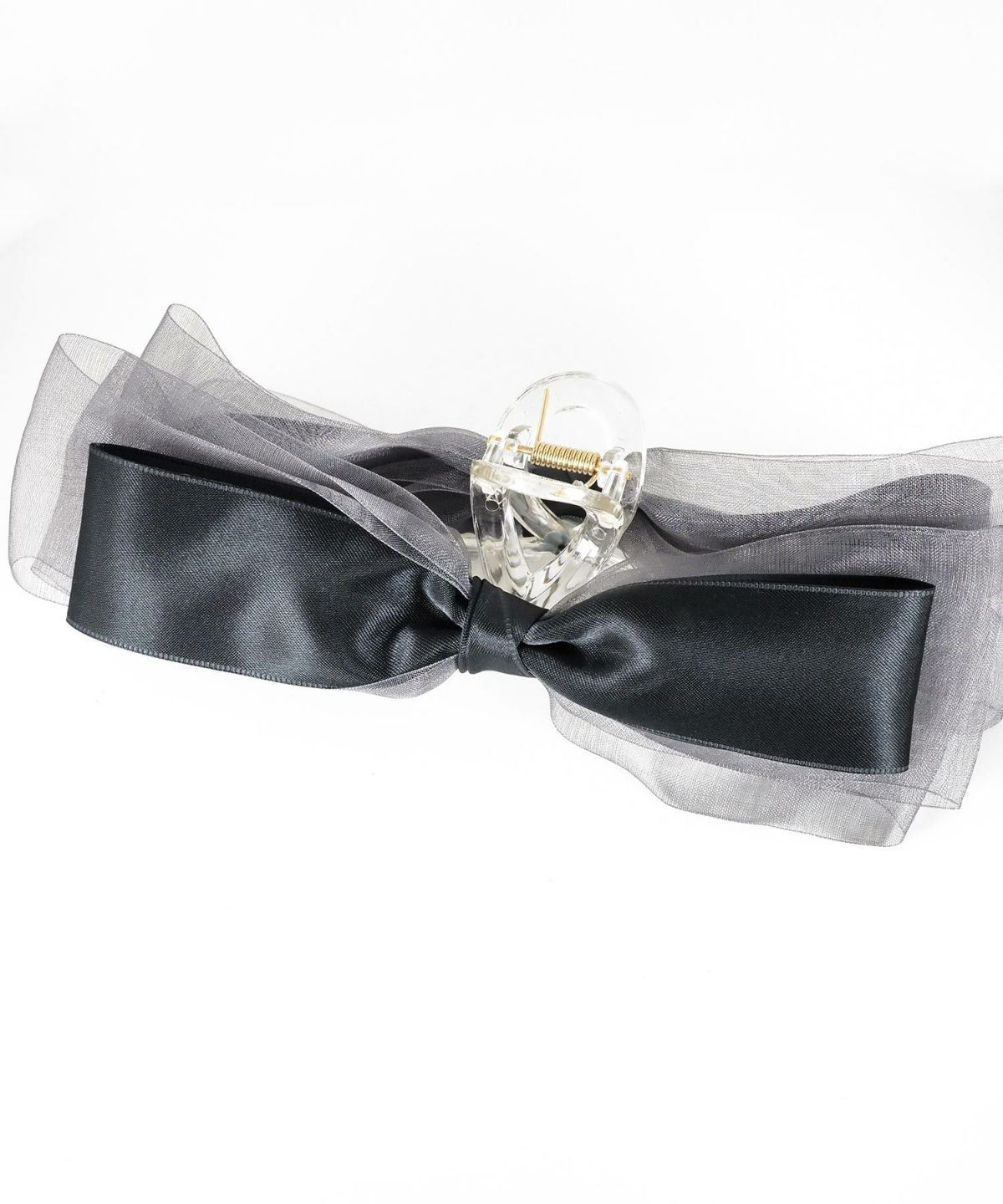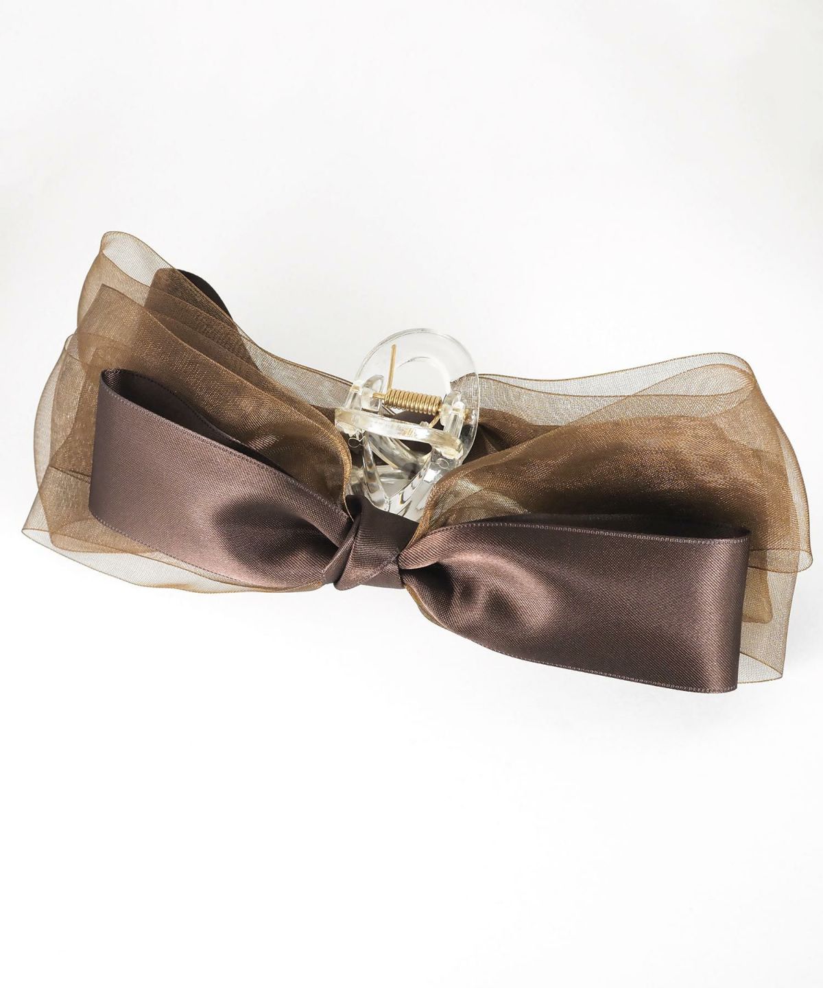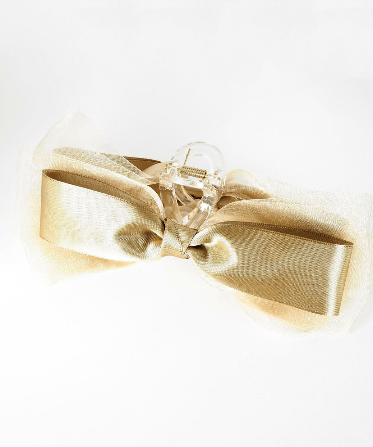 艶サテンと煌めきチュールの上品なバンスクリップ。ボリューム感のあるリボンデザインが、一瞬で華やかなまとめ髪を叶えます。光沢サテンと、ふんわりとしたチュールのコントラストが大人っぽい表情を演出。普段使いはもちろん、パーティーなどの特別なシーンにも活躍する、主役級のアイテムです。