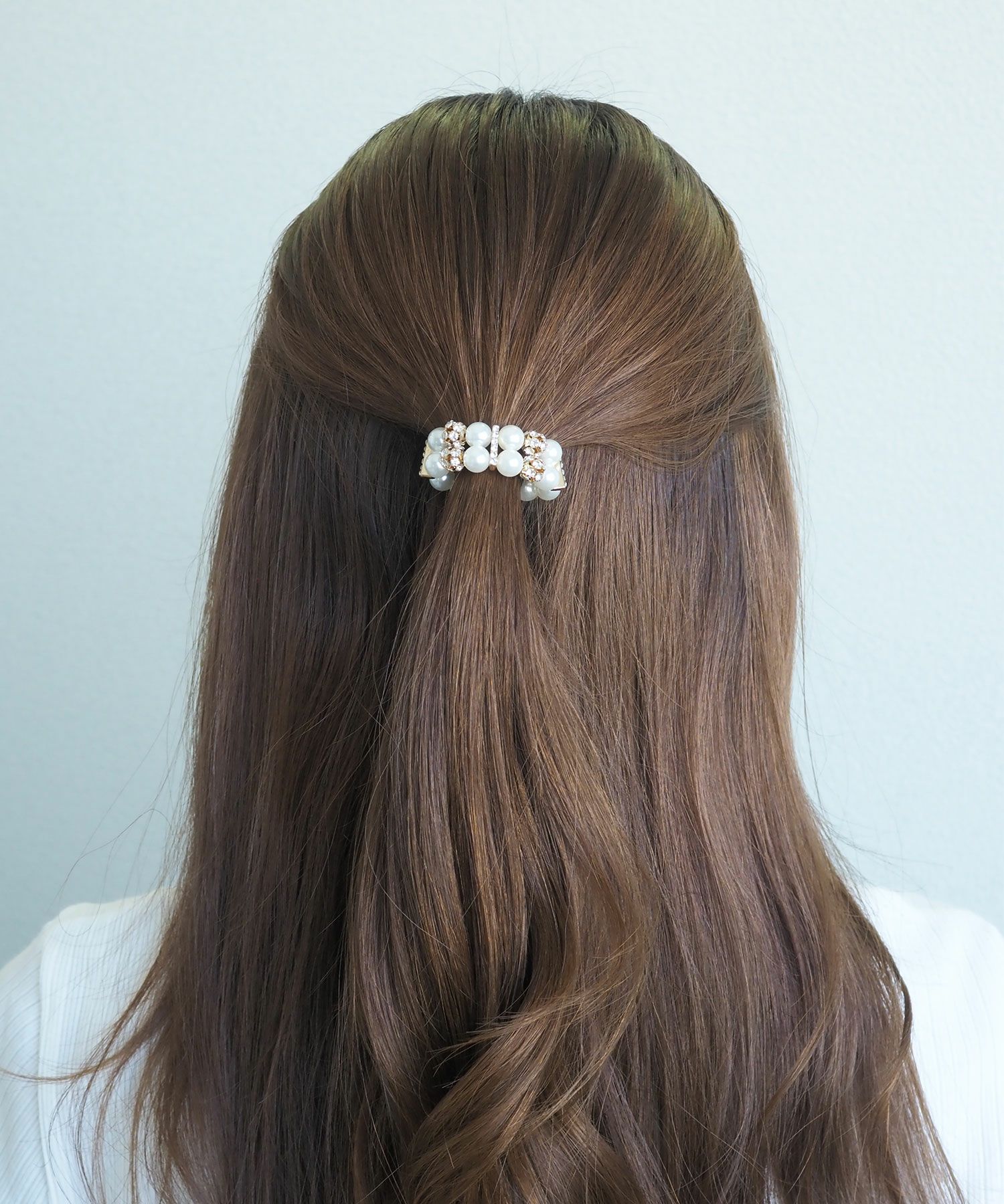 結び目にさしたらぐるっと巻きつけてパチ!と留めるだけ♪簡単アレンジアクセサリー“ヘアリエル”!毛量の多い方はベーシックサイズ、毛量の少ない方はミニサイズがおすすめです♪