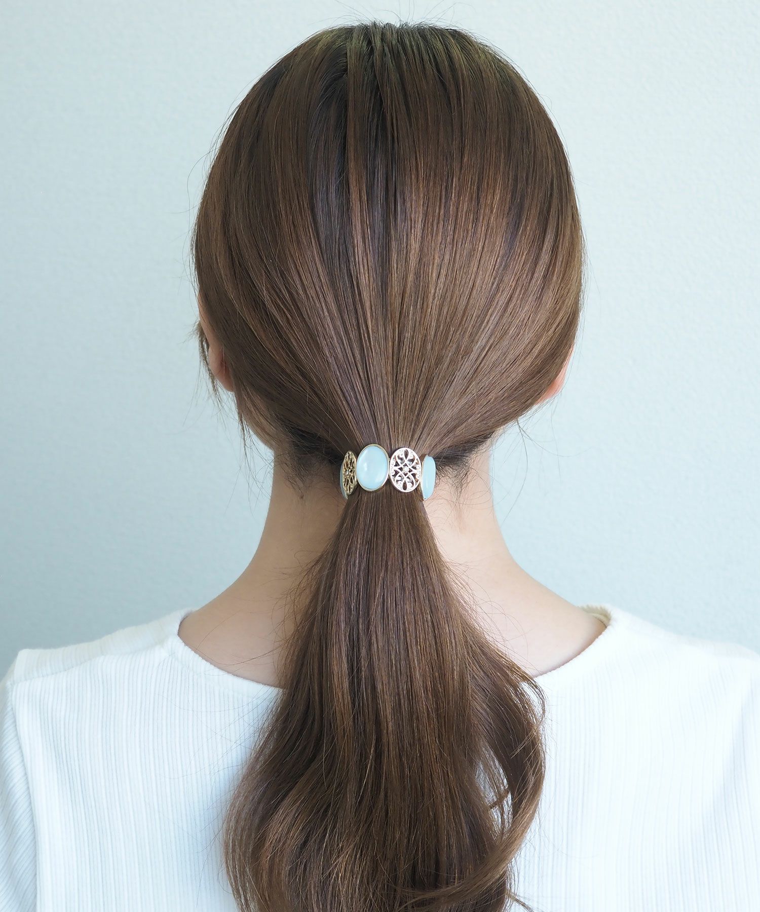 結び目にさしたらぐるっと巻きつけてパチ!と留めるだけ♪簡単アレンジアクセサリー“ヘアリエル”!毛量の多い方はベーシックサイズ、毛量の少ない方はミニサイズがおすすめです♪