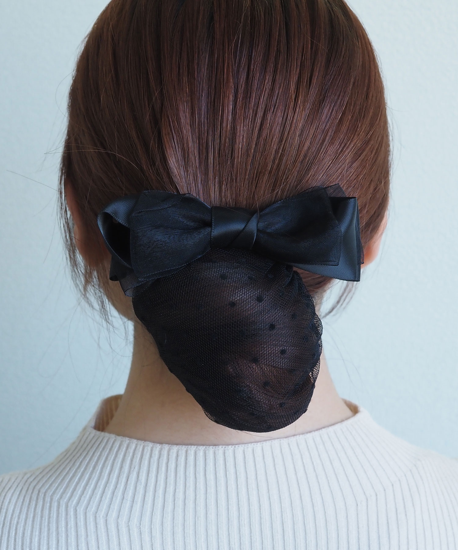 毛先を簡単にすっきりまとめるネット付のリボンバレッタ。ネット部分は控えめなドット柄になっており、シンプルな中に大人可愛いアクセントを添えています。パラパラと出てしまう短い毛もちゃんとまとまり、オフィスなどのビジネスシーンやフォーマルシーンの身だしなみに最適です。リボンのデザインにもこだわって、おしゃれも忘れず好印象を作ります。