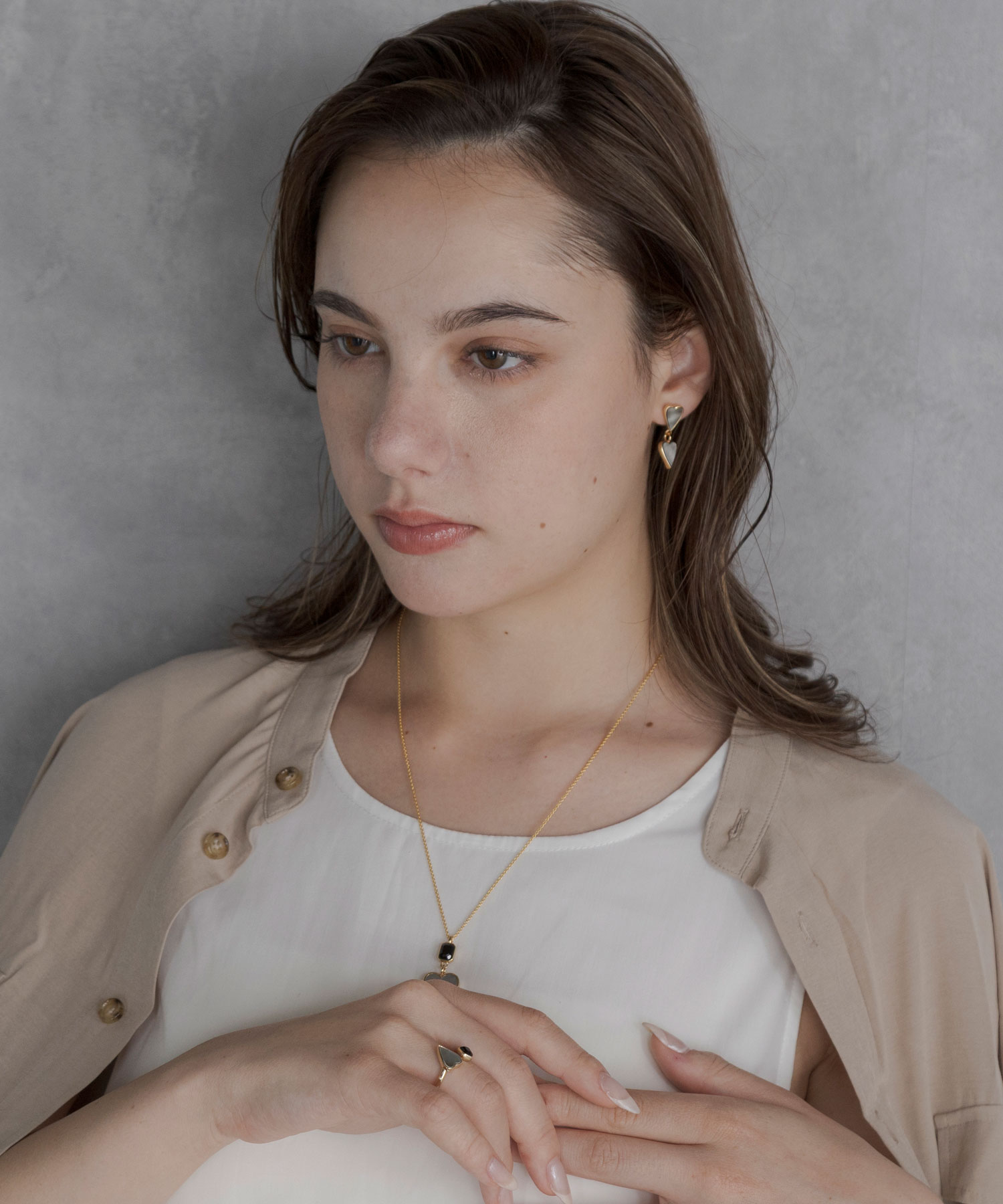 すべてオリジナルで型を起こし、他にはない独自のフォルムに仕上げたアクセサリー。職人の手でひとつひとつ丁寧にオリジナルカットを施した天然石やシェルは、唯一無二の輝きを放ちます。シンプルながらも印象的なデザインは、どんなシーンでも視線を集め、あなたの魅力を引き立てます。毎日のコーディネートに華やかさを添える、特別なアイテムです。
