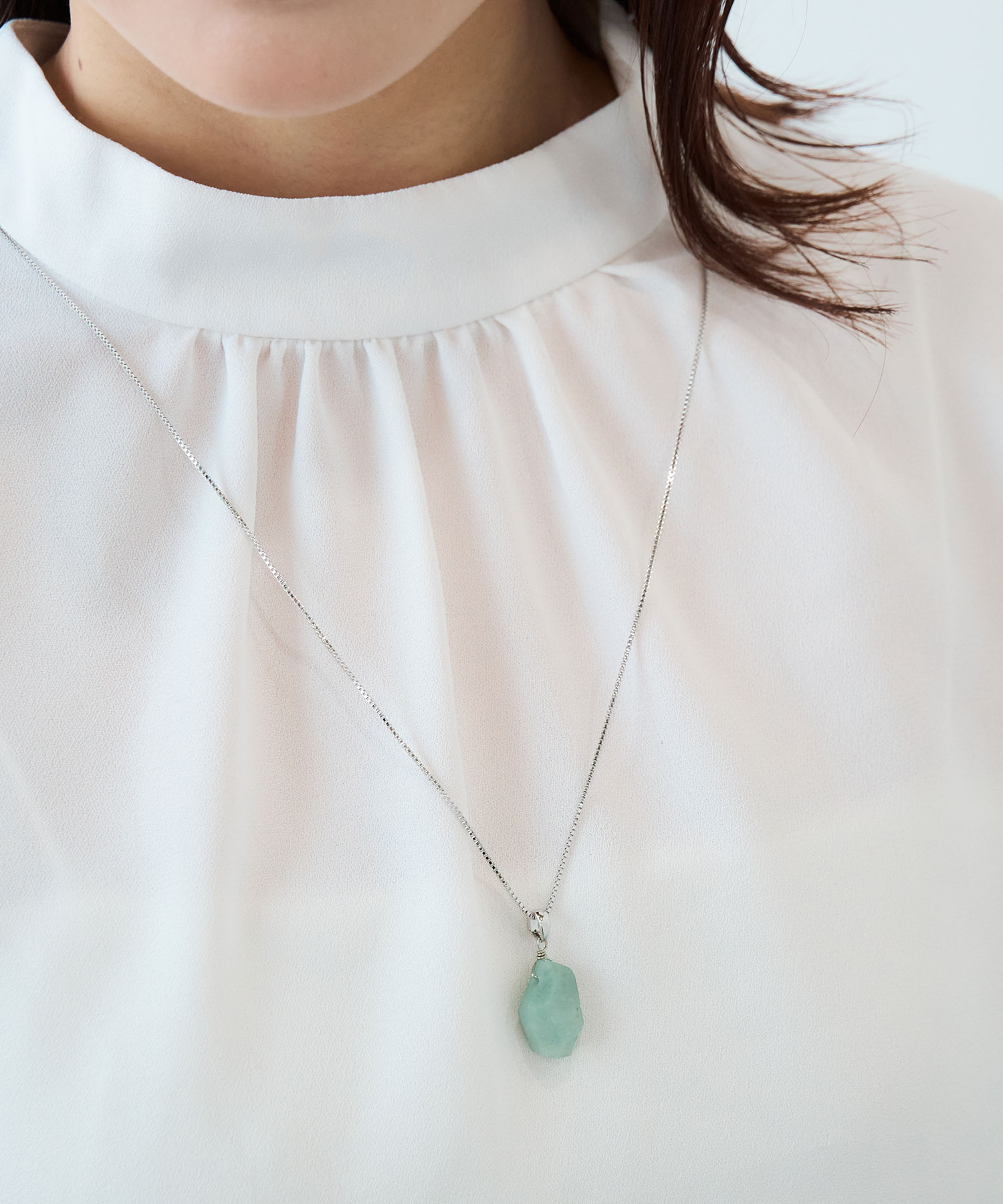 天然石の魅力を最大限に引き出す、一粒タイプのネックレスです。 華奢なチェーンが石の輝きを際立たせ、デコルテを美しく彩ります。主張しすぎないデザインで、Tシャツなどのカジュアルなスタイルから、オフィスでのきれいめスタイルまで幅広く活躍します。