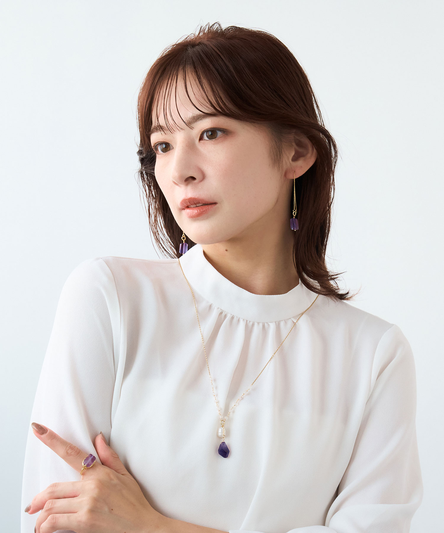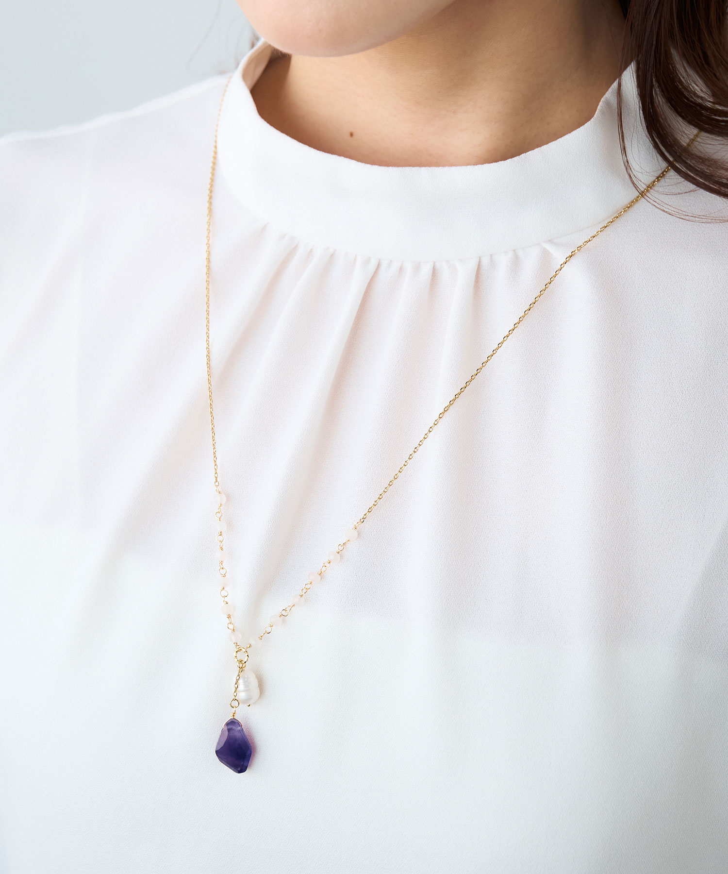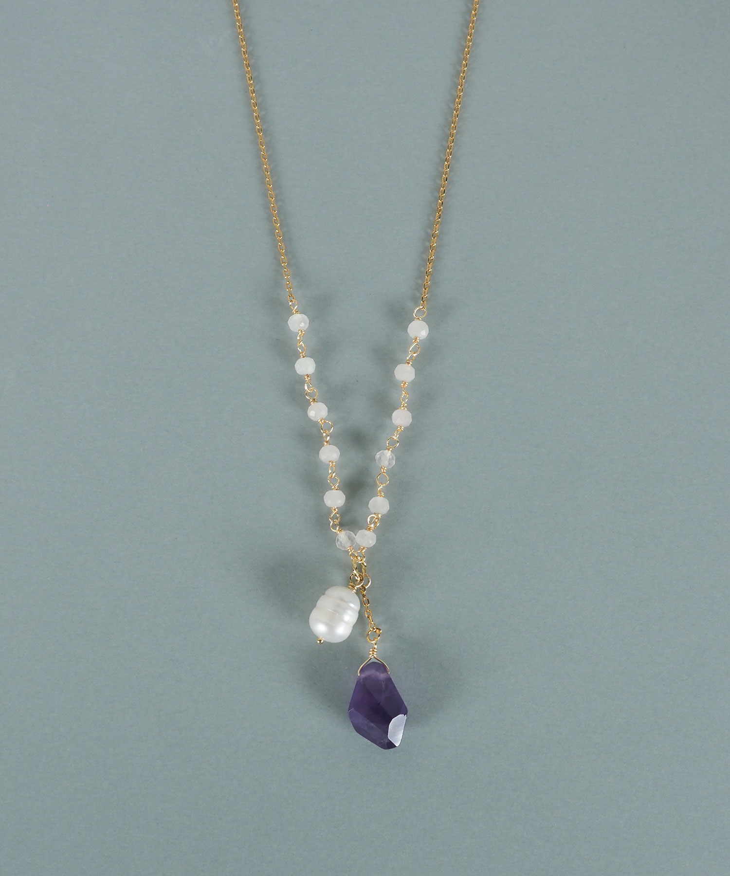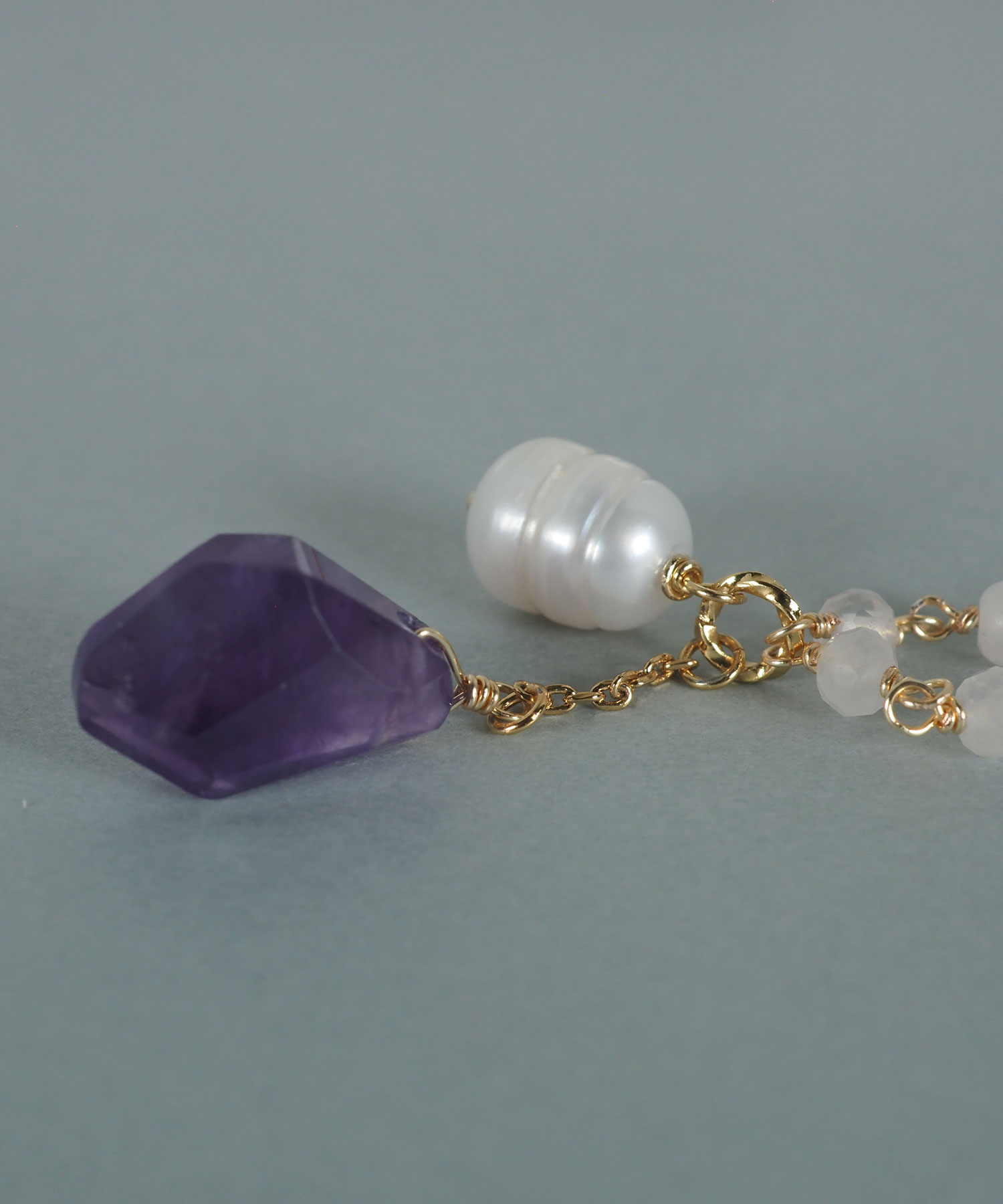 | MATERIAL | ゴールド:アメジスト、淡水パール、ローズクォーツ、合金(ニッケルフリー薄金メッキ) シルバー:グリーンアベンチュリン、水晶、合金(ニッケルフリー代用ロジウム) |