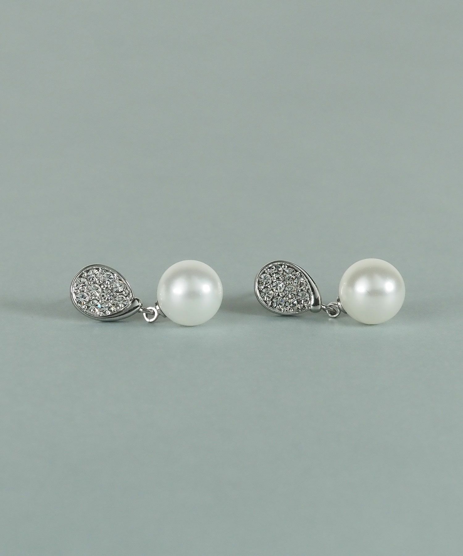 貝パールとしずく型に敷き詰められたクリスタルガラスが輝きを放つエレガントなピアス。大粒のパールが耳元で揺れ、顔回りを華やかに彩ります。