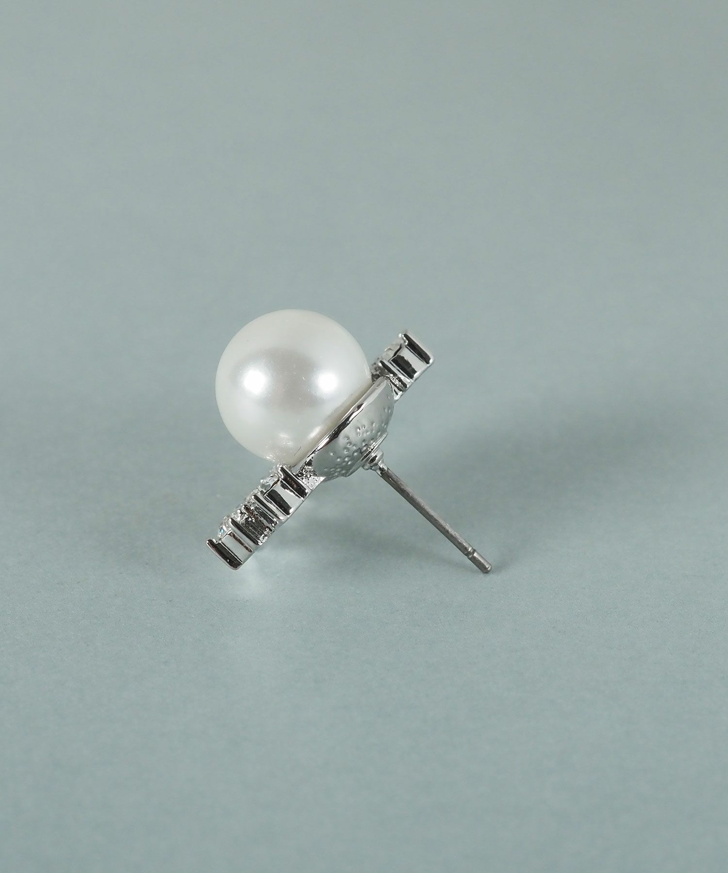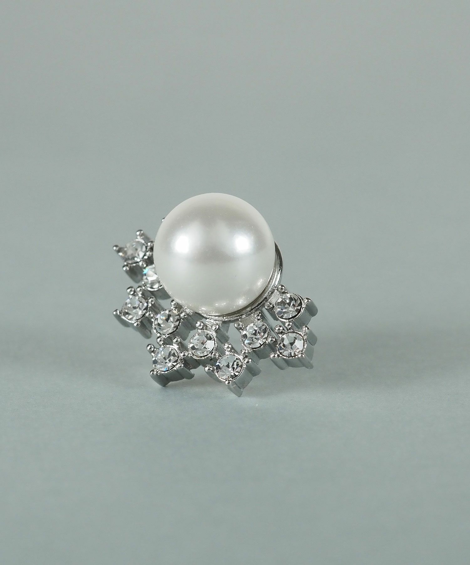 美しい貝パールをビジューで囲んだエレガントなデザインのピアス。立体感のある華やかなモチーフが光を受けて煌めき、耳元を明るく彩ります。