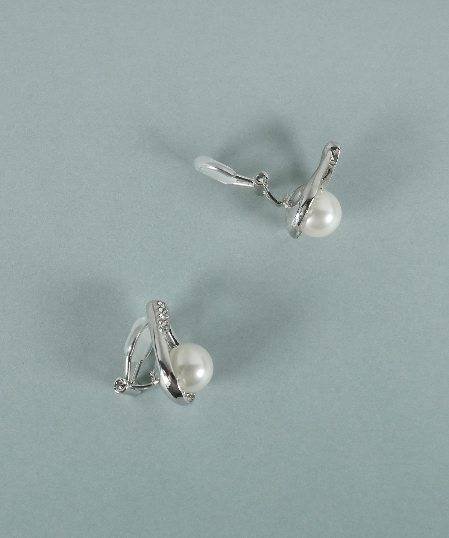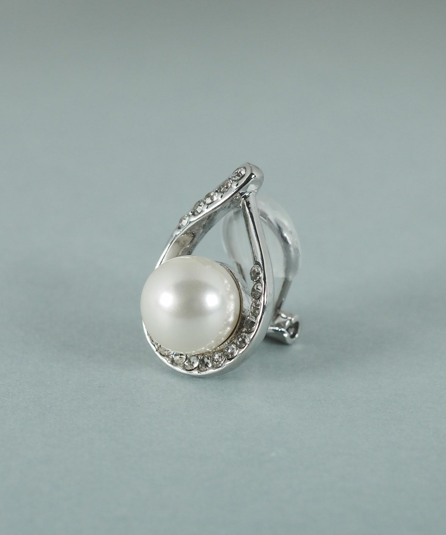 ドロップ型のラインに貝パールとクリスタルガラスを配置した、エレガントなイヤリング。貝パールの艶めきに、丁寧に配置されたクリスタルガラスが光を添え、繊細な煌めきを放ちます。
