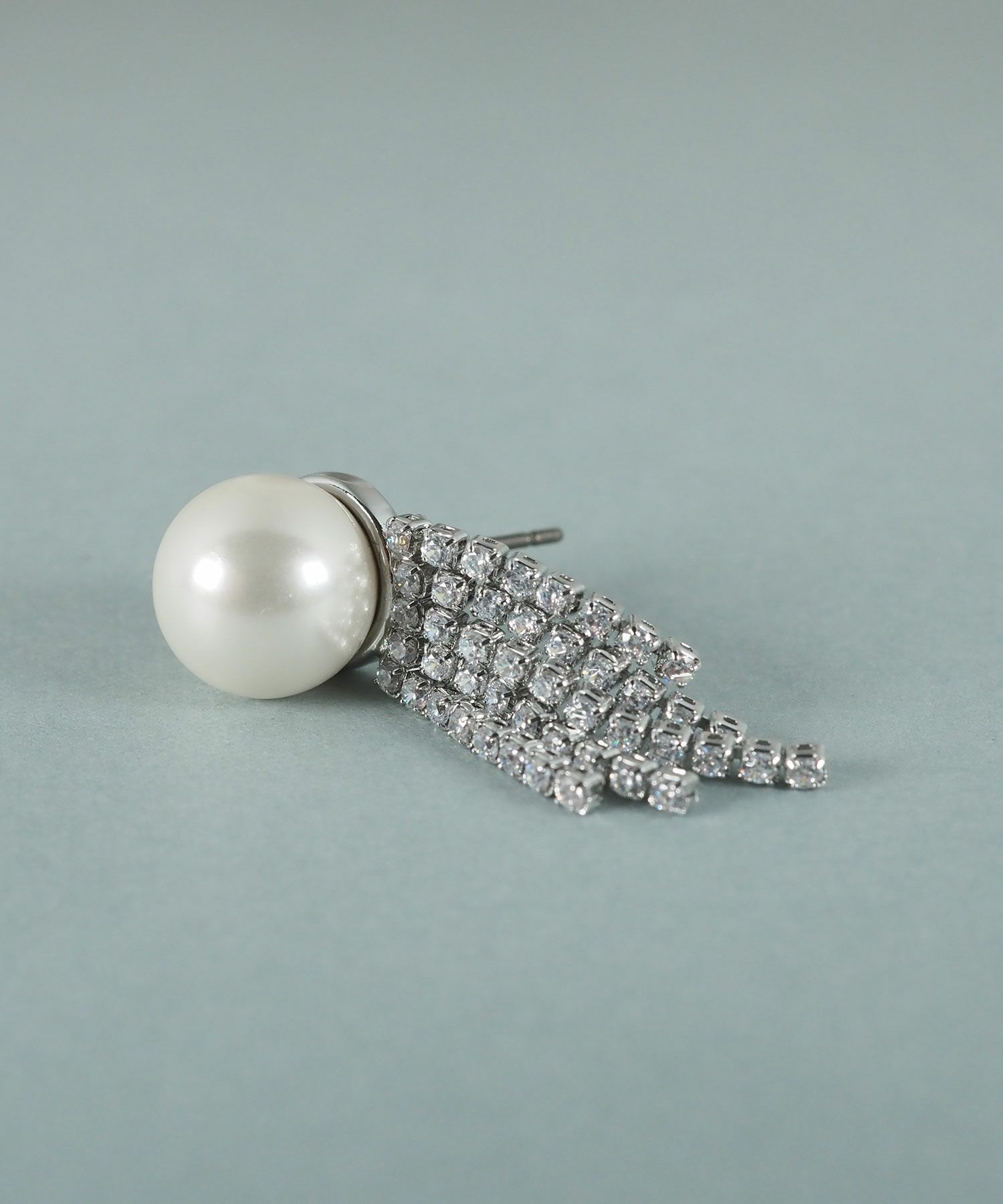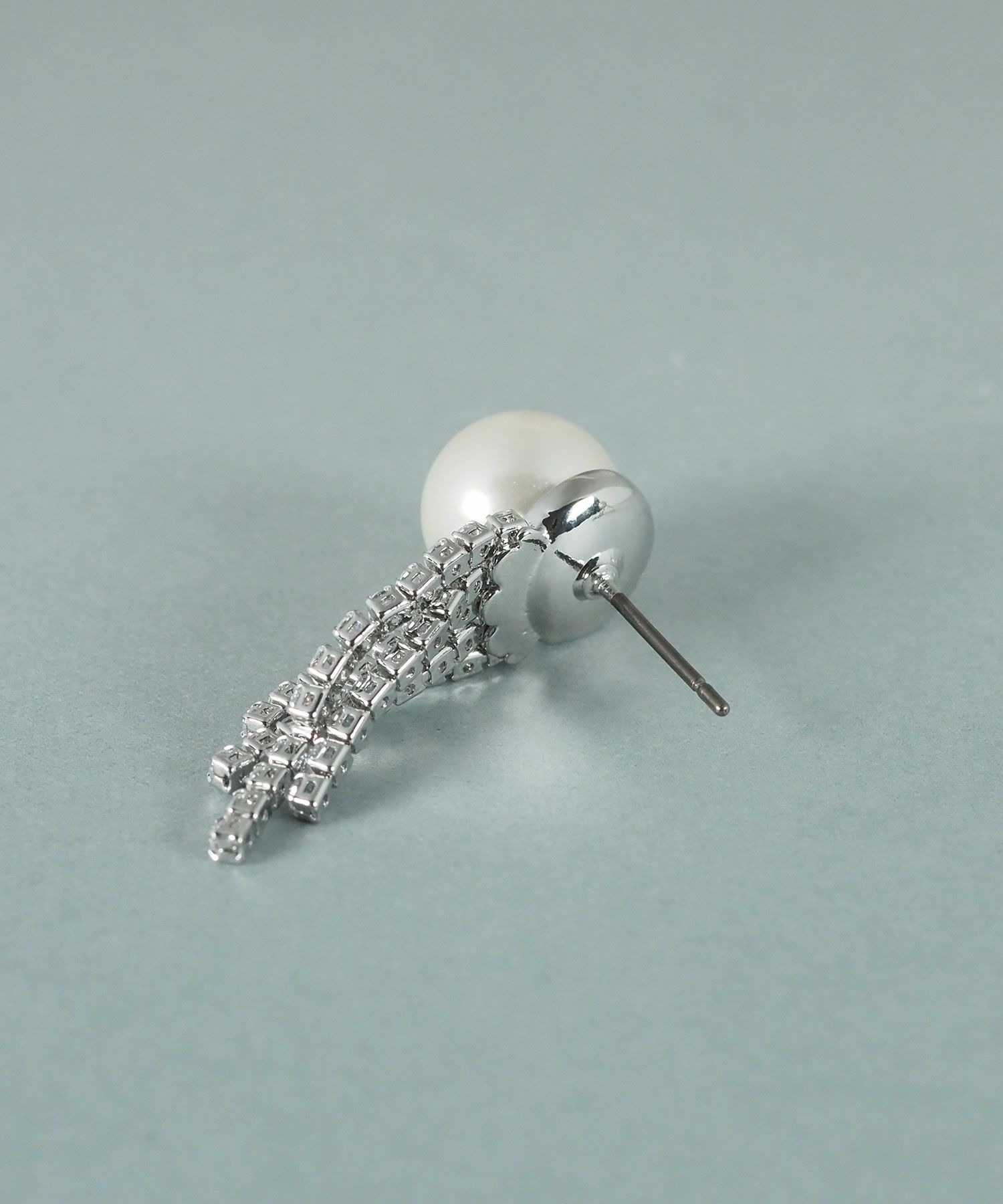 貝パールから広がるキュービックジルコニアが華やかな、存在感のあるピアス。ゆらゆらと揺れるキュービックジルコニアが光を集め、パールの美しさを引き立てます。