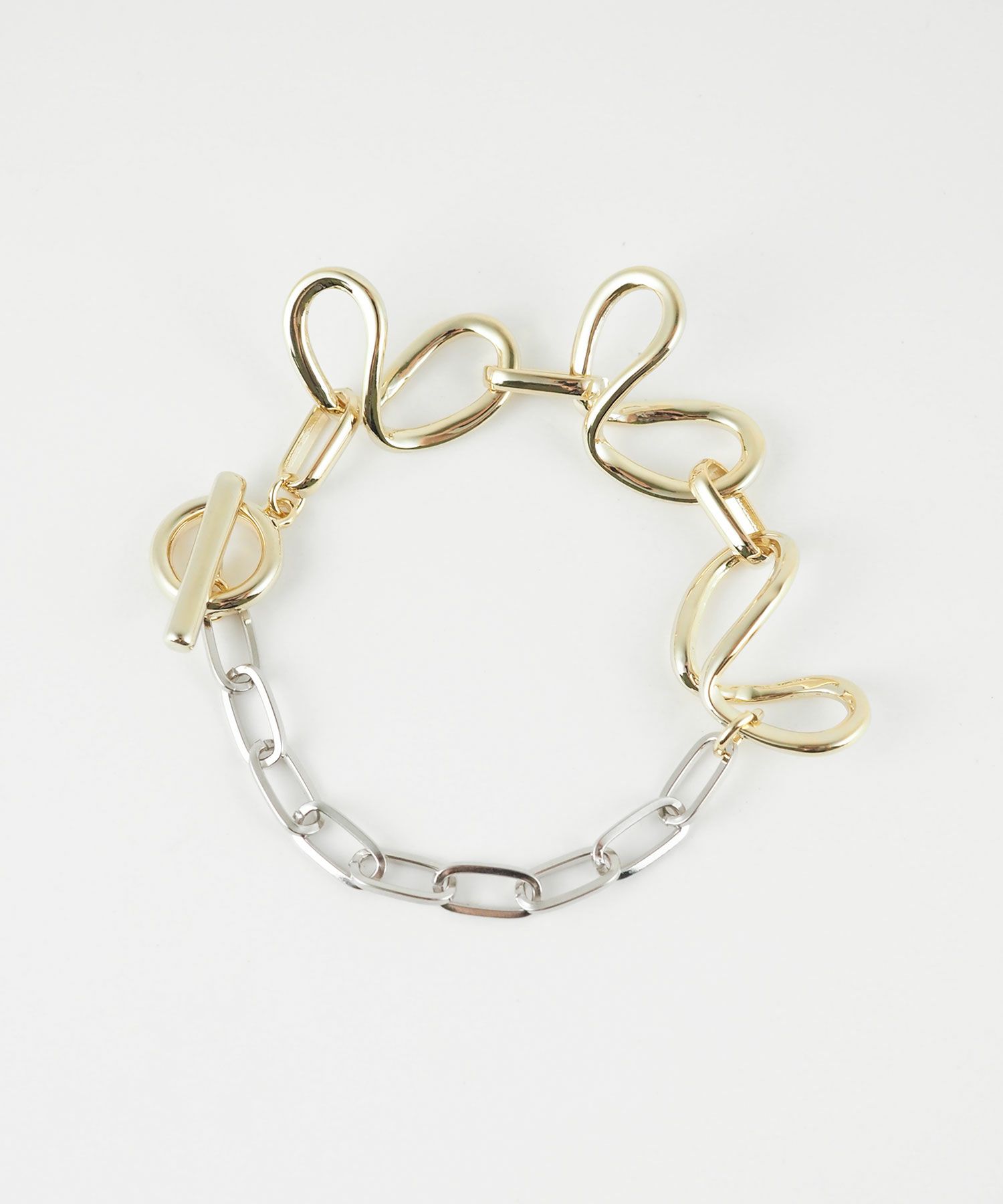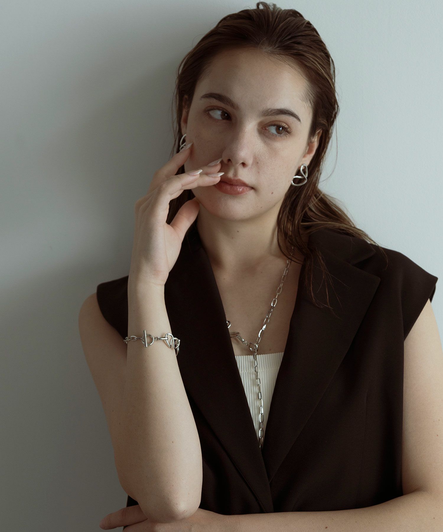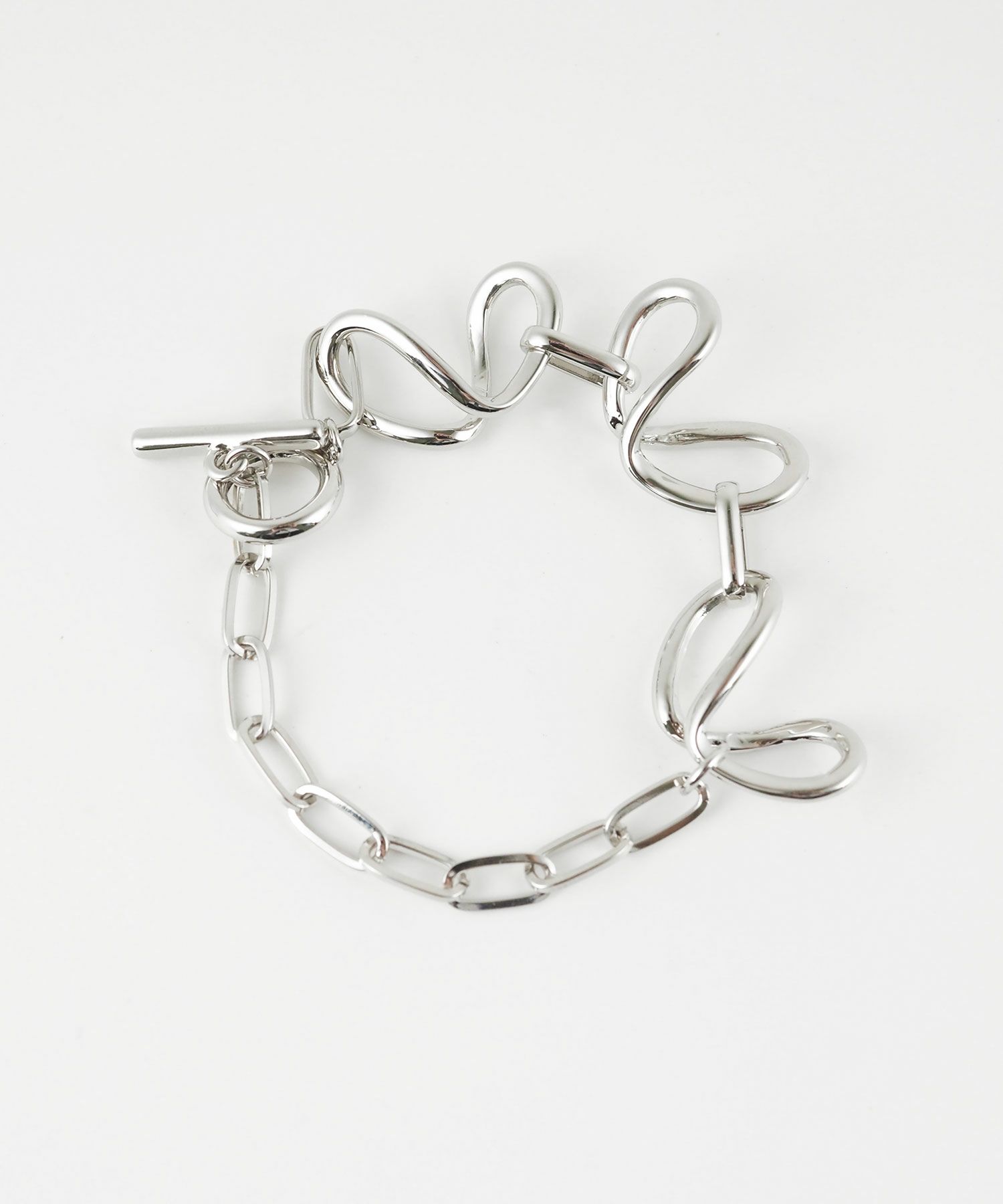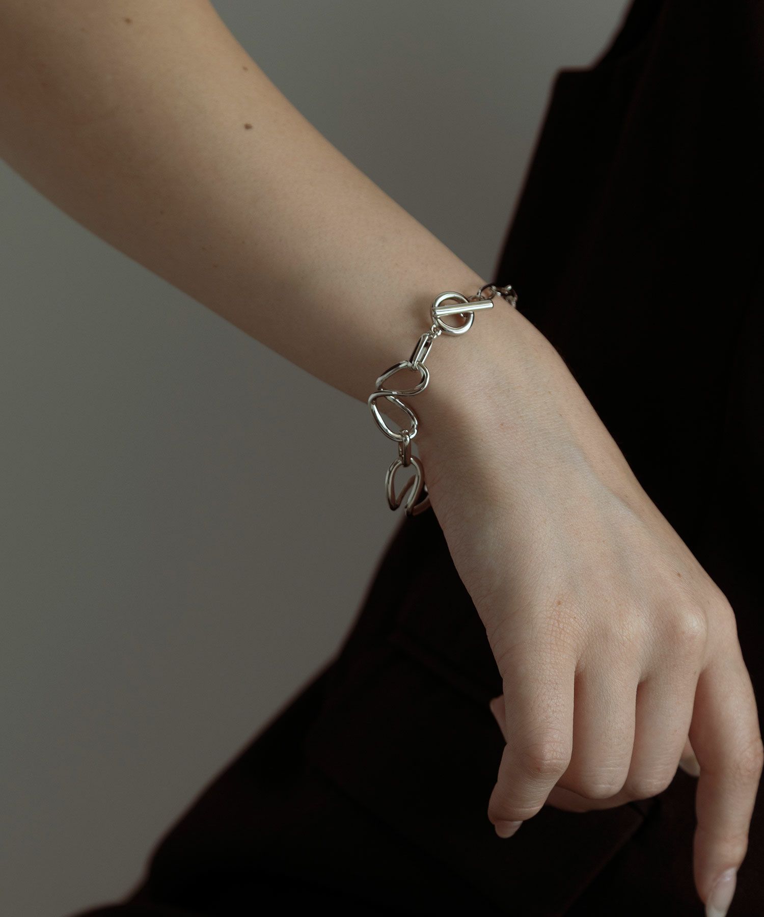 ルシャンツィオのクールな印象がお好きな方におすすめのハートモチーフのブレスレット。甘い印象にならないような変形ハートにしているので、ハートが苦手な方も着けやすいブレスレットとなっています。