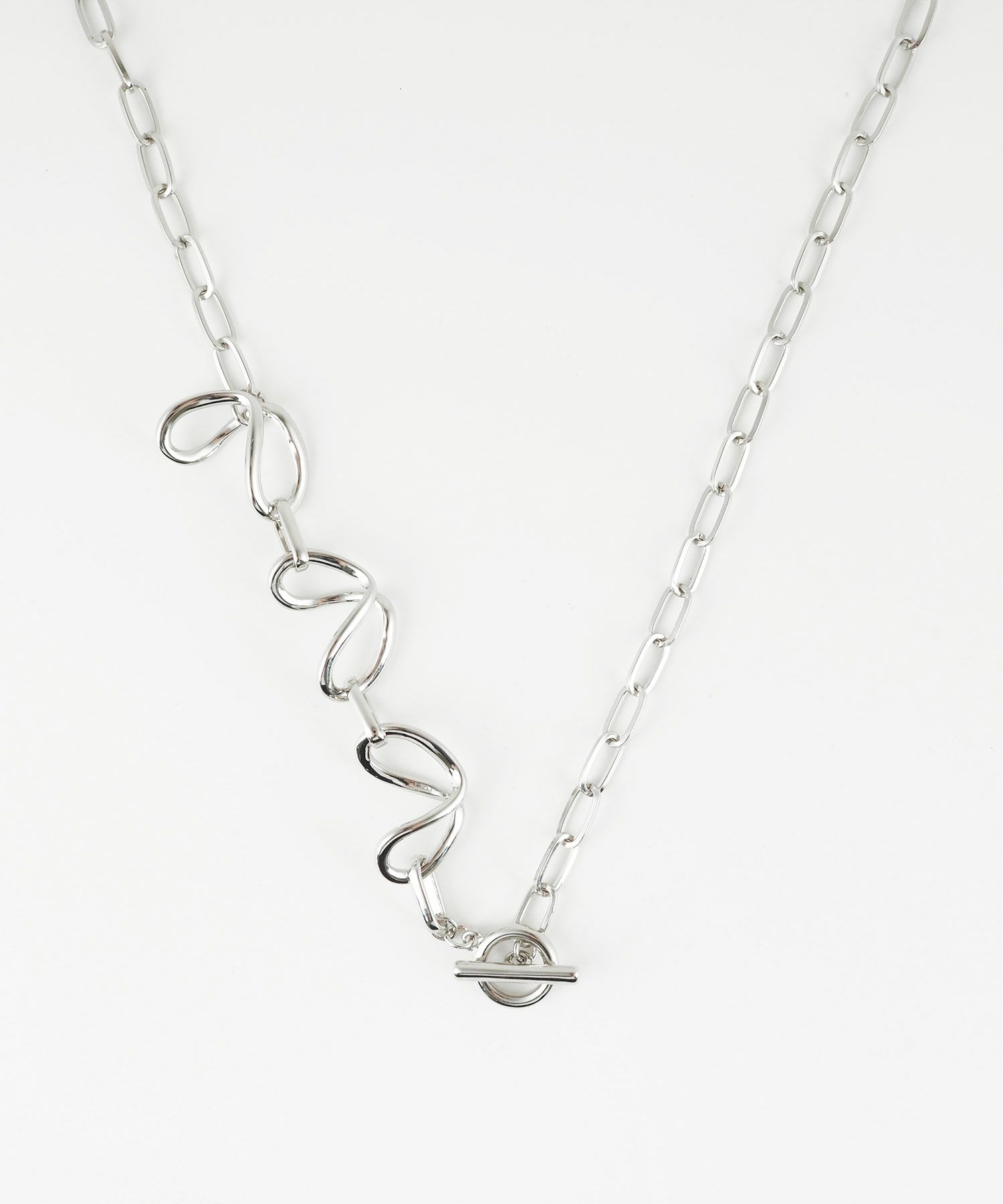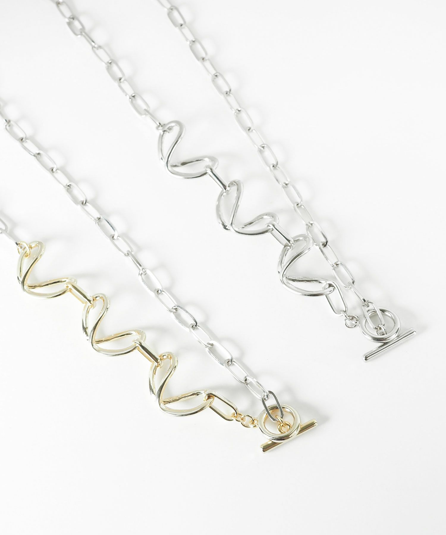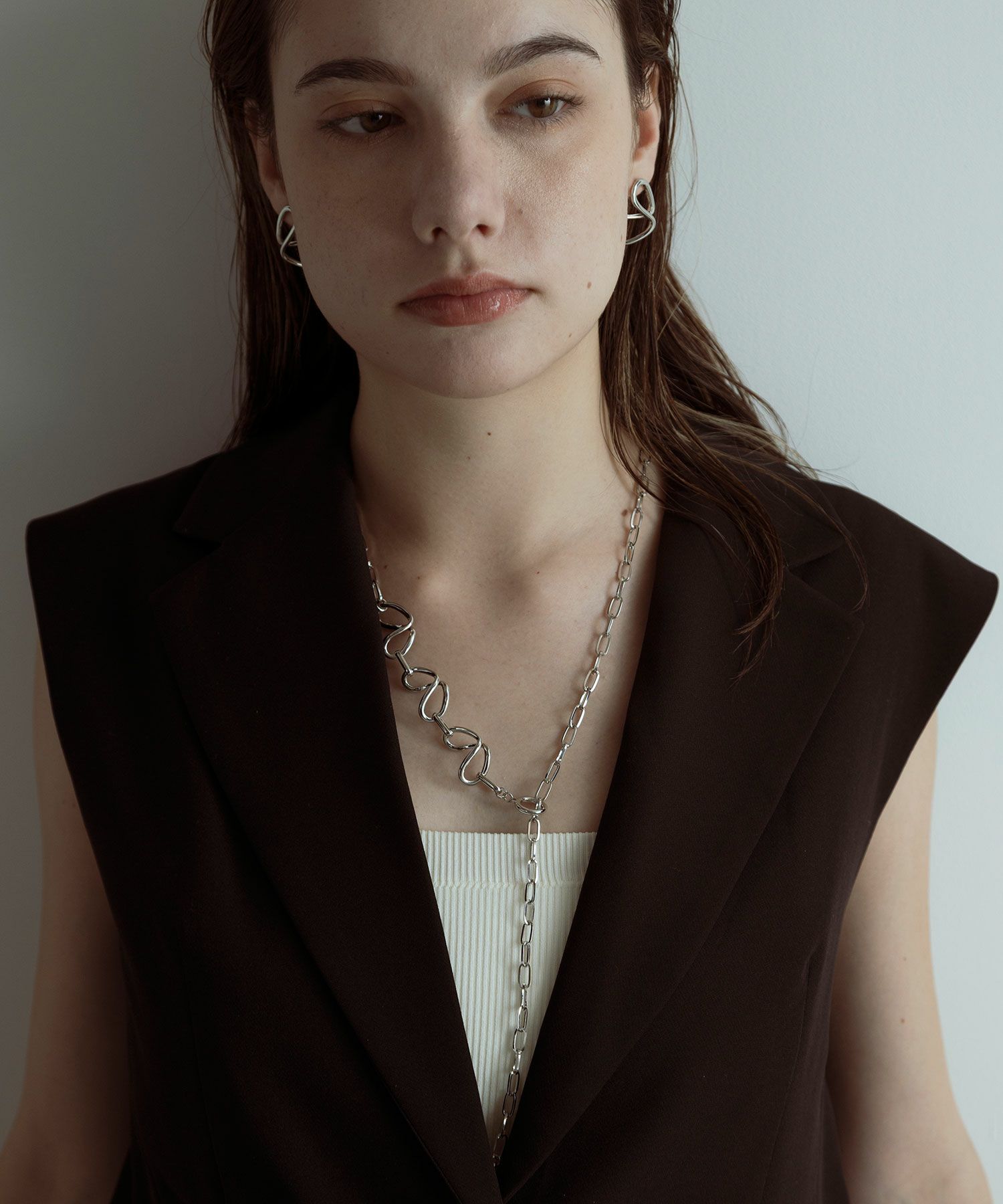 ルシャンツィオのクールな印象がお好きな方におすすめのハートモチーフのネックレス。甘い印象にならないような変形ハートにしているので、ハートが苦手な方も着けやすいネックレスとなっています。