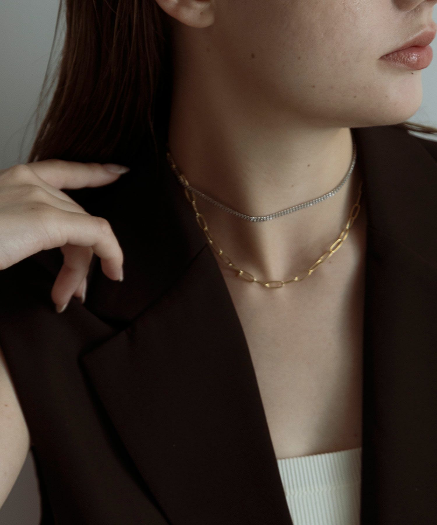 ルシャンツィオで人気のチェーンアイテム。カジュアルからフォーマルまで、様々なスタイルにすっと馴染む万能ネックレスになっています。1連でも2連でもお使いいただけます。