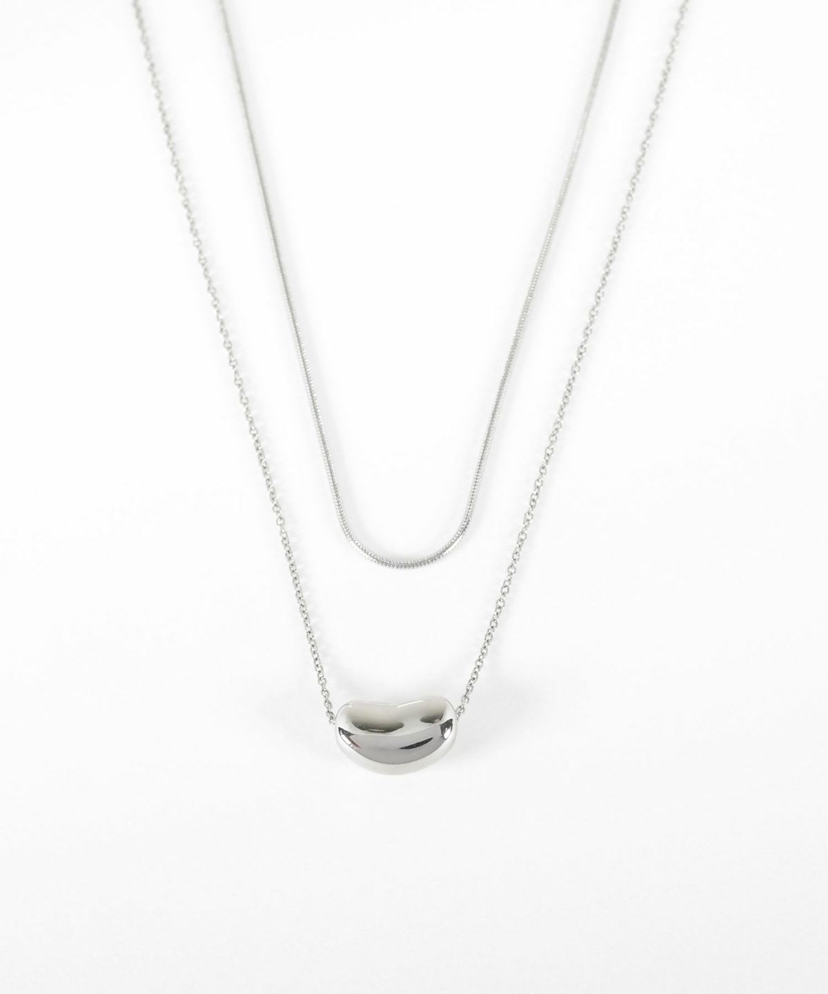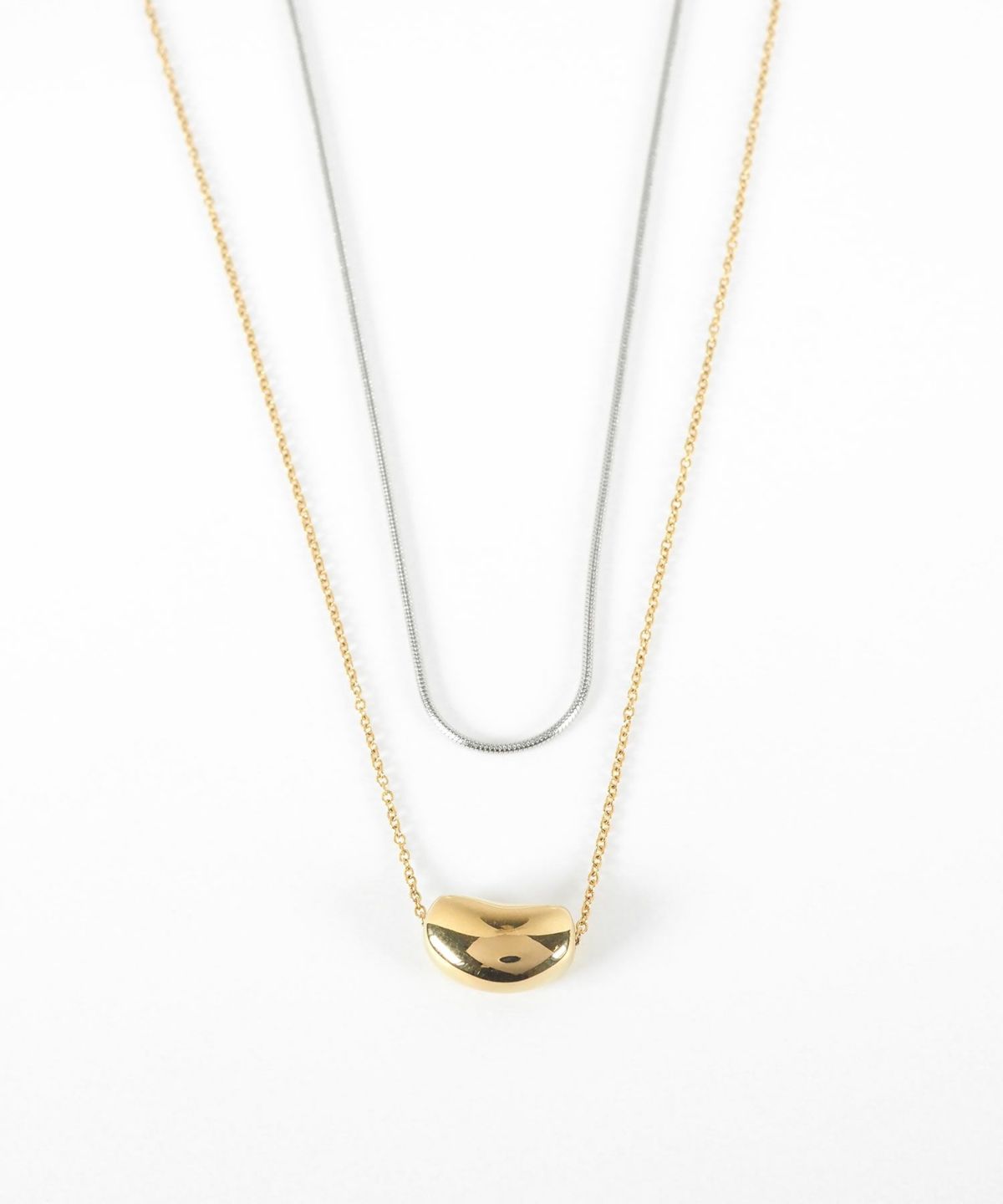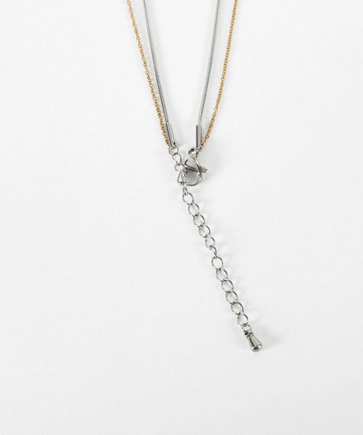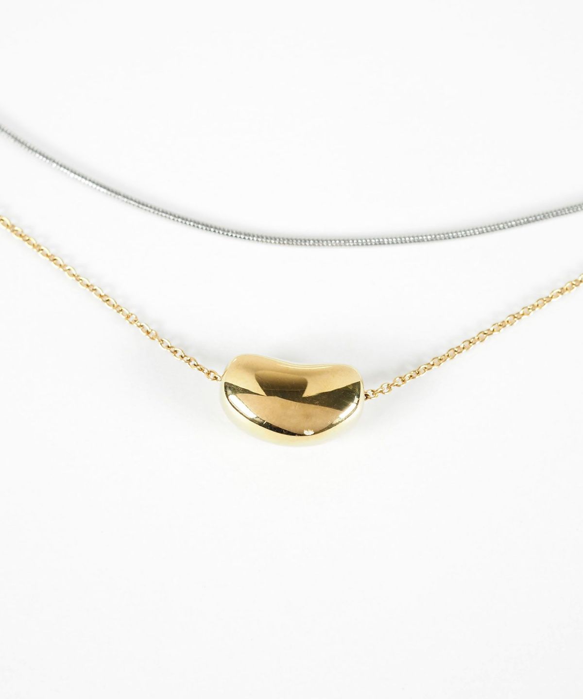 定番人気の異なるチェーンとモチーフを重ねた、トレンド感のあるレイヤードネックレスです。華奢なチェーンと、ぷっくりとしたドロップモチーフが、首元に洗練された立体感をプラスします。