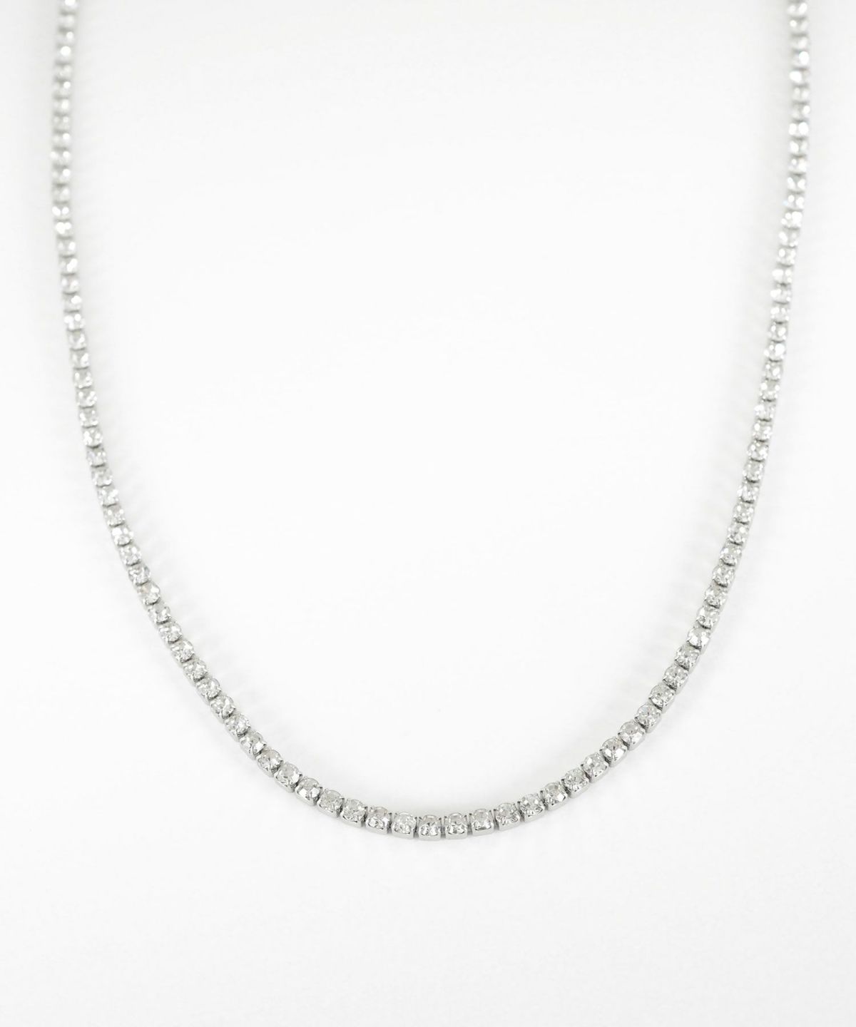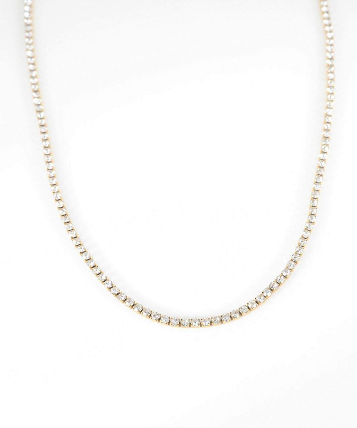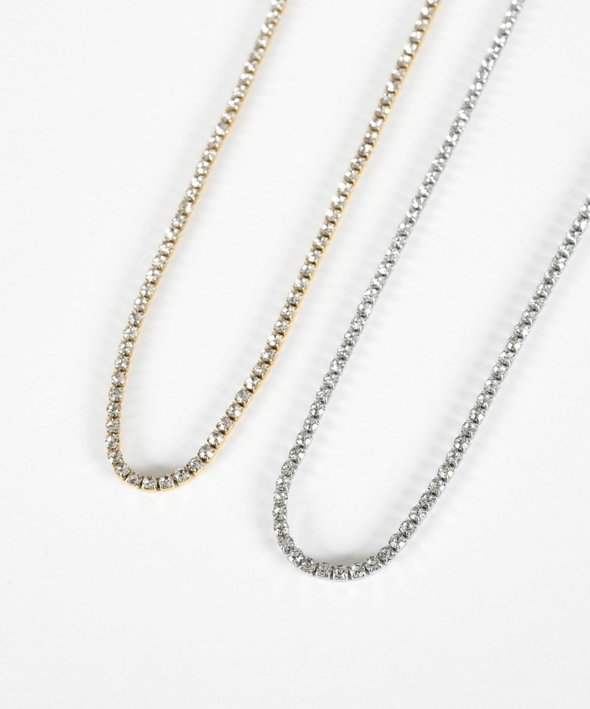 トレンドのテニスシリーズをデザインしたチェーンネックレス。華奢なストーンが連なり、控えめながらも上品な輝きを放ちます。デイリーからオケージョンまで幅広く活躍するアイテムです。