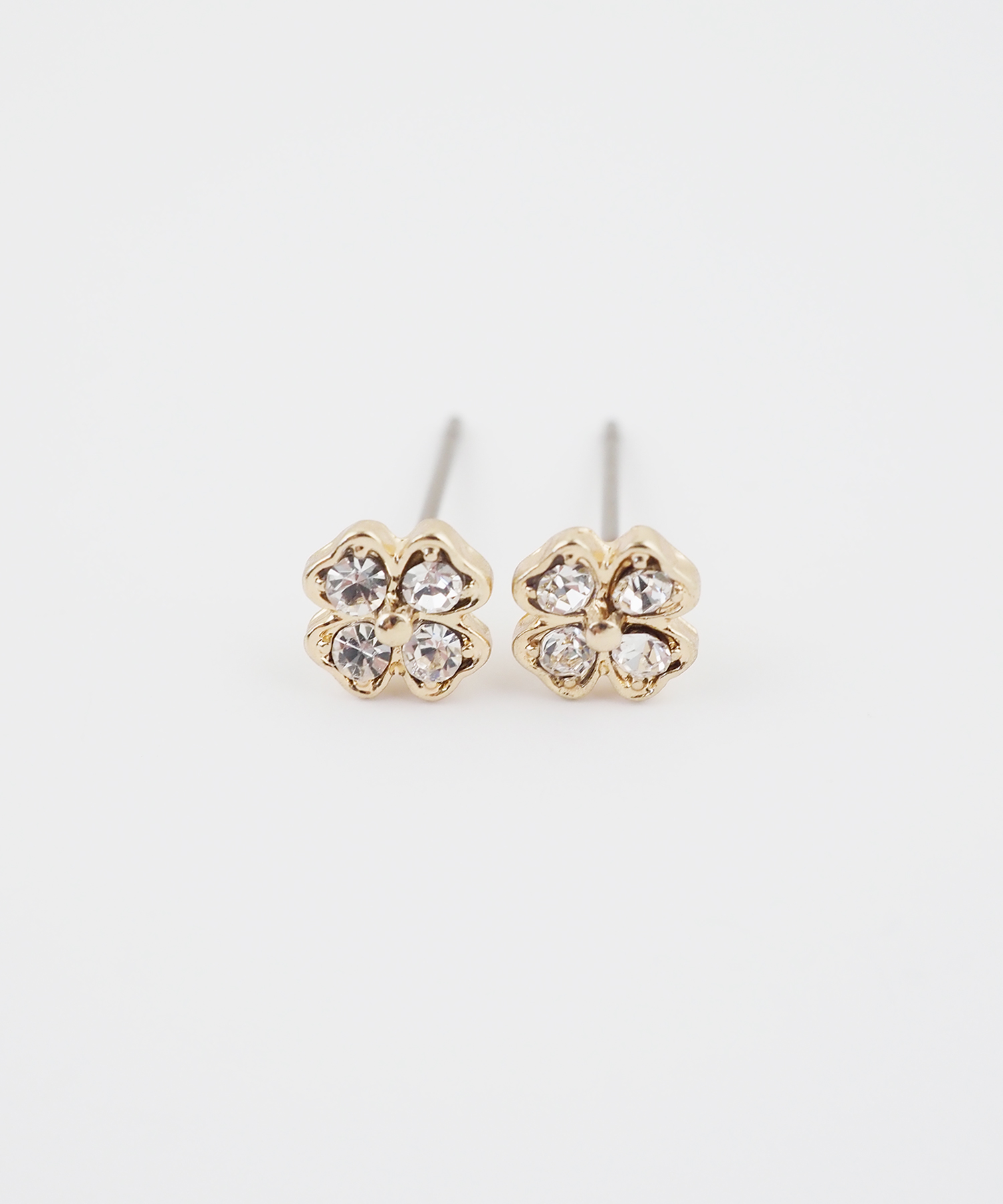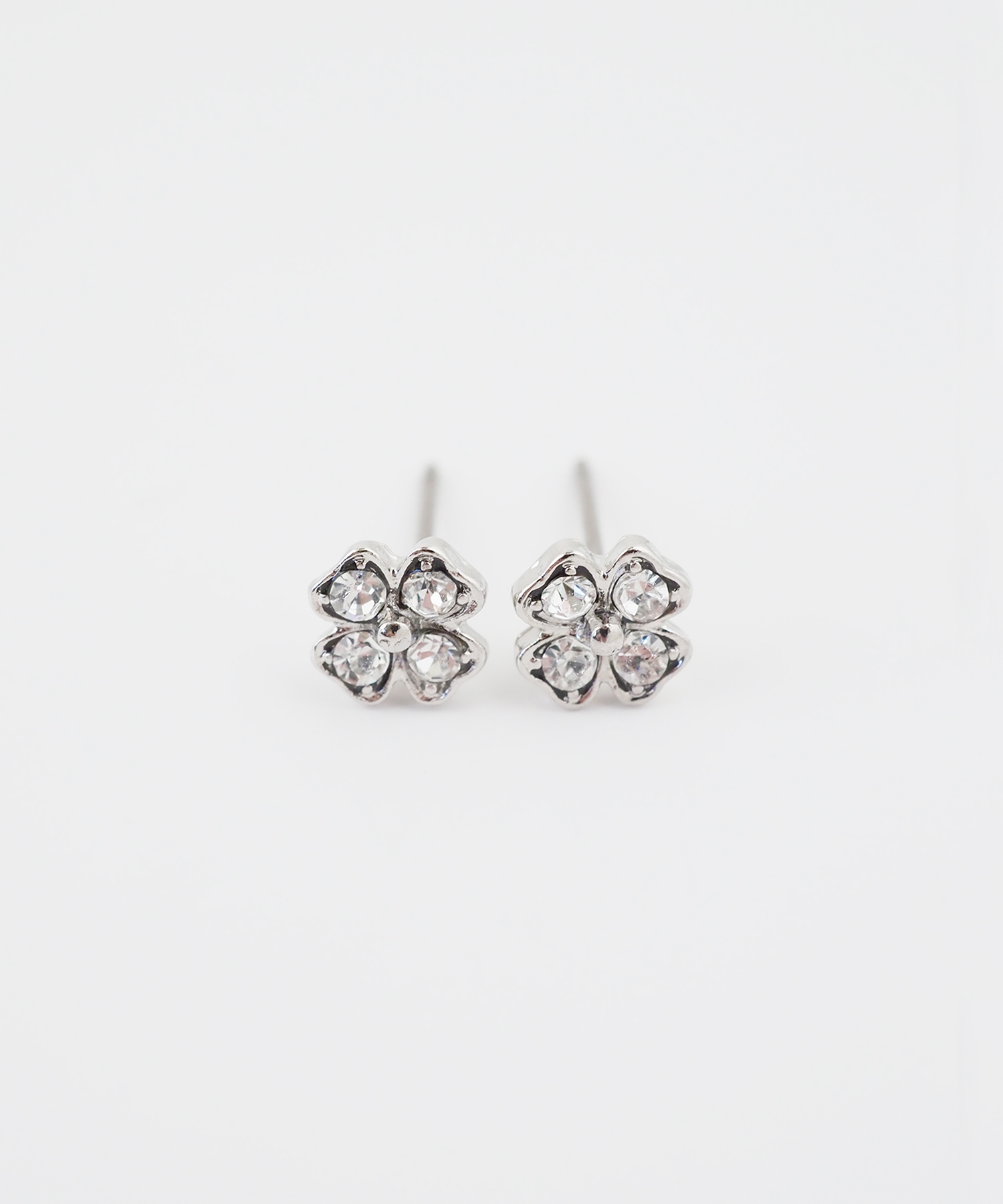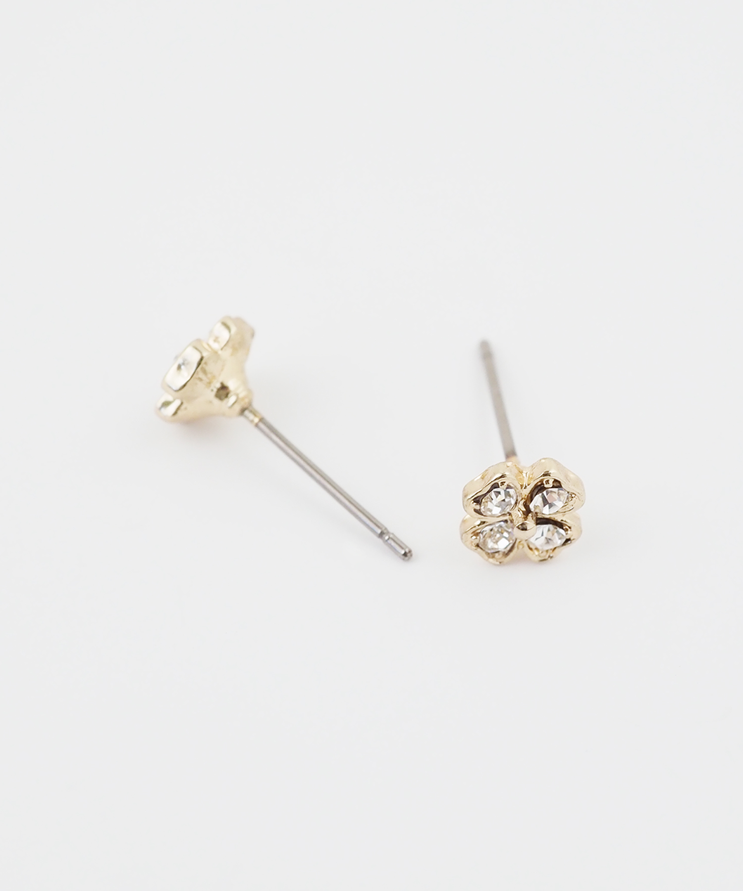 四ツ葉のクローバーをモチーフにしたビジューピアス。ロマンティックなモチーフをさりげないサイズ感で取り入れて、フェミニンな雰囲気をプラスしてくれるアイテムです。通常のポストよりも長いポスト(12mm)を使用しているため、耳たぶの厚い方におすすめ。長さに余裕があるためピアスホールに負担をかけず、トラブルを防ぎます。素材は純チタンのため金属アレルギーの方も安心できるのがポイント。ペアピアス(両耳用)です。