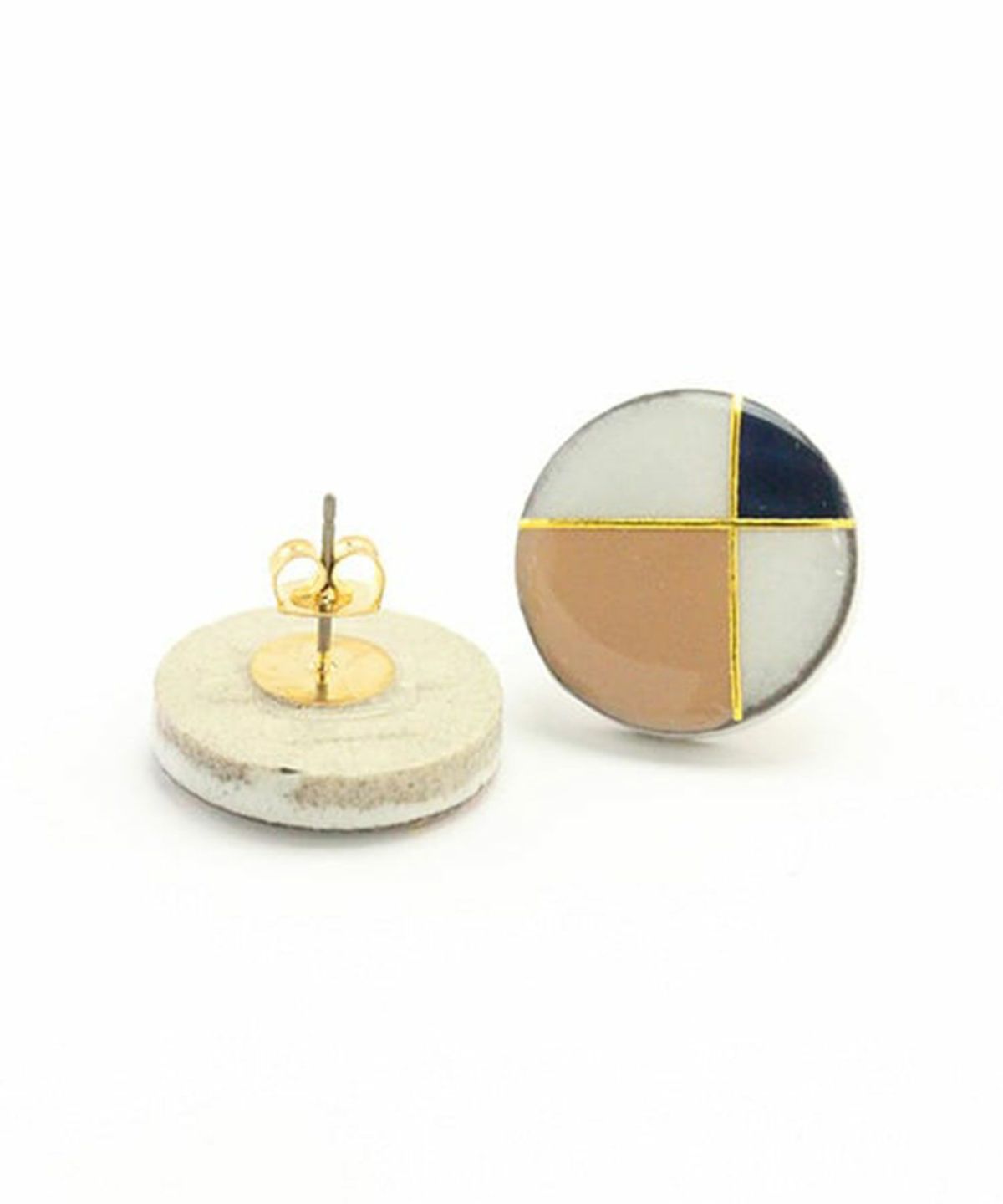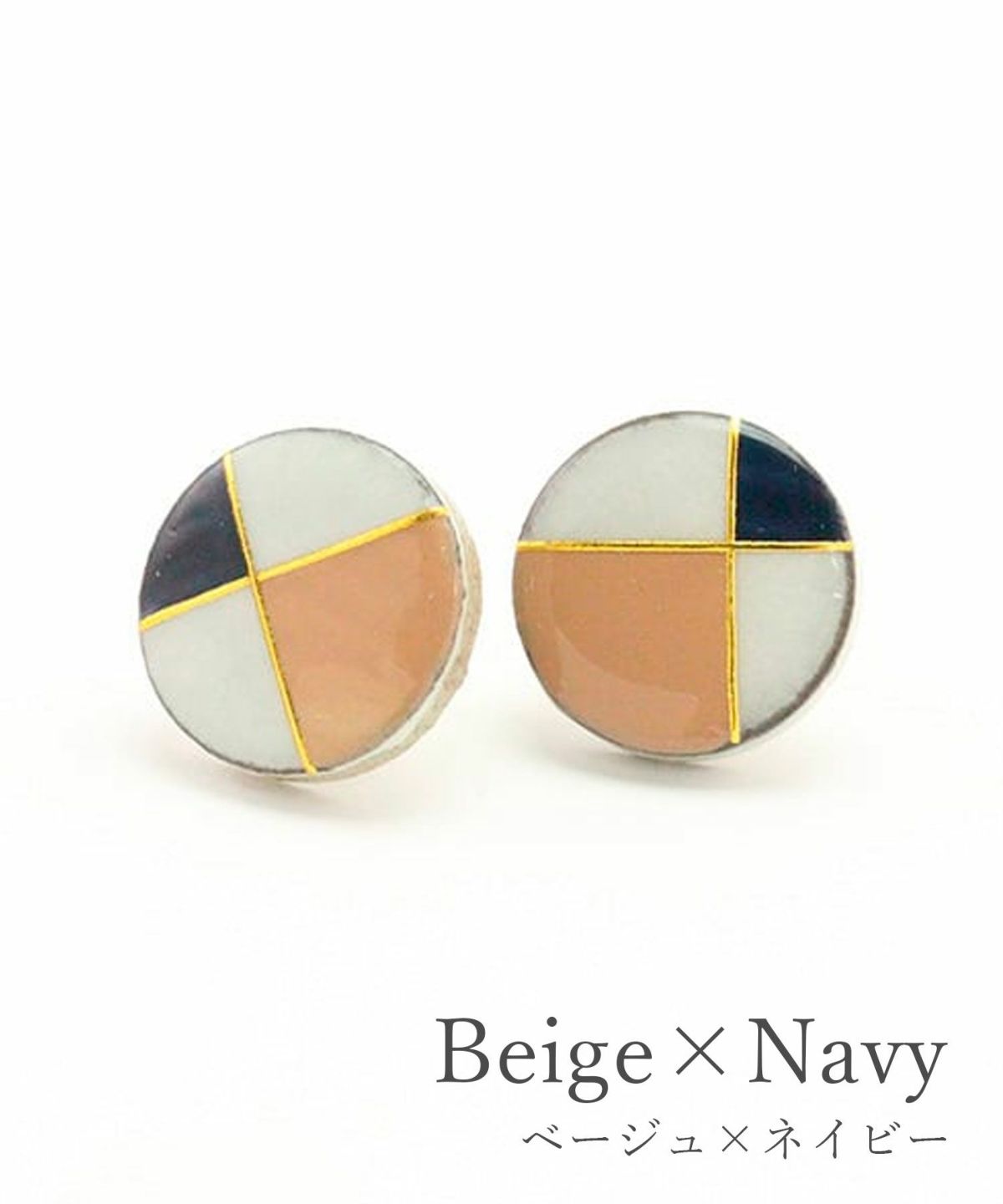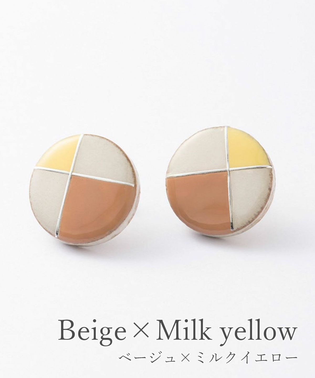 伝統工芸品、美濃焼陶器のピアス。 ダスティホワイトの陶器にフレンチクラシカルのテイストをプラスした、上品なカラーリングが魅力のアイテムです。 温かみのある陶器にメタリックを組み合わせ、存在感を演出。耳元をおしゃれに彩ります。