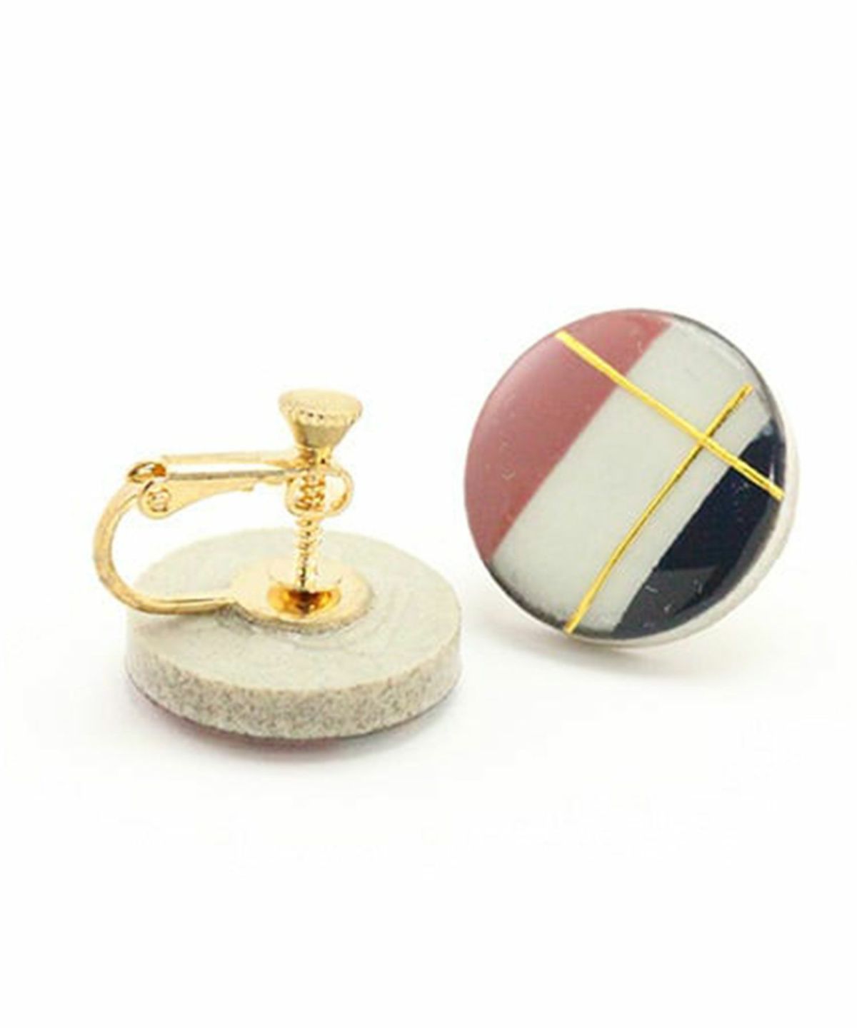 伝統工芸品、美濃焼陶器のイヤリング。 ダスティホワイトの陶器にフレンチクラシカルのテイストをプラスした上品なカラーリングが魅力のアイテムです。 温かみのある陶器に、メタリックのラインでさりげない存在感を演出。耳元をおしゃれに彩ります。