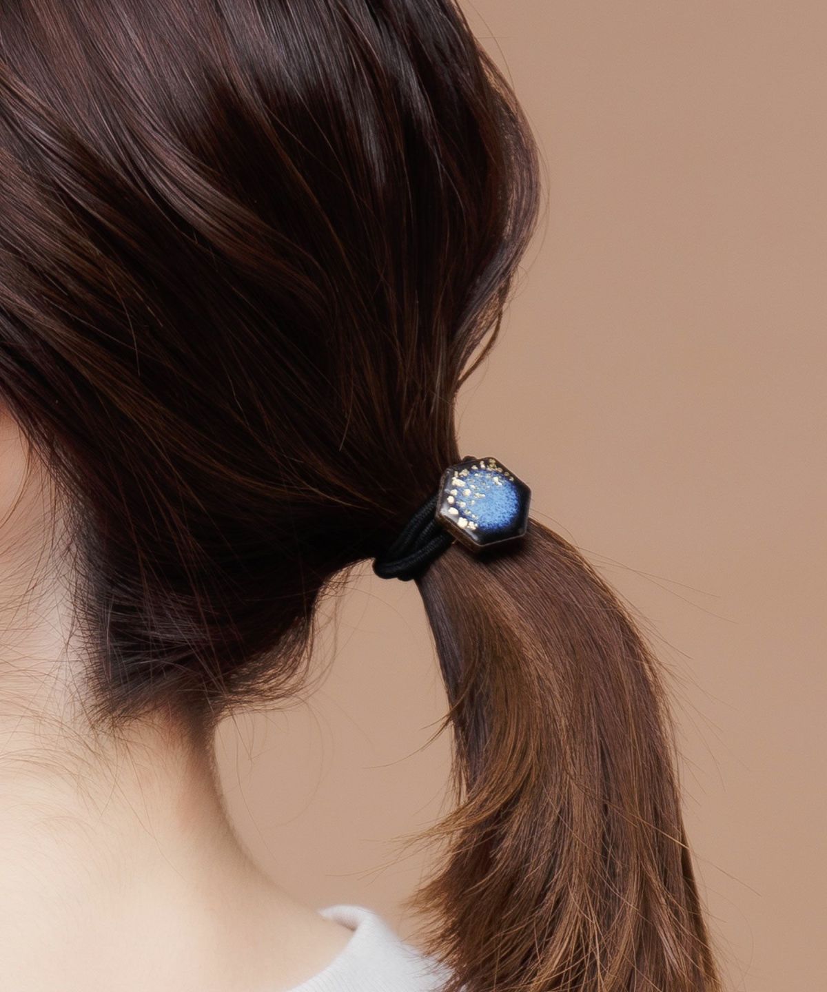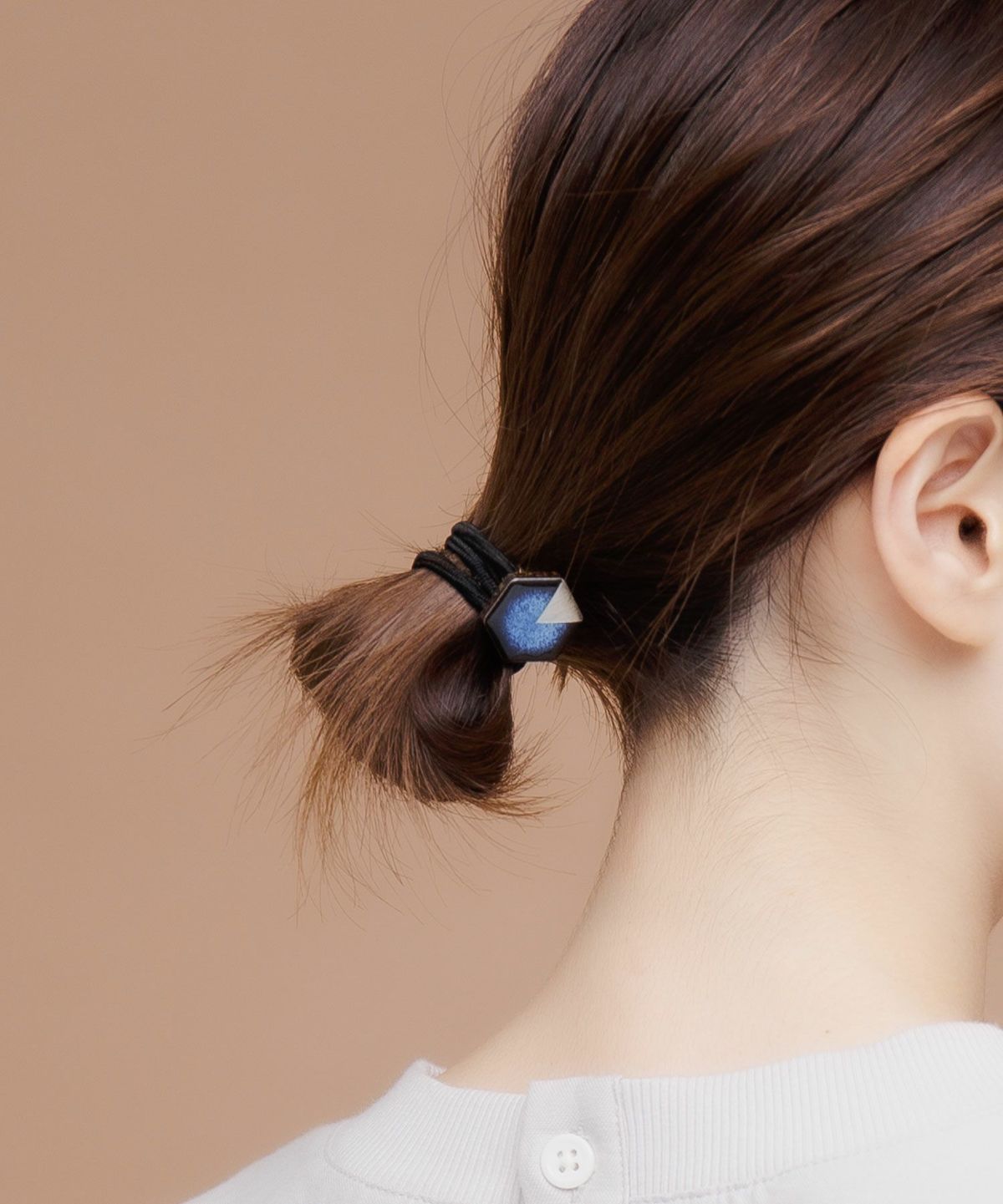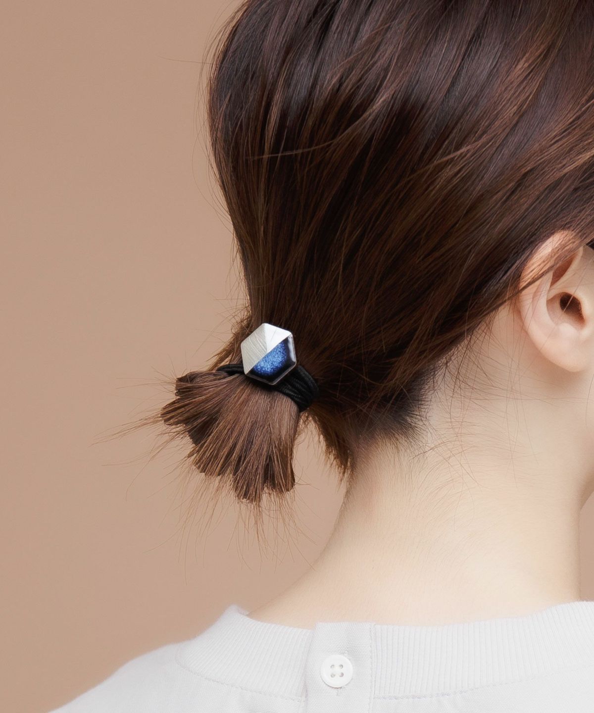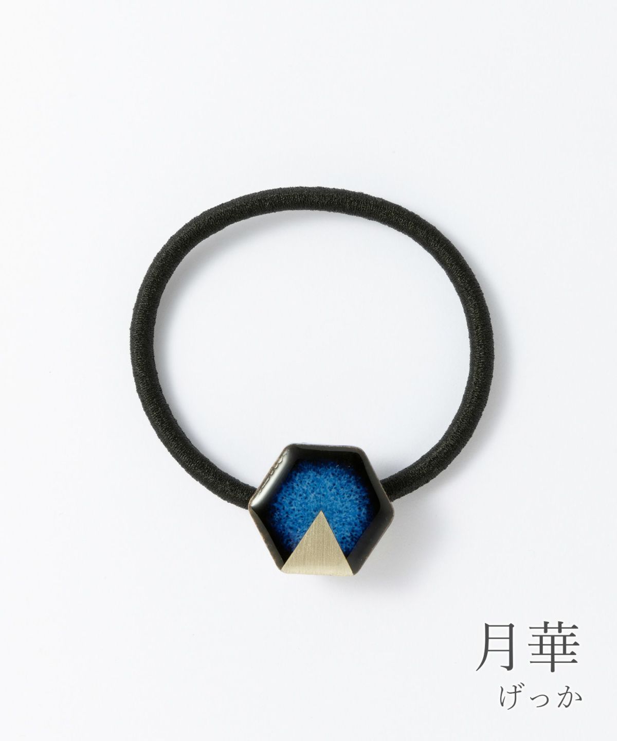 伝統工芸品、美濃焼陶器のヘアゴムです。 藍色にゴールドのアクセントが知的で女性らしい印象に。シンプルな色使いが普段使いにも取り入れやすく、存在感もあるのでパーティーシーンにも活躍してくれます。