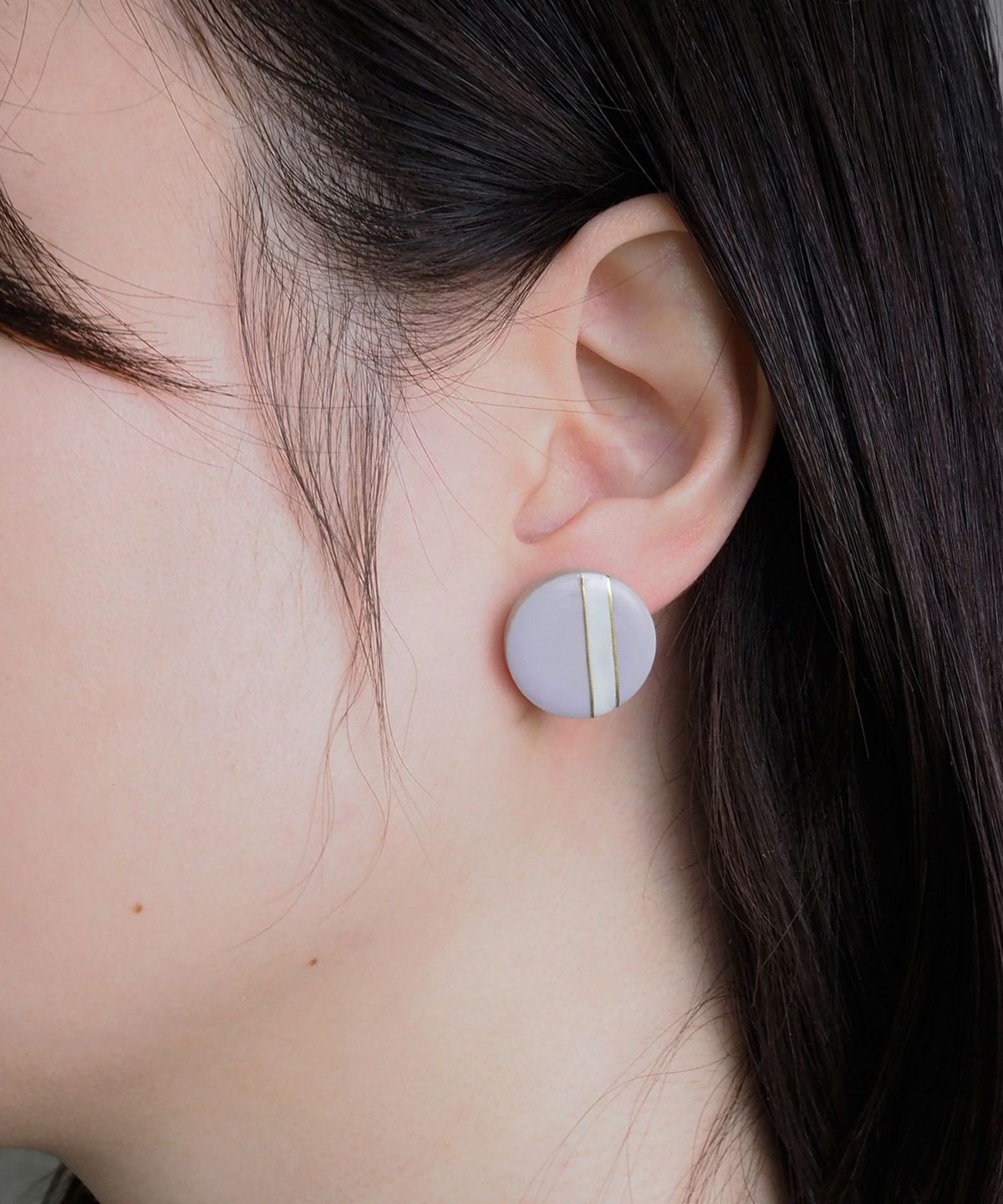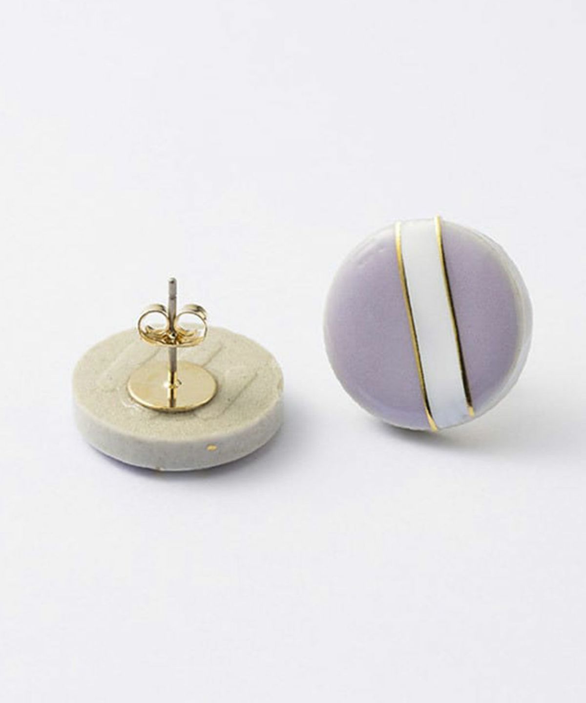 伝統工芸品、美濃焼陶器のピアス。温かみのある陶器にクラシックなテイストをプラスしたクラシックラインは、爽やかなカラーの組み合わせが特徴です。 ニュアンスカラーのライラックにホワイトとゴールドのデザインが顔回りをおしゃれに演出。大人スタイルにおすすめです。