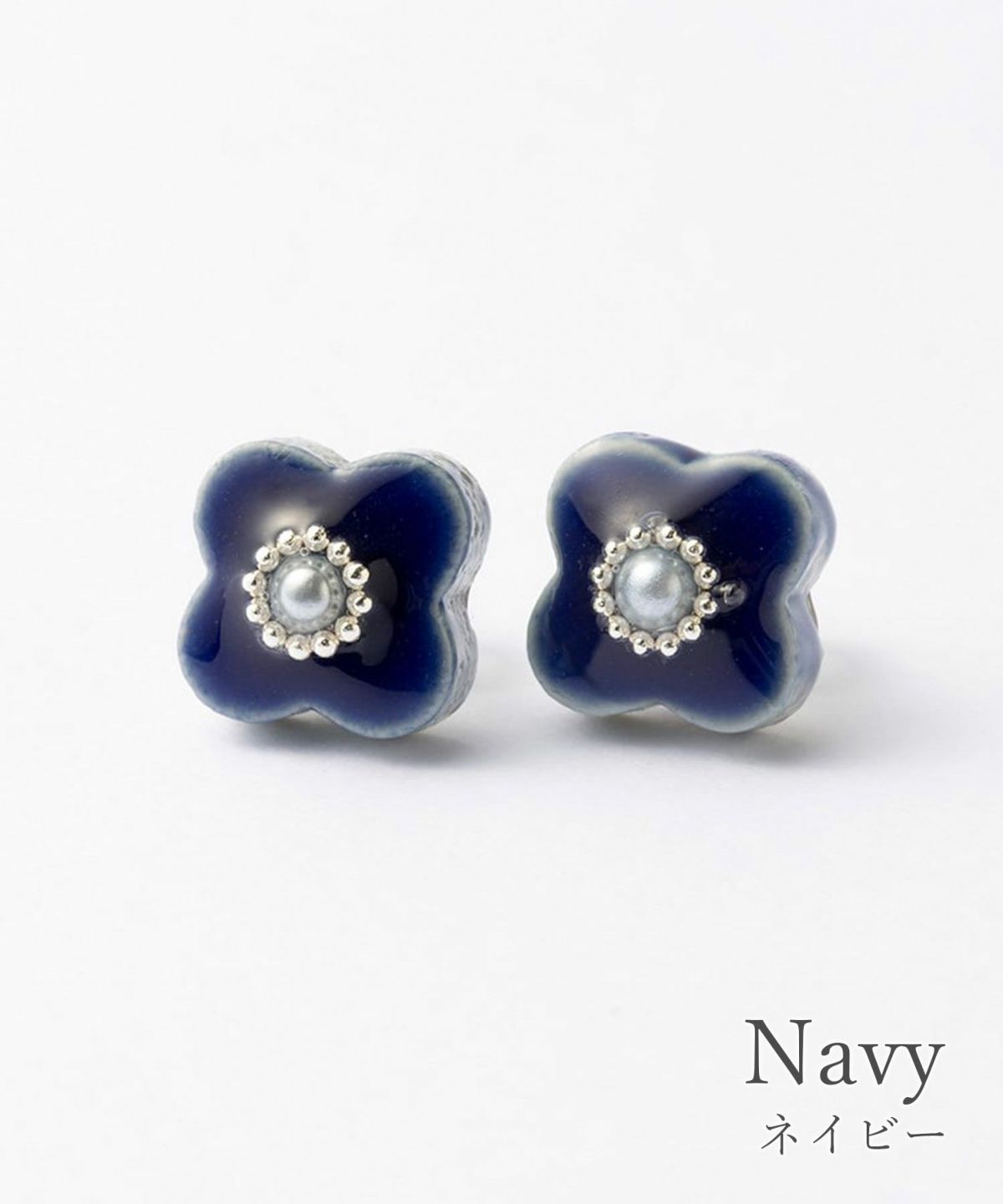 美濃焼陶器にパールとシルバーカラーの小粒ブリオンが輝くピアス。陶器ならではの釉薬の絶妙なカラーが魅力のアイテムです。華やかな存在感は、普段使いだけでなく、パーティーシーンでも活躍。上品さをプラスした繊細なデザインもポイントです。