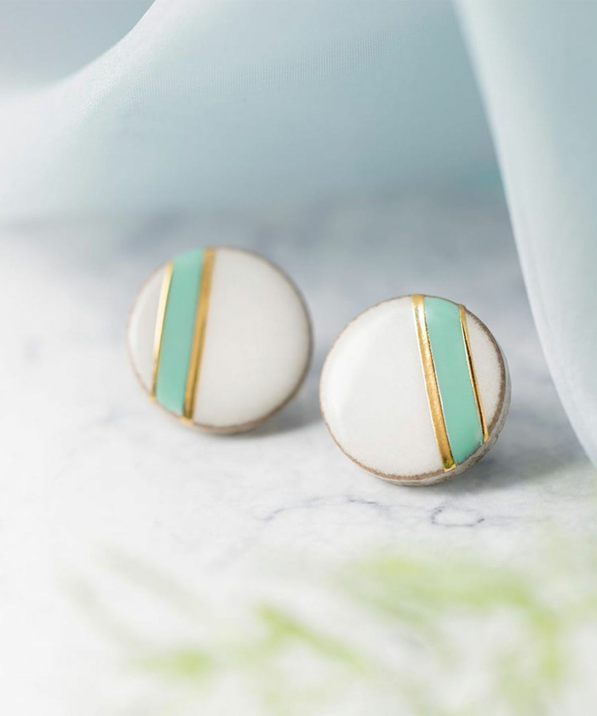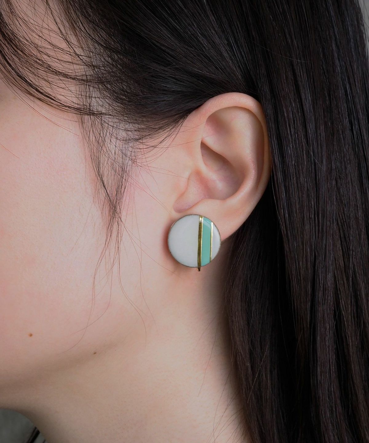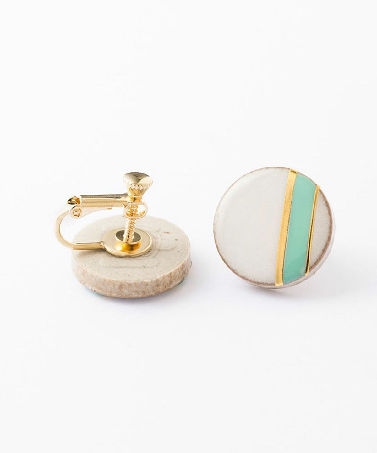 伝統工芸品、美濃焼陶器のイヤリング。温かみのある陶器にクラシックなテイストをプラスしたクラシックラインは、爽やかなカラーの組み合わせが特徴です。 ダスティホワイトに爽やかなミントカラーを組み合わせた軽やかなカラーリング。ゴールドのアクセントが耳元をおしゃれに飾ります。さりげない存在感で大人スタイルにおすすめです。