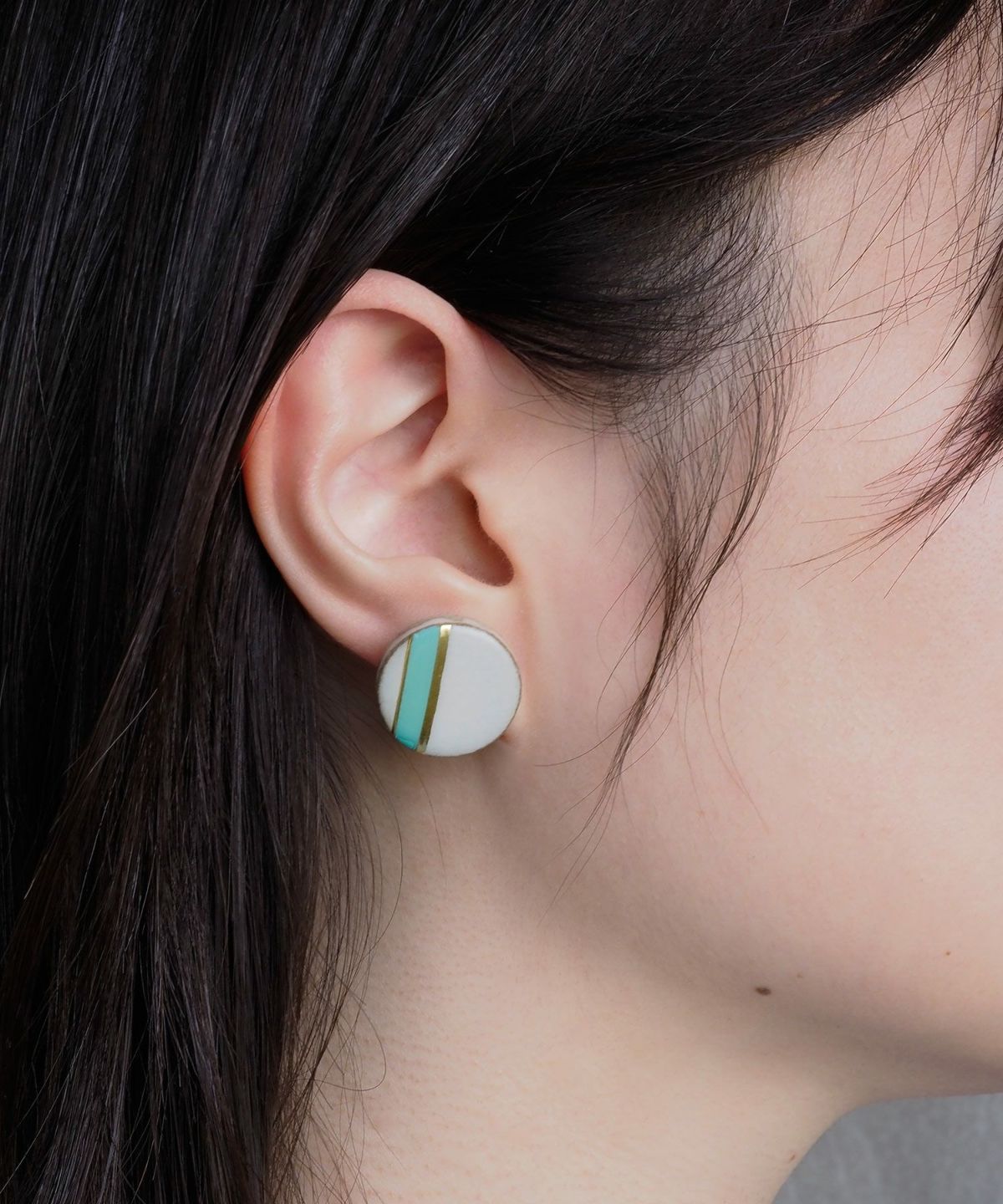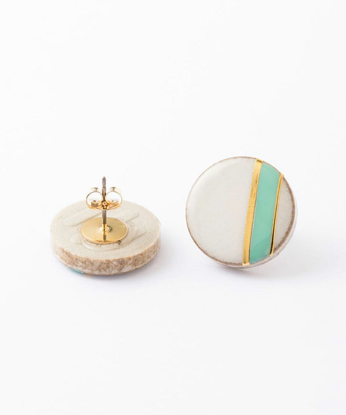 伝統工芸品、美濃焼陶器のピアス。温かみのある陶器にクラシックなテイストをプラスしたクラシックラインは、爽やかなカラーの組み合わせが特徴です。 ダスティホワイトに爽やかなミントカラーを組み合わせた軽やかなカラーリング。ゴールドのアクセントが耳元をおしゃれに飾ります。さりげない存在感で大人スタイルにおすすめです。
