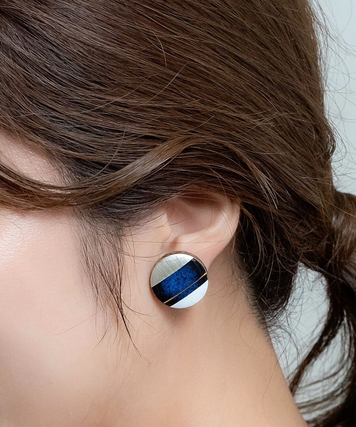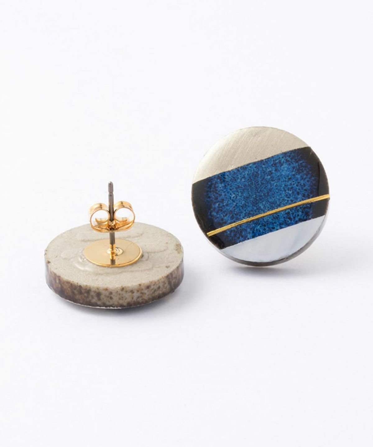 伝統工芸品、美濃焼陶器のピアス。温かみのある陶器にクラシックなテイストをプラスしたクラシックラインは、爽やかなカラーの組み合わせが特徴です。 美濃焼の美しい藍色とメタリックの組み合わせが、上品で知的な雰囲気。さりげない存在感を演出で耳元をおしゃれに飾ります。大人スタイルにおすすめです。