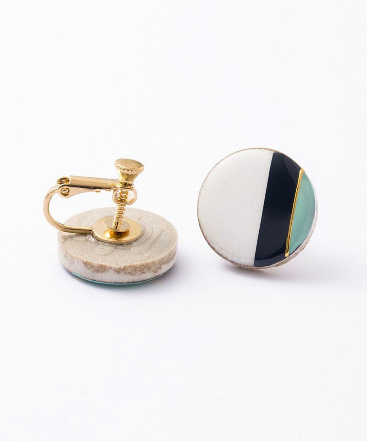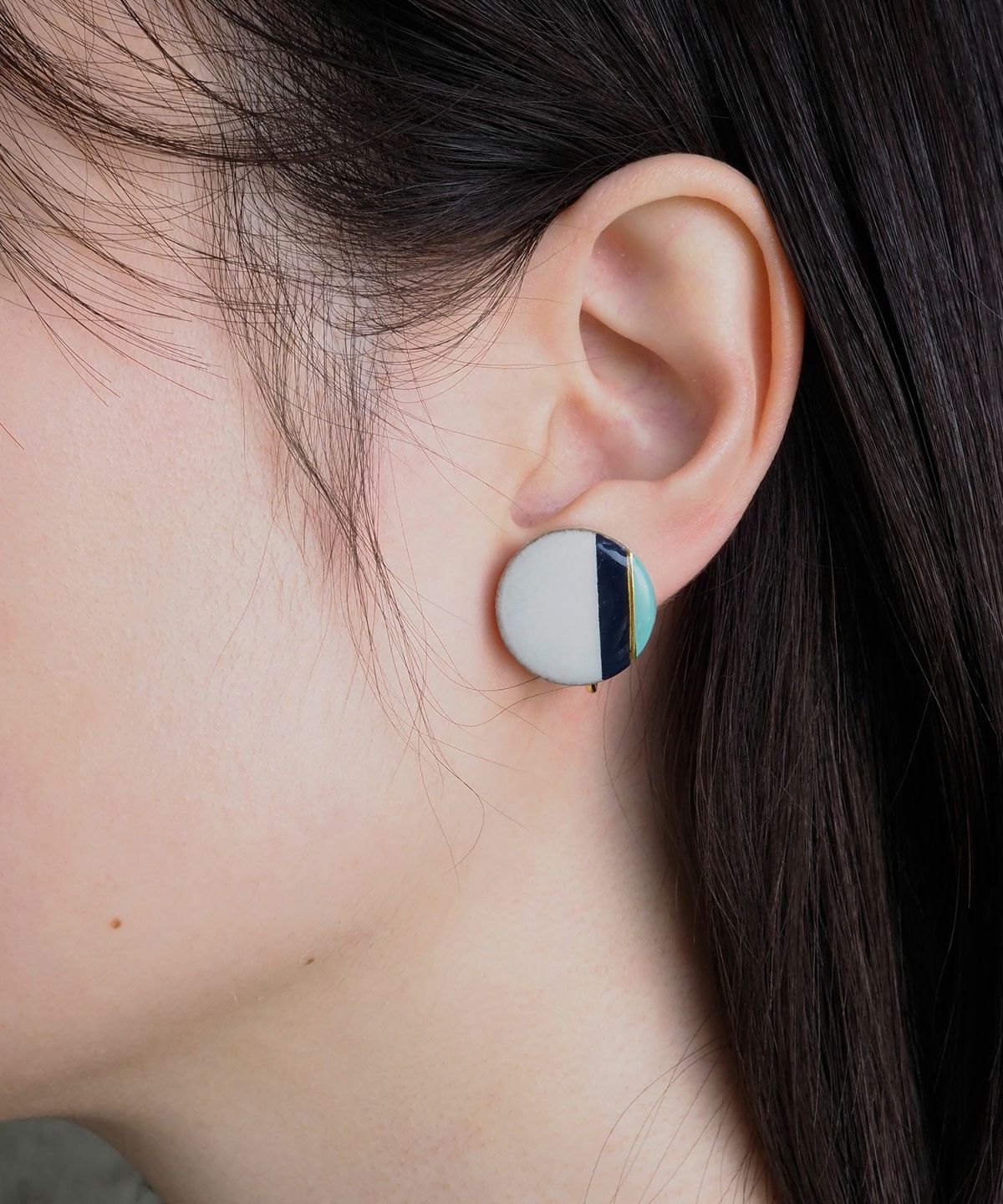 伝統工芸品、美濃焼陶器のイヤリング。温かみのある陶器にクラシックなテイストをプラスしたクラシックラインは、爽やかなカラーの組み合わせが特徴です。 メタリックのラインがさりげない存在感を演出。耳元をおしゃれに飾ります。大人スタイルにおすすめです。