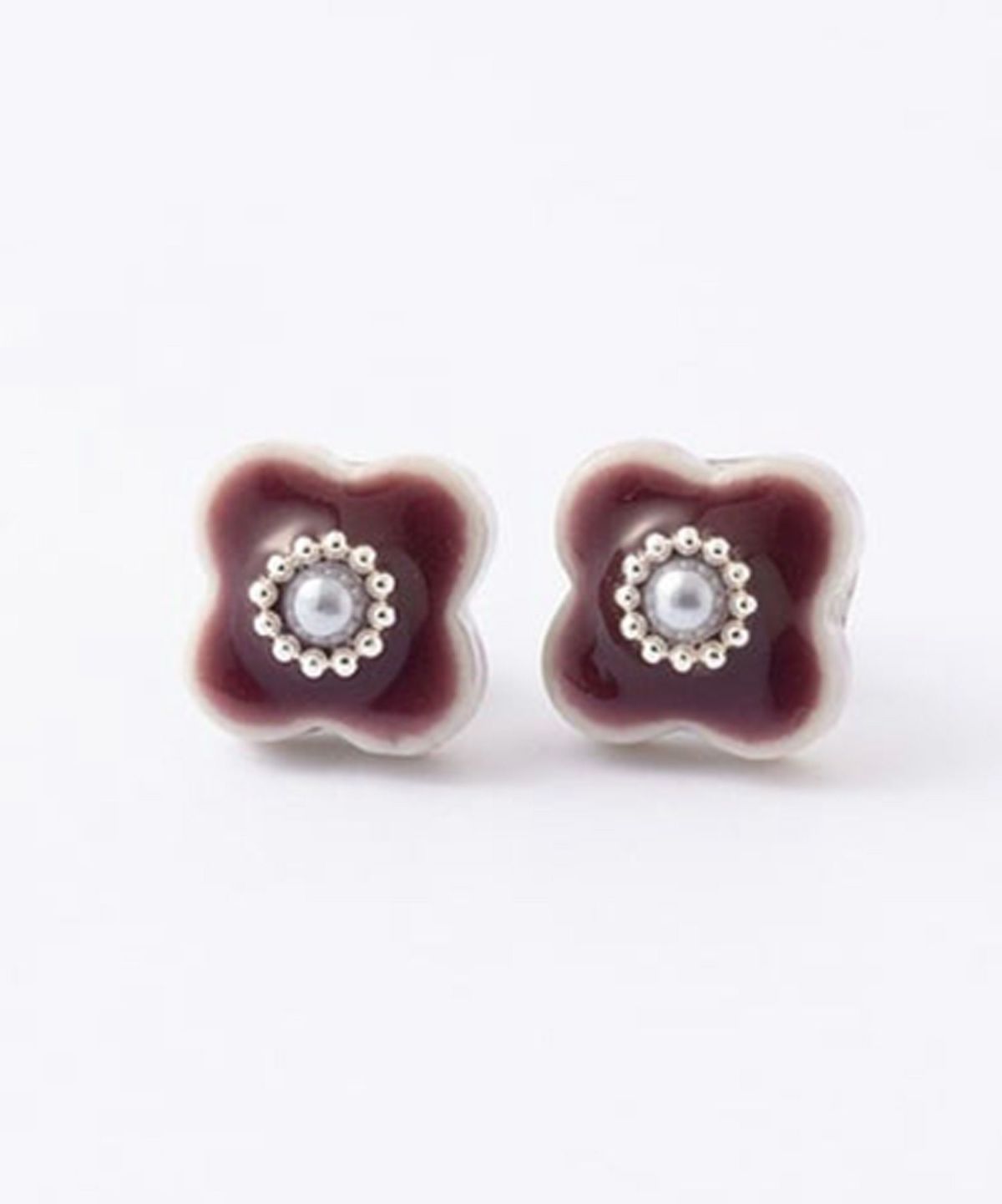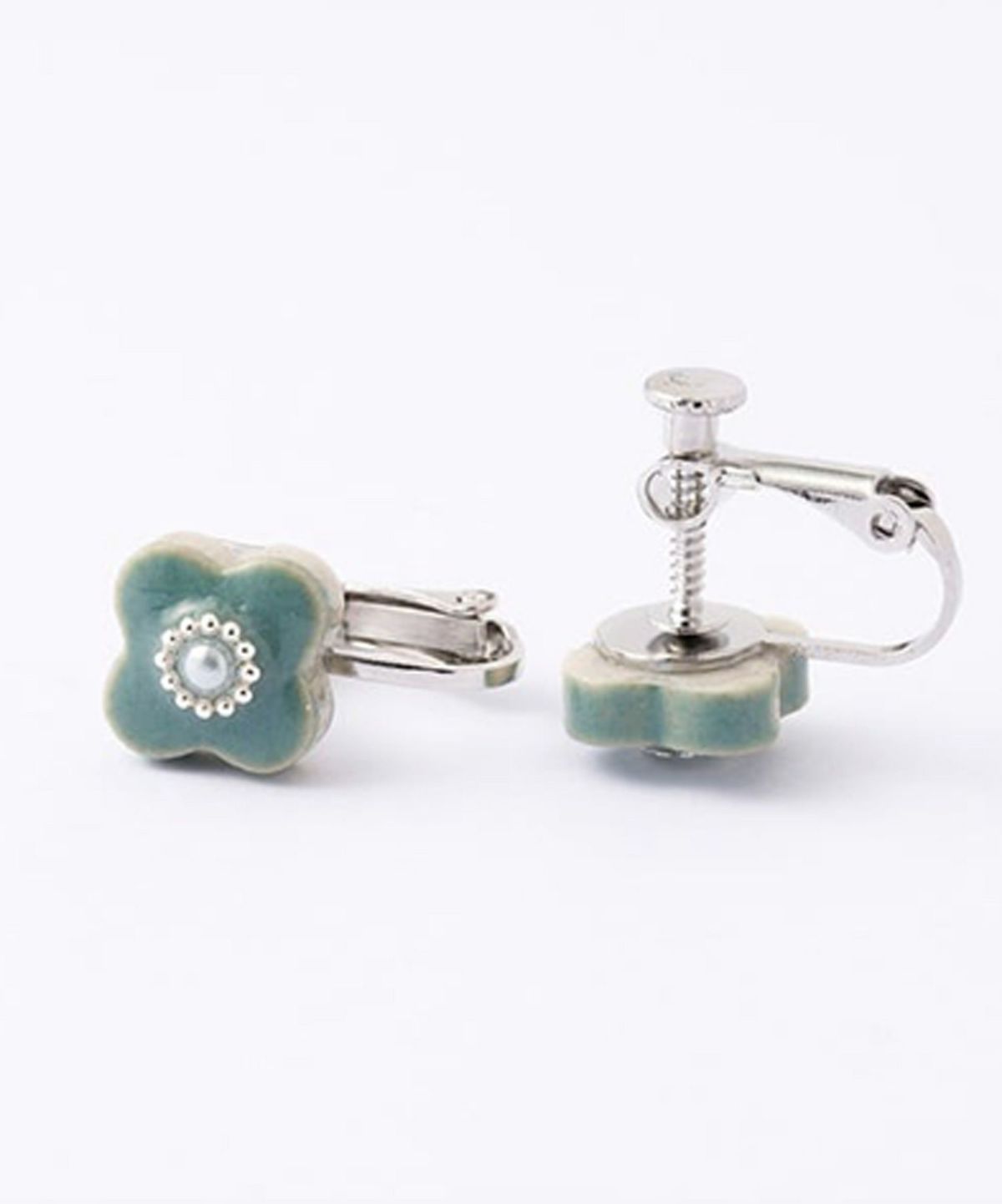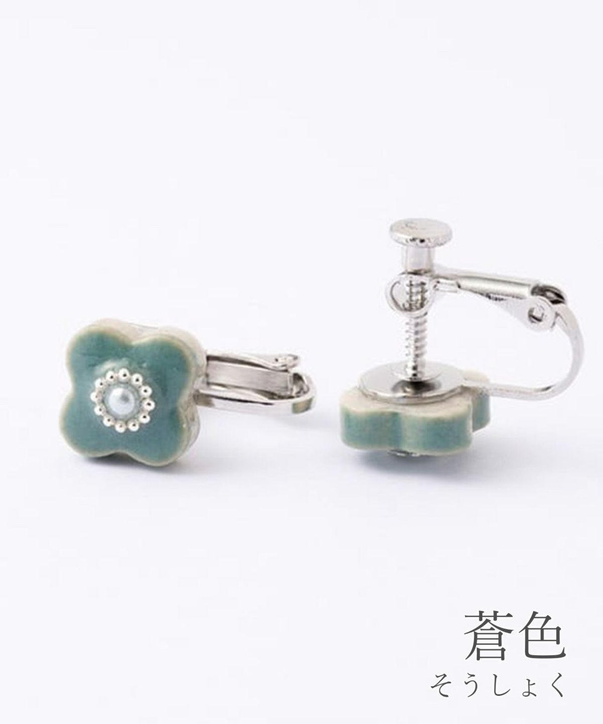 美濃焼陶器にパールとシルバーカラーの小粒ブリオンが輝くイヤリング。陶器ならではの釉薬の絶妙なカラーが魅力のアイテムです。華やかな存在感は、普段使いだけでなく、パーティーシーンでも活躍。上品さをプラスした繊細なデザインもポイントです。