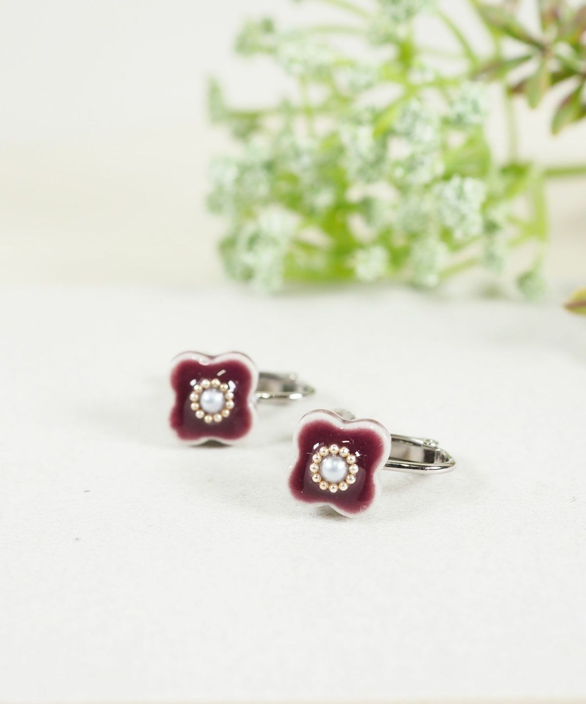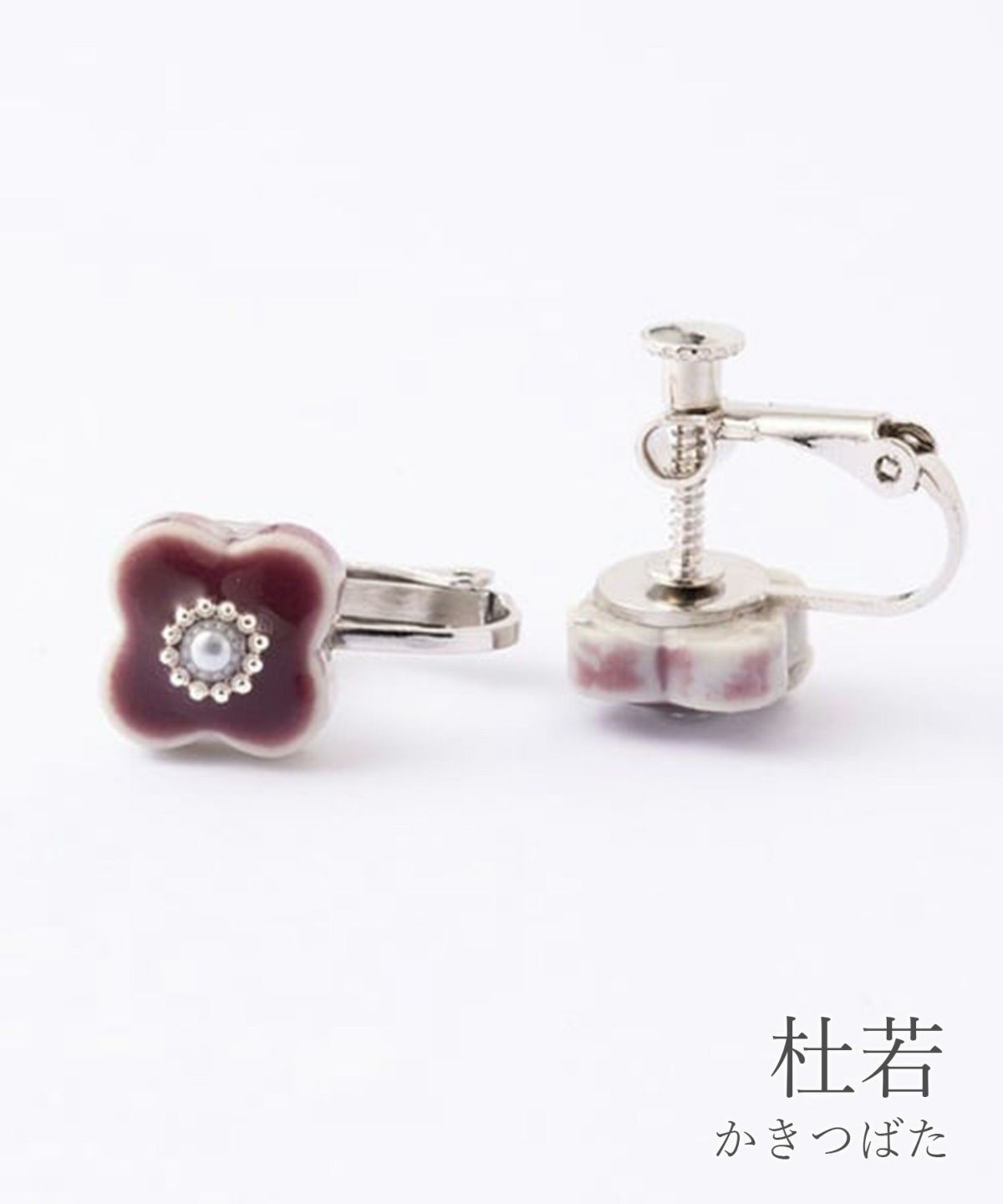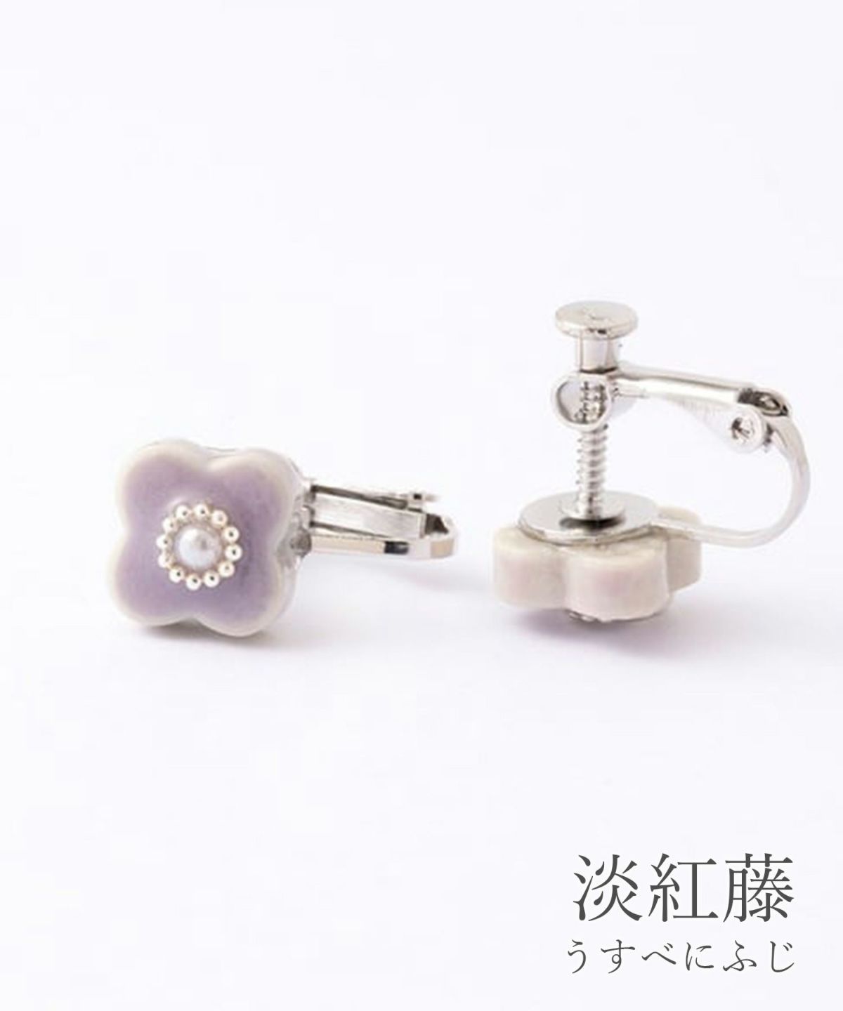 美濃焼陶器にパールとシルバーカラーの小粒ブリオンが輝くイヤリング。陶器ならではの釉薬の絶妙なカラーが魅力のアイテムです。華やかな存在感は、普段使いだけでなく、パーティーシーンでも活躍。上品さをプラスした繊細なデザインもポイントです。