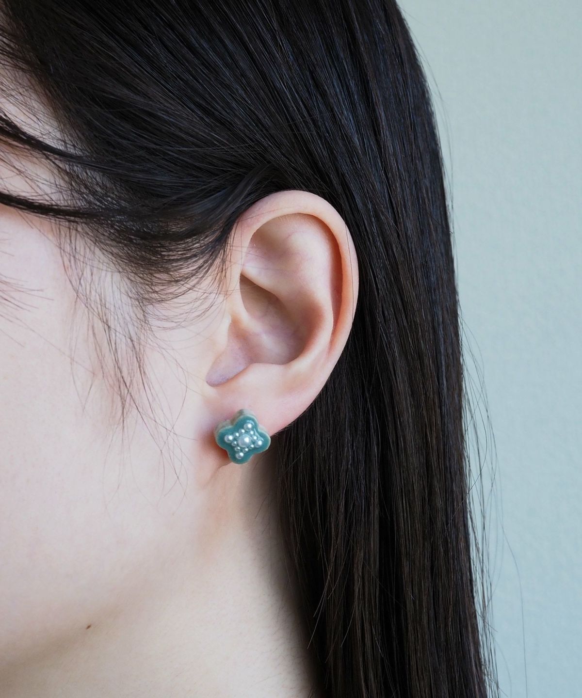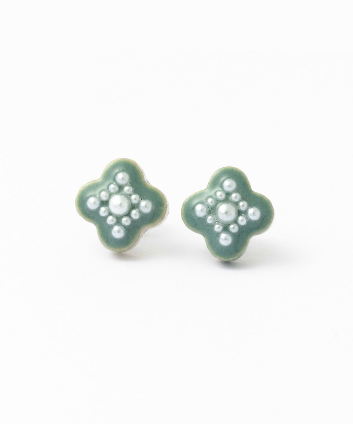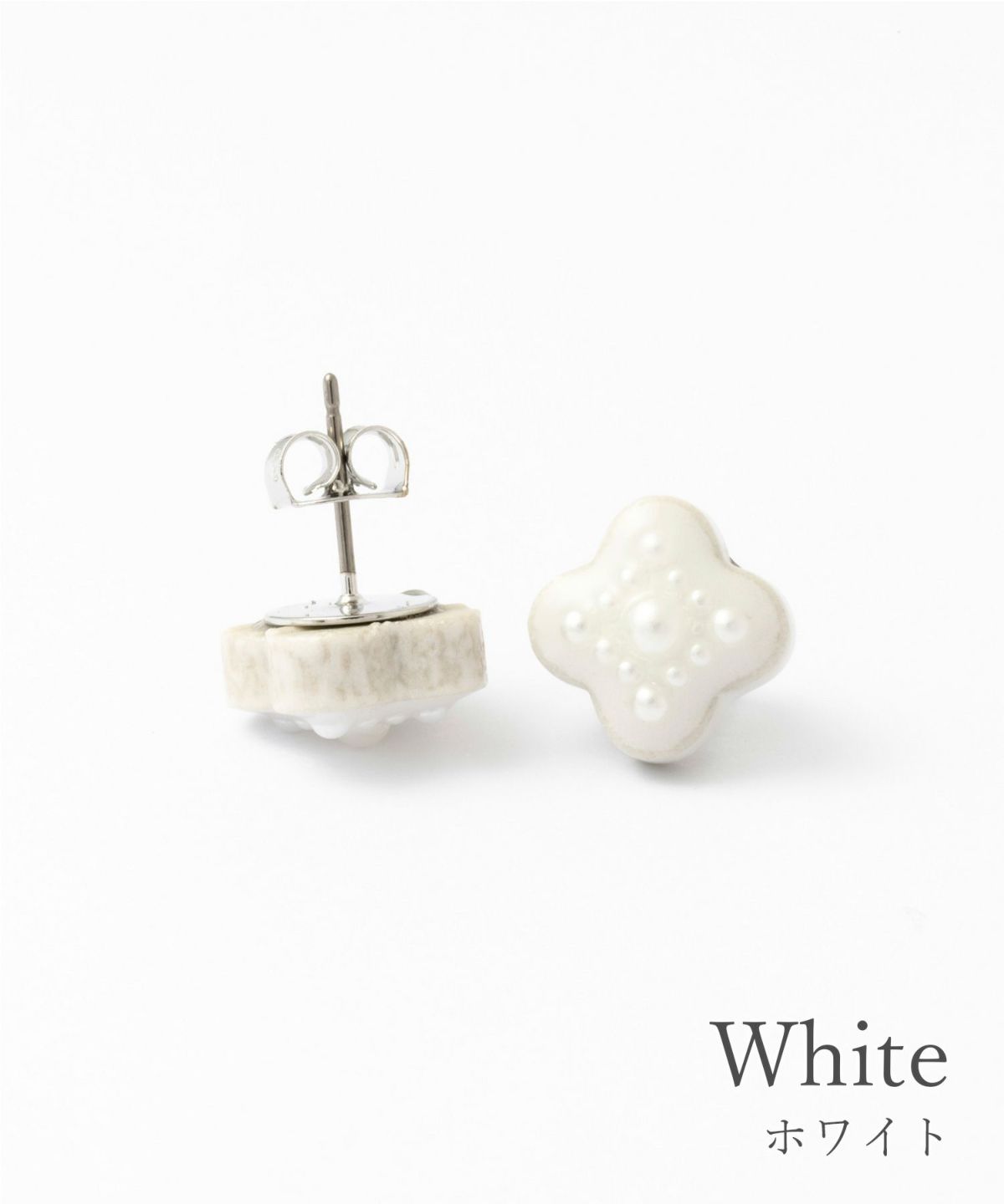 美濃焼陶器にflowering(開花)をイメージした大小のパールが輝くピアス。陶器ならではの釉薬の絶妙なカラーが魅力のアイテムです。華やかな存在感は、普段使いだけでなく、パーティーシーンでも活躍。上品さをプラスした繊細なデザインもポイントです。