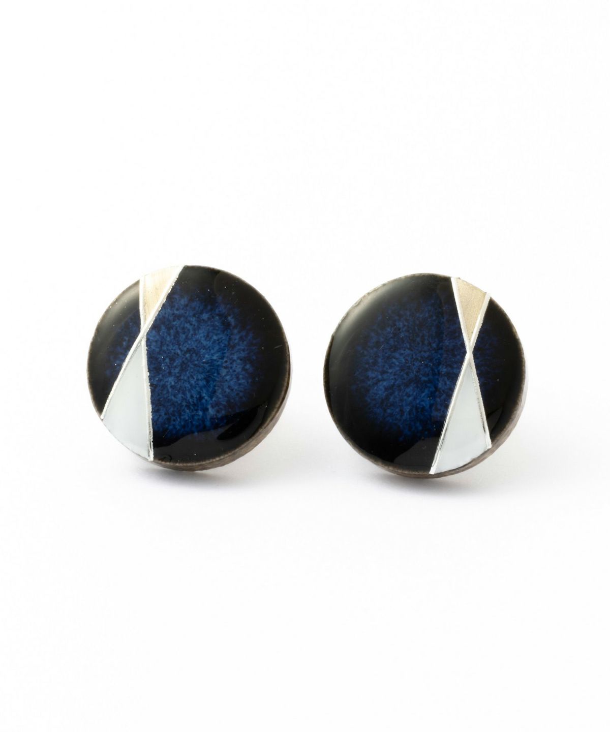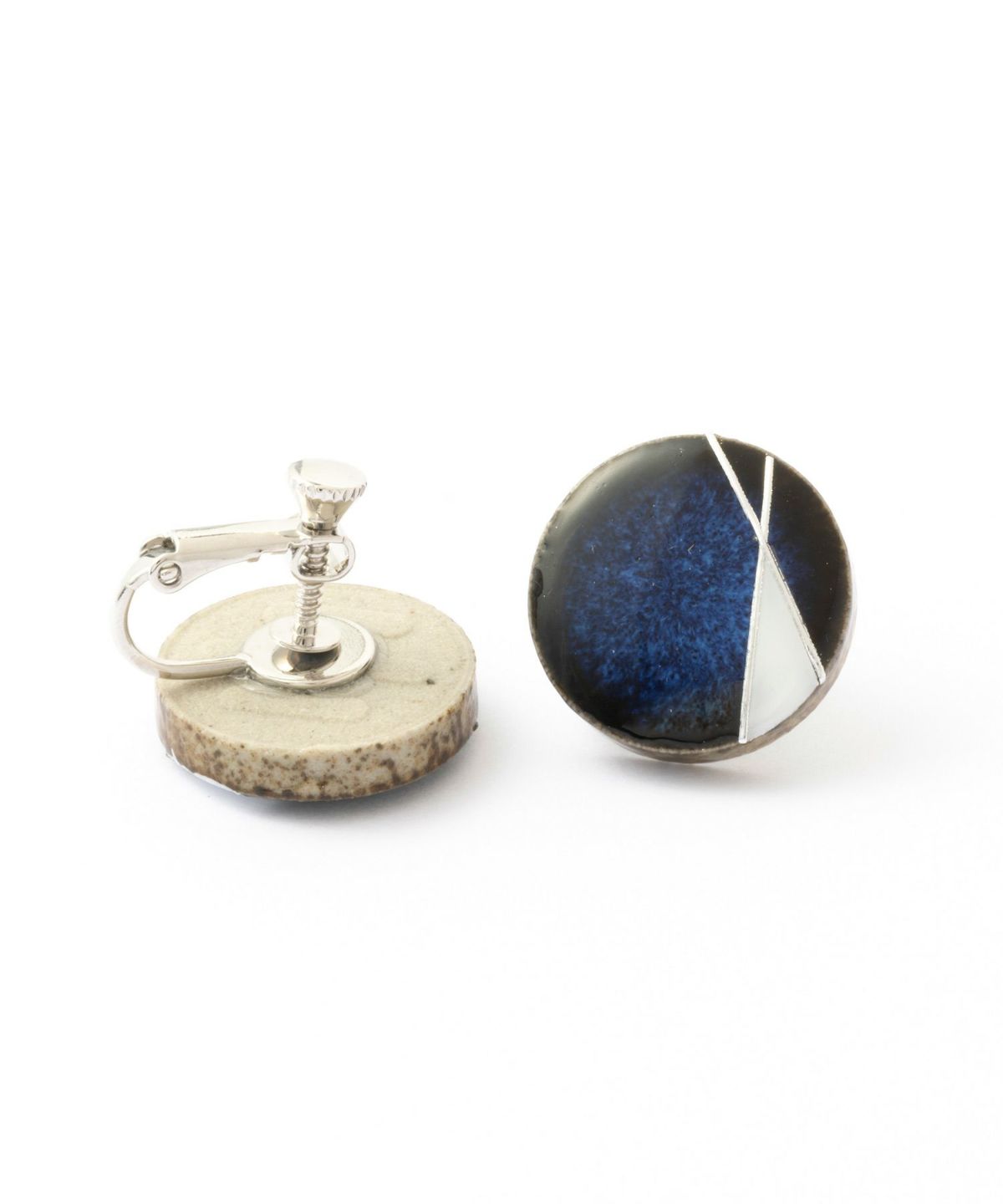 美濃焼陶器に直線的で幾何学的な模様をデザインしたラインデコシリーズのイヤリング。 陶器の温かみにラインの幾何学模様のシャープさをプラス。 藍色が美しい美濃焼陶器に、メタリックなデザインを施した上品で知的な雰囲気のイヤリングです。 ペアピアス(両耳用)です。