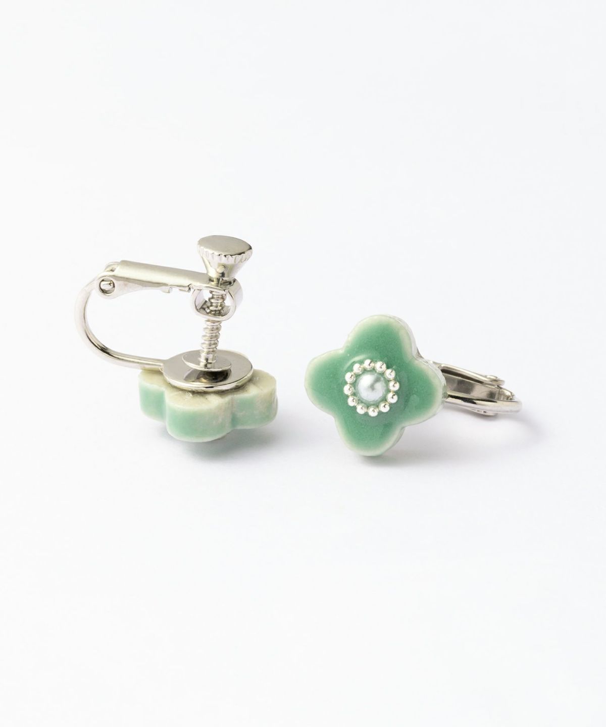 美濃焼陶器にパールと極小のシルバーカラーのブリオンが輝くイヤリング。陶器ならではの釉薬の絶妙なカラーが魅力のアイテムです。存在感のあるデザインなので、普段のコーディネートに取り入れて大人のお洒落を楽しめます。