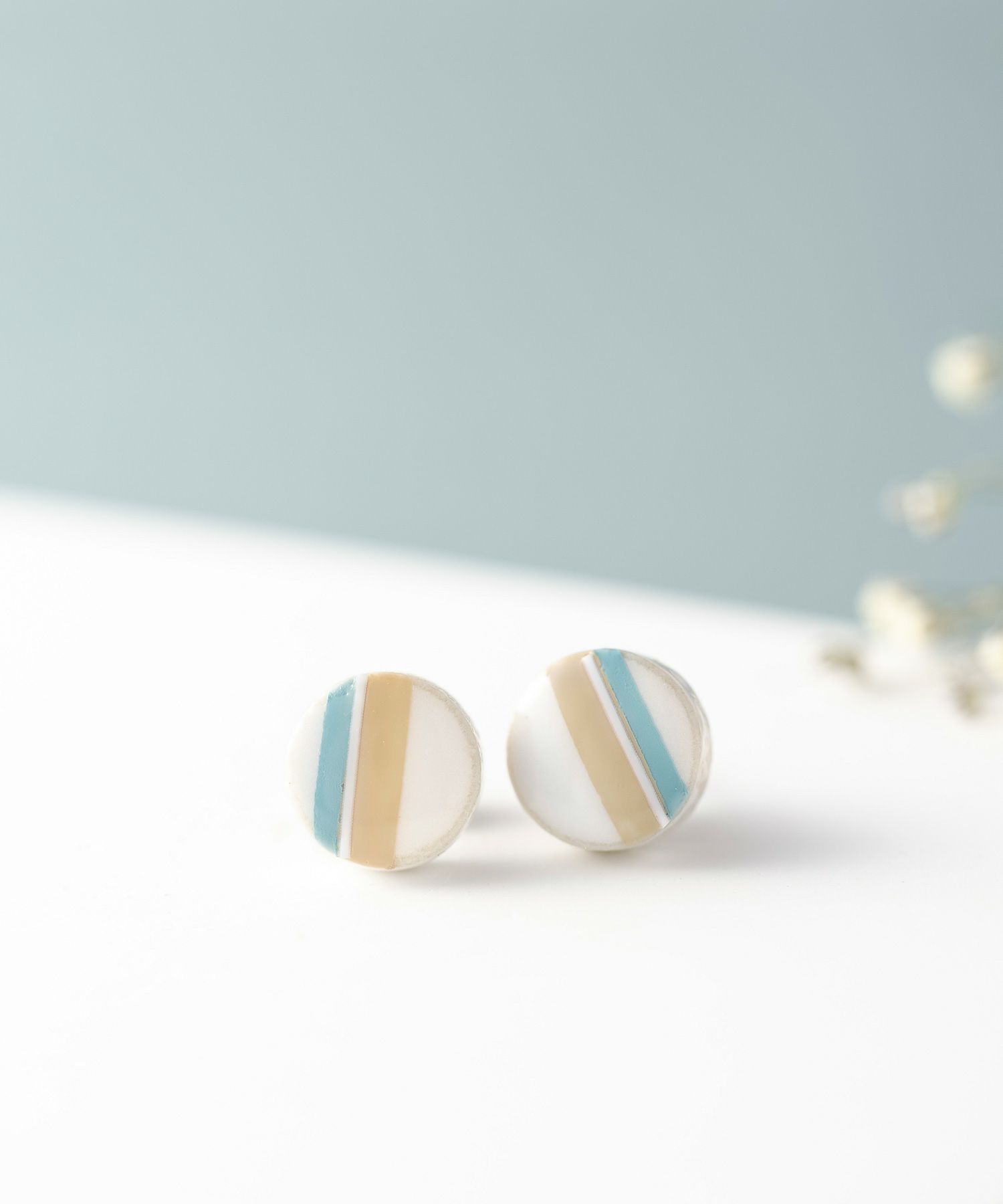 美濃焼陶器にクラシックなテイストをオンしたクラシックライン。爽やかなカラーの組み合わせが特徴です。さりげない存在感で耳元をおしゃれに飾ります。大人スタイルにおすすめ。ペアピアス(両耳用)です。