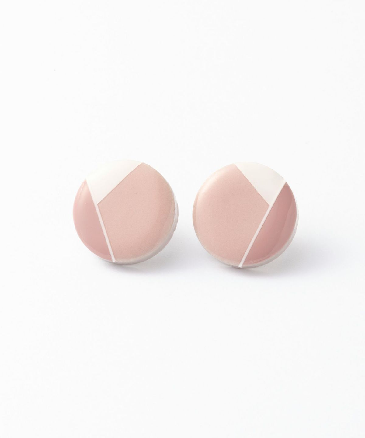 美濃焼陶器のピアス。桜色にダスティピンクとホワイトのアクセントが知的で女性らしい印象に。シンプルな2色使いが普段使いにも取り入れやすく、存在感もあるのでお出かけにも活躍してくれます。ペアピアス(両耳用)です。
