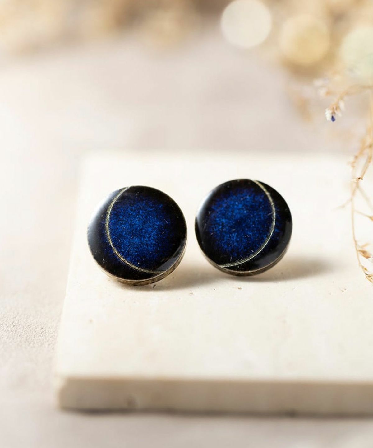 美濃焼陶器に彫刻を施したコレクション「carve(カーブ)」。陶器の温かみにラインの幾何学模様がシャープさをプラス。藍色が美しい美濃焼に、シルバーゴールドのデザインを施した上品で知的な雰囲気のピアスです。涼しげな美濃焼の色合いは爽やかな印象も。シンプルなデザインながら存在感もあるので、普段使いにはもちろん、パーティーシーンでも活躍してくれます。