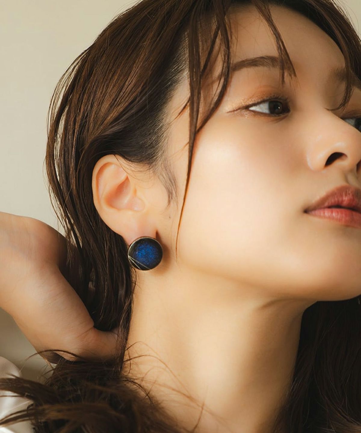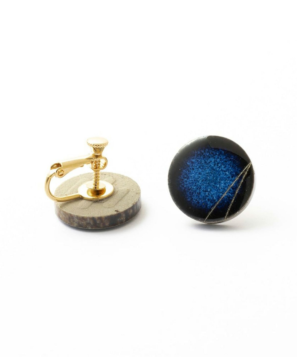 美濃焼陶器に彫刻を施したコレクション「carve(カーブ)」。陶器の温かみにラインの幾何学模様がシャープさをプラス。藍色が美しい美濃焼に、シルバーゴールドのデザインを施した上品で知的な雰囲気のイヤリングです。涼しげな美濃焼の色合いは爽やかな印象も。シンプルなデザインながら存在感もあるので、普段使いにはもちろん、パーティーシーンでも活躍してくれます。
