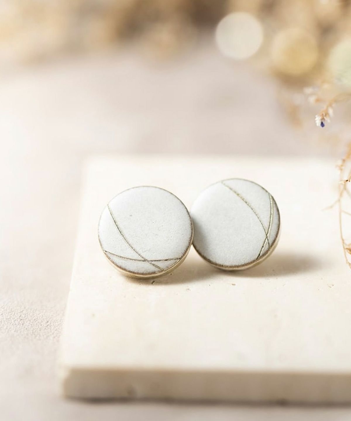 美濃焼陶器に彫刻を施したコレクション「carve(カーブ)」。陶器の温かみにラインの幾何学模様がシャープさをプラス。くすみホワイトが美しい美濃焼に、シルバーゴールドのデザインを施した上品で知的な雰囲気のピアスです。涼しげな美濃焼の色合いは爽やかな印象も。シンプルなデザインながら存在感もあるので、普段使いにはもちろん、パーティーシーンでも活躍してくれます。