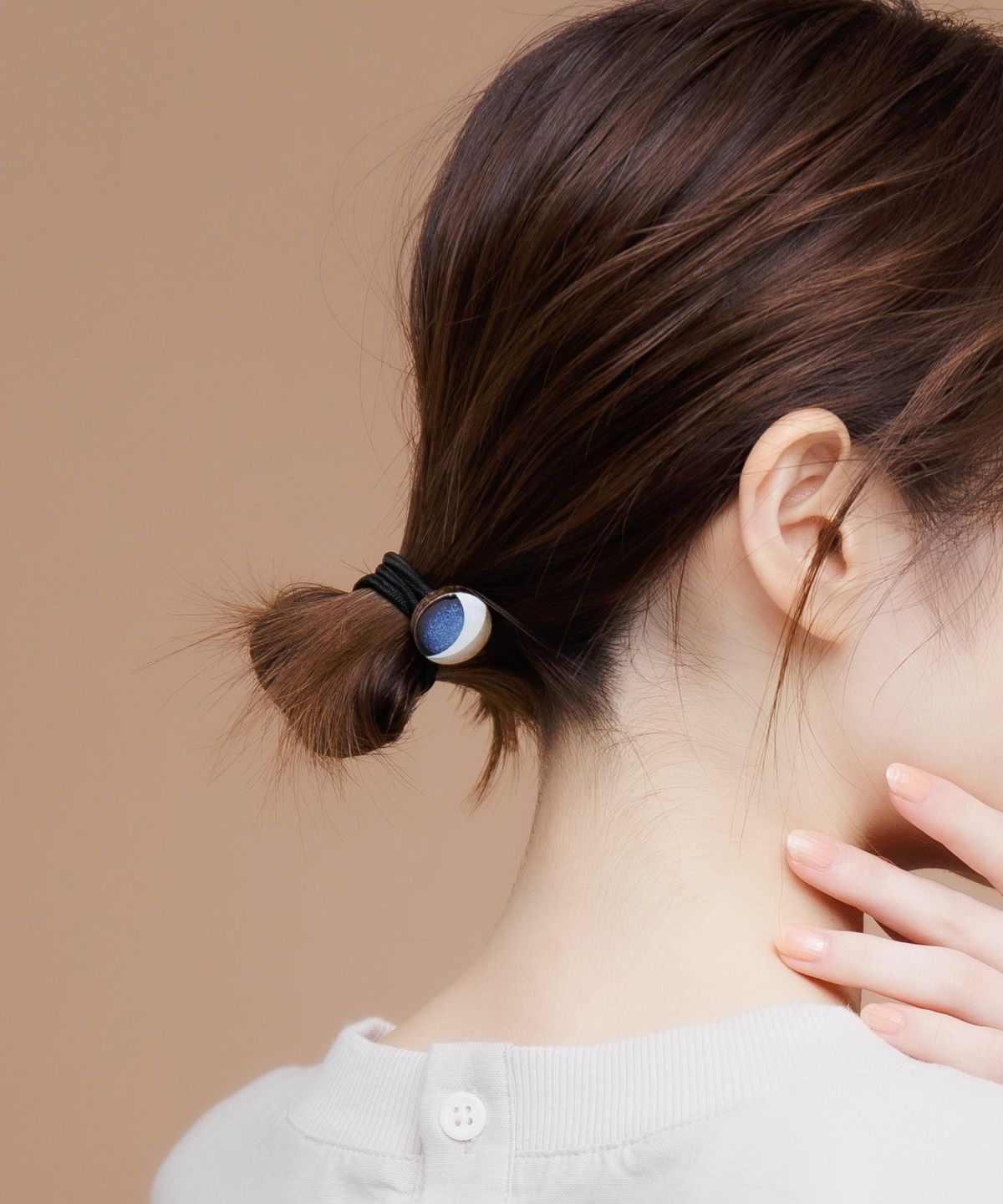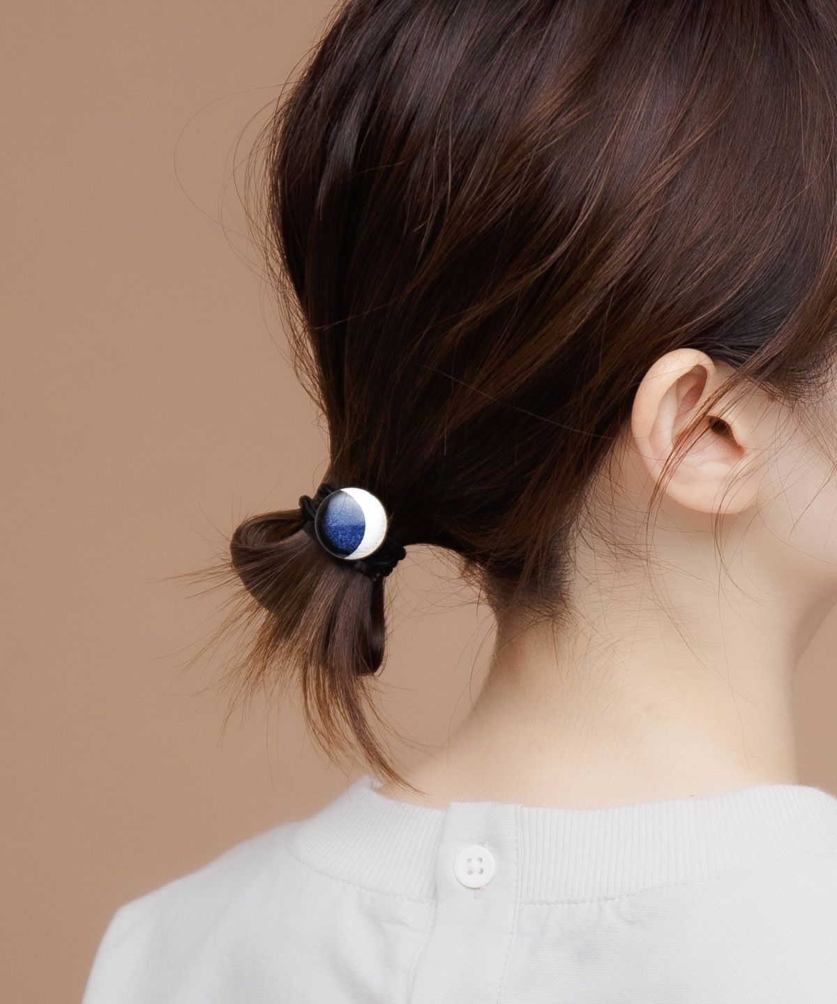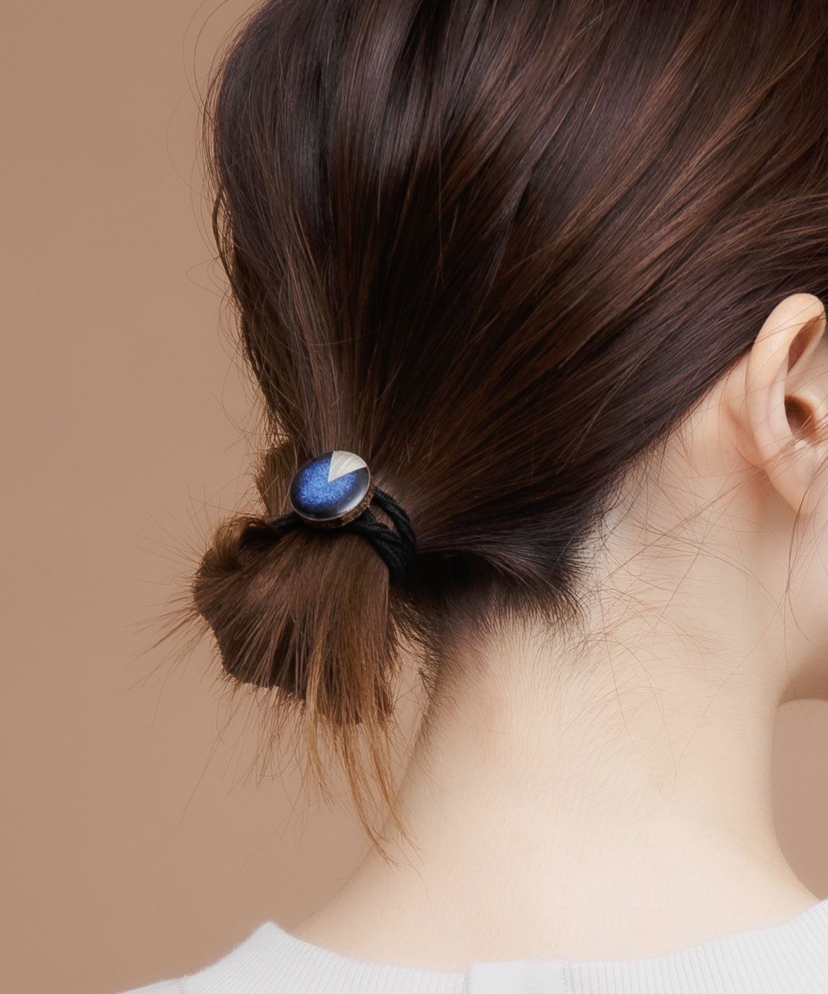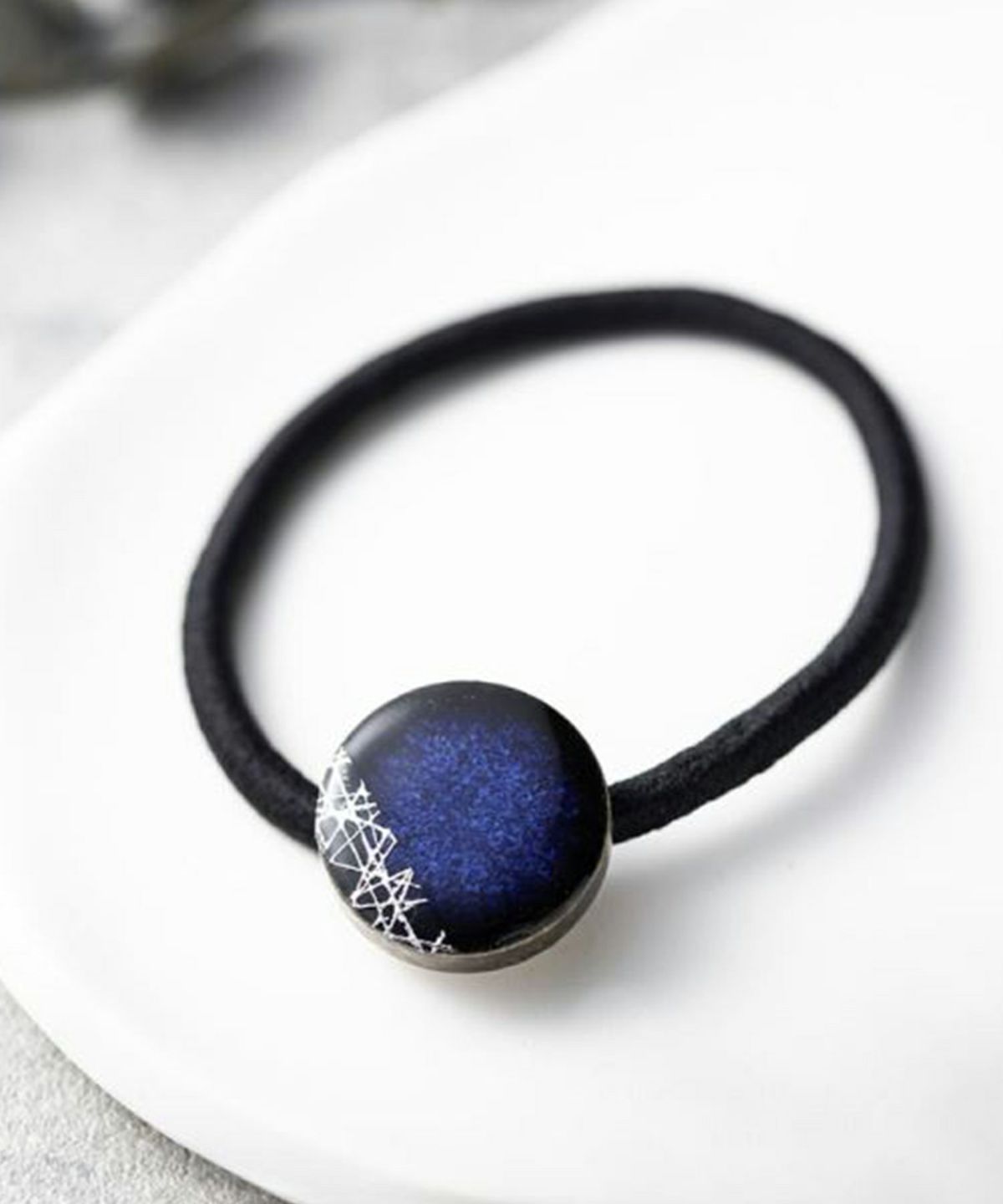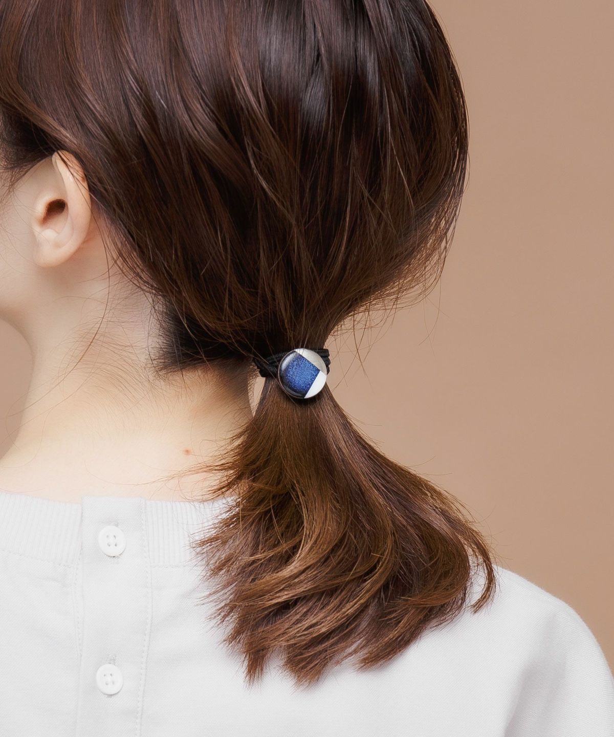 伝統工芸品、美濃焼陶器のヘアゴムです。 藍色にゴールドのアクセントが知的で女性らしい印象に。シンプルな色使いが普段使いにも取り入れやすく、存在感もあるのでパーティーシーンにも活躍してくれます。