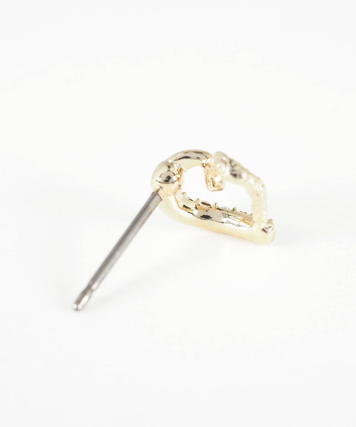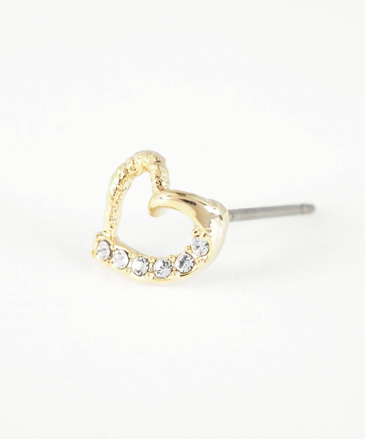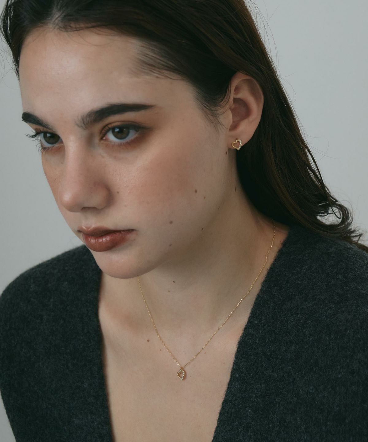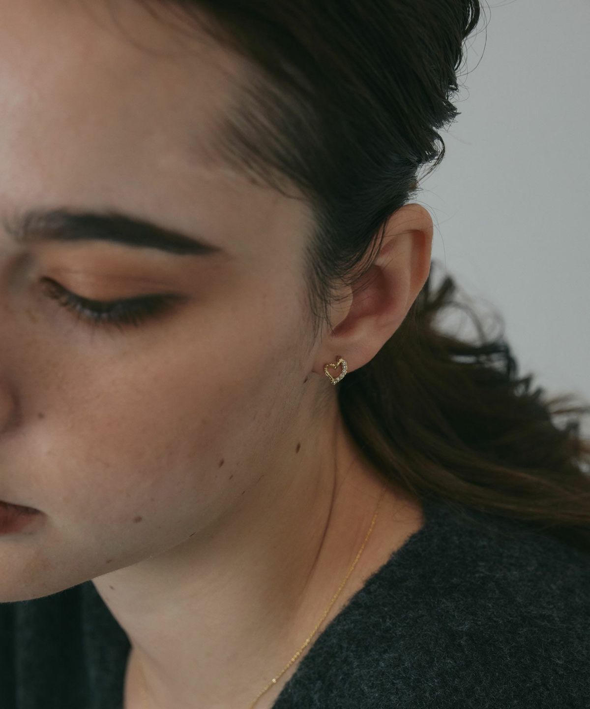 華奢なハートのアウトラインに、パヴェストーンが繊細に煌めく、甘すぎない大人のためのハートピアス。主張しすぎない小ぶりなサイズ感で、どんなスタイルにも馴染むシンプルなデザイン。控えめながらも光をしっかり反射し、横顔をパッと明るく演出します。大人の日常にそっと寄り添う、上品な可愛らしさが魅力の、コーディネートを格上げするアイテムです。ペアピアス(両耳用)です。
