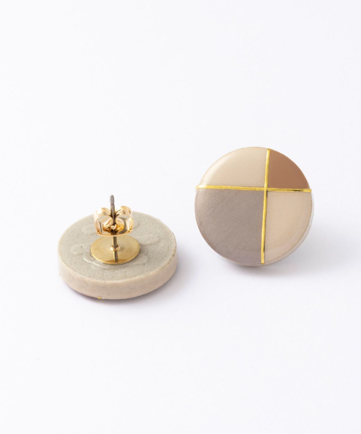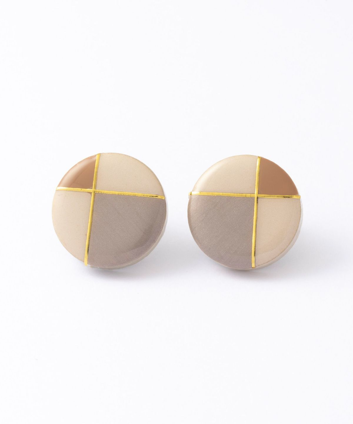 陶器のアクセサリーブランド"MIKELO"とMUKがコラボ企画した別注アイテムです。MIKELOの高級感あふれるデザインとMUKのコンセプトカラーが融合し、上品で柔らかな雰囲気に仕上がりました。ダスティホワイトの陶器にフレンチクラシカルのテイストをプラス。どんなスタイルにも合わせやすく、ワンランク上の装いに。 ペアピアス(両耳用)です。