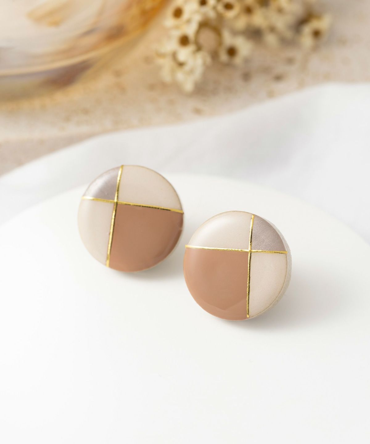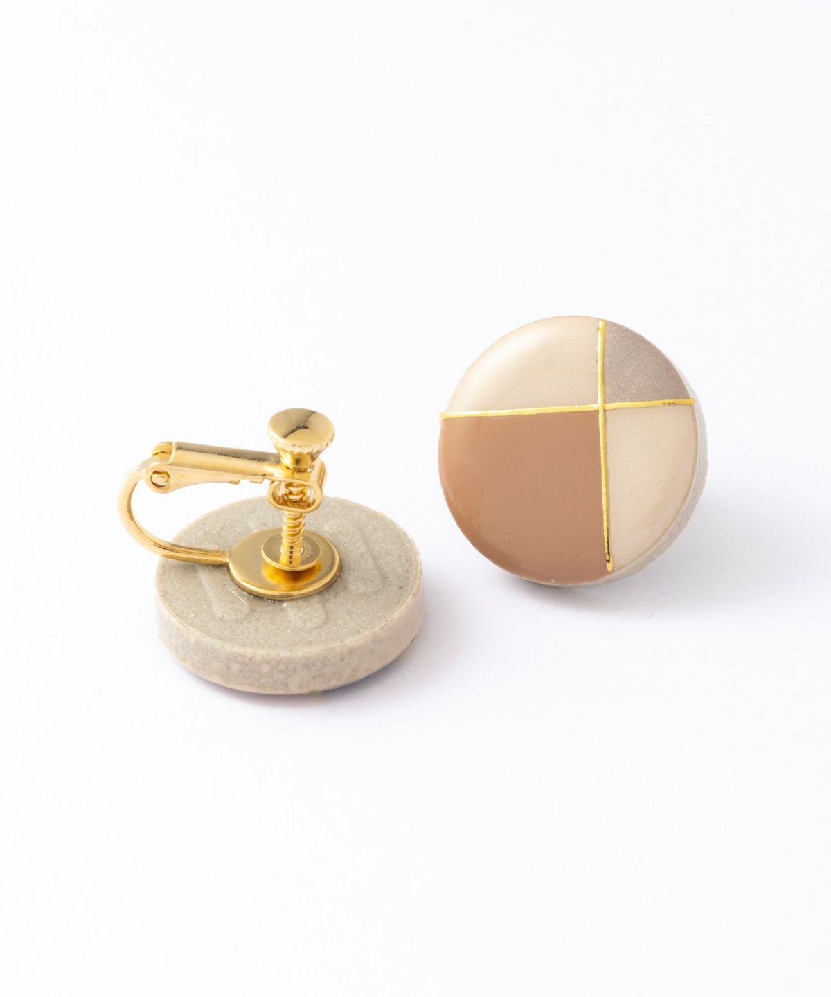 【MUK別注】美濃焼フレンチクラシカルブラウングリッドイヤリング【MIKELO】