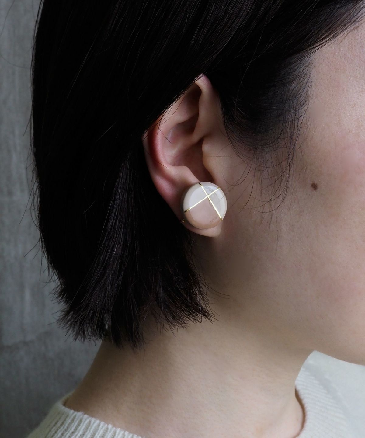 陶器のアクセサリーブランド"MIKELO"とMUKがコラボ企画した別注アイテムです。MIKELOの高級感あふれるデザインとMUKのコンセプトカラーが融合し、上品で柔らかな雰囲気に仕上がりました。ダスティホワイトの陶器にフレンチクラシカルのテイストをプラス。どんなスタイルにも合わせやすく、ワンランク上の装いに。