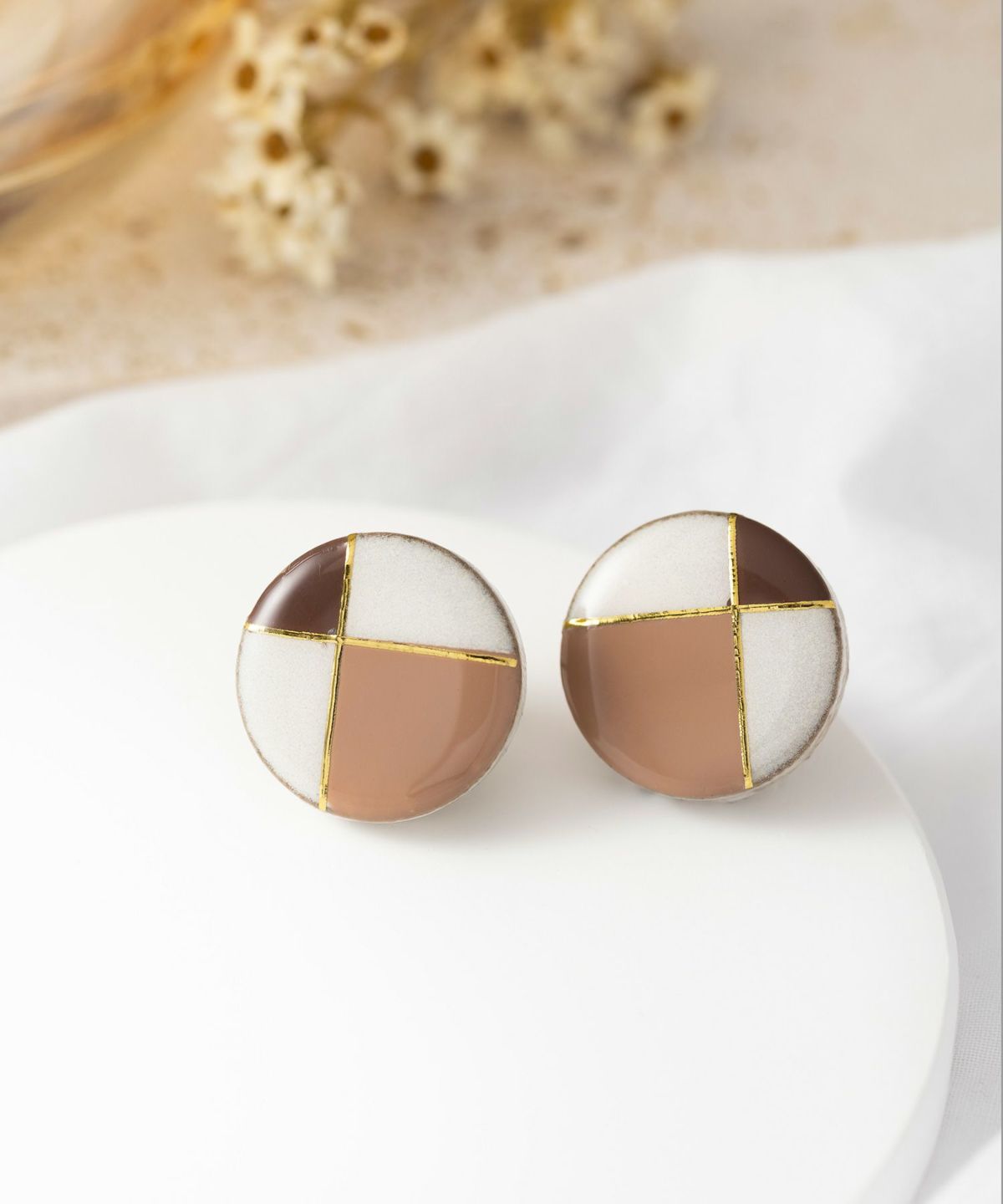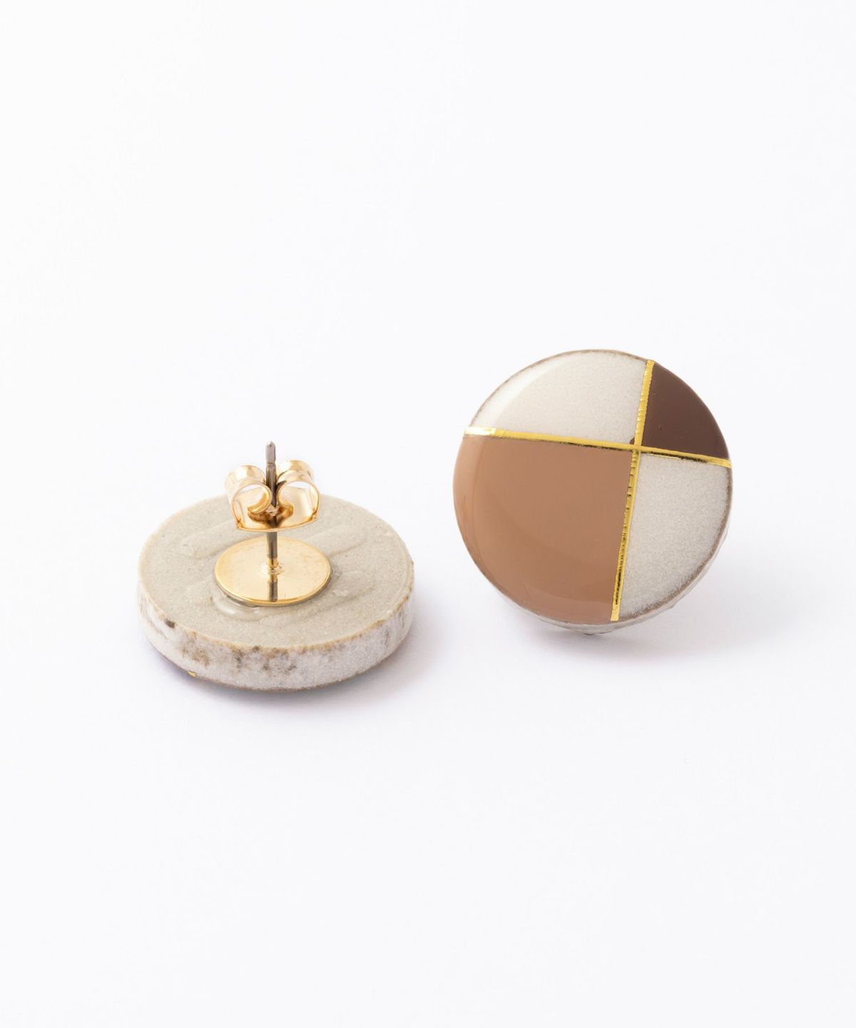 陶器のアクセサリーブランド"MIKELO"とMUKがコラボ企画した別注アイテムです。MIKELOの高級感あふれるデザインとMUKのコンセプトカラーが融合し、上品で柔らかな雰囲気に仕上がりました。ダスティホワイトの陶器にフレンチクラシカルのテイストをプラス。どんなスタイルにも合わせやすく、ワンランク上の装いに。 ペアピアス(両耳用)です。