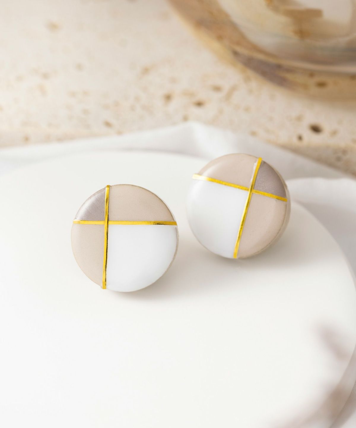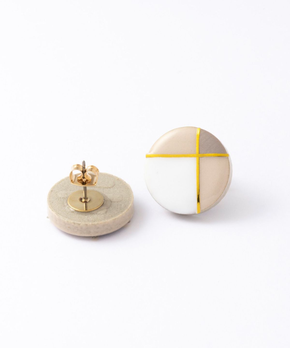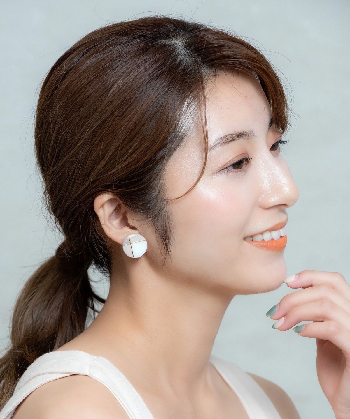 陶器のアクセサリーブランド"MIKELO"とMUKがコラボ企画した別注アイテムです。MIKELOの高級感あふれるデザインとMUKのコンセプトカラーが融合し、上品で柔らかな雰囲気に仕上がりました。White×Pure beige×Moca brownの優しいカラーで、どんなスタイルにも合わせやすく、ワンランク上の装いに。 ペアピアス(両耳用)です。