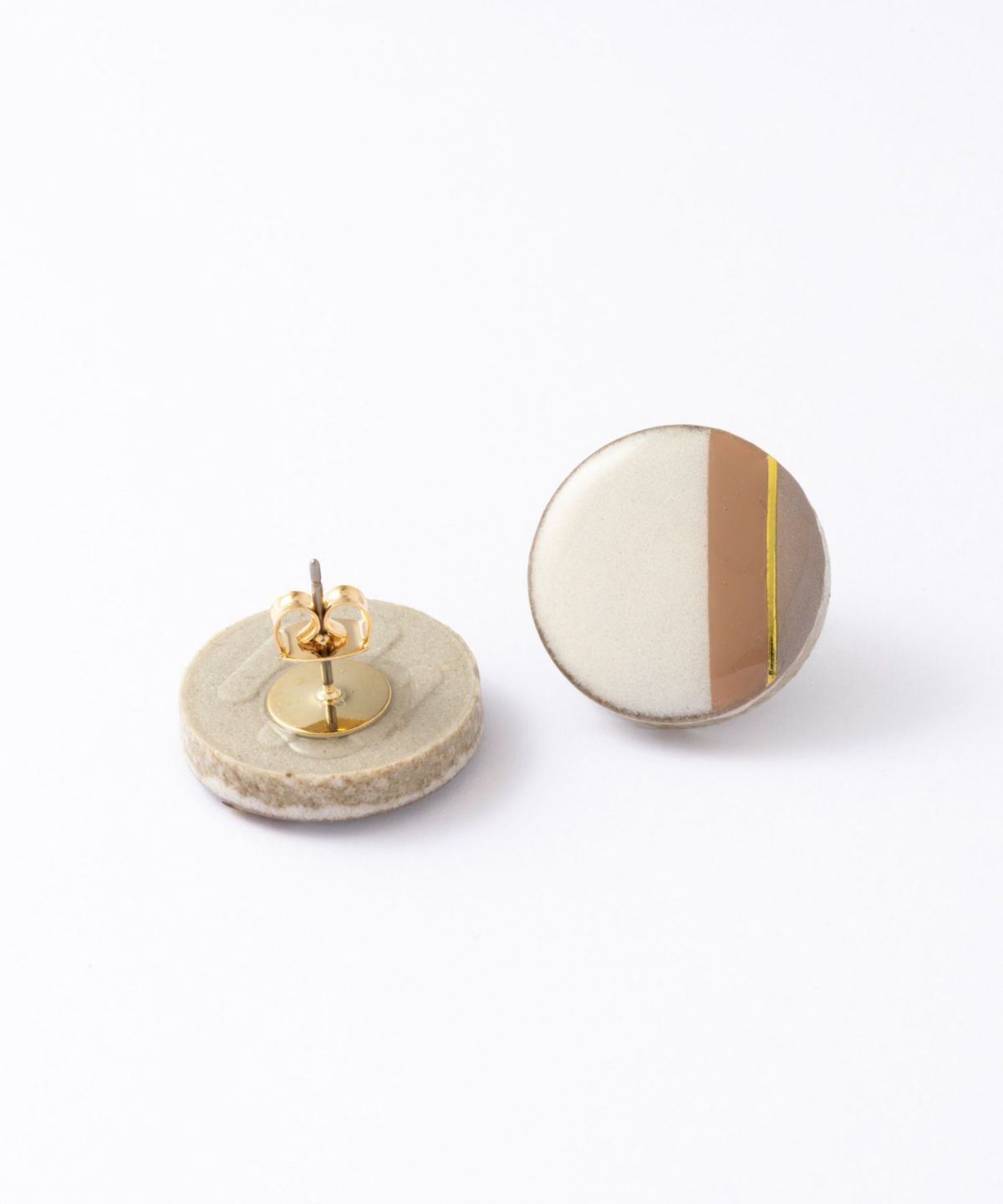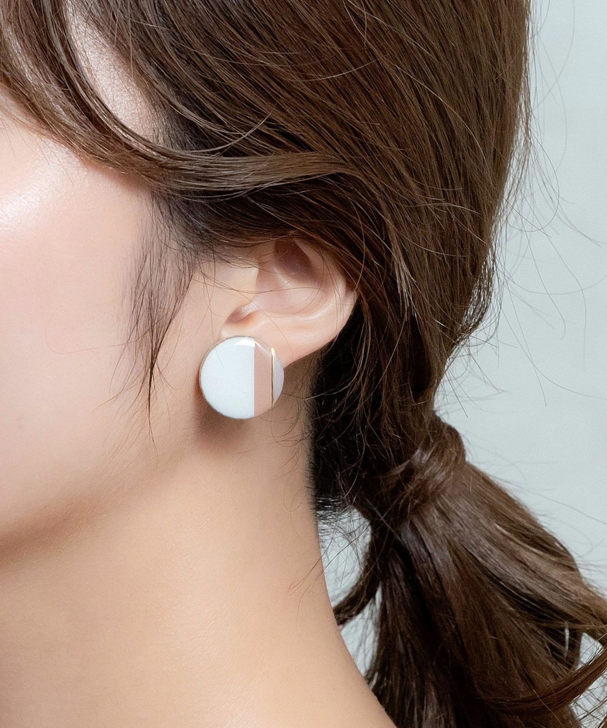 陶器のアクセサリーブランド"MIKELO"とMUKがコラボ企画した別注アイテムです。MIKELOの高級感あふれるデザインとMUKのコンセプトカラーが融合し、上品で柔らかな雰囲気に仕上がりました。Dusty White×Beige×Moca brownの優しいカラーで、どんなスタイルにも合わせやすく、ワンランク上の装いに。 ペアピアス(両耳用)です。