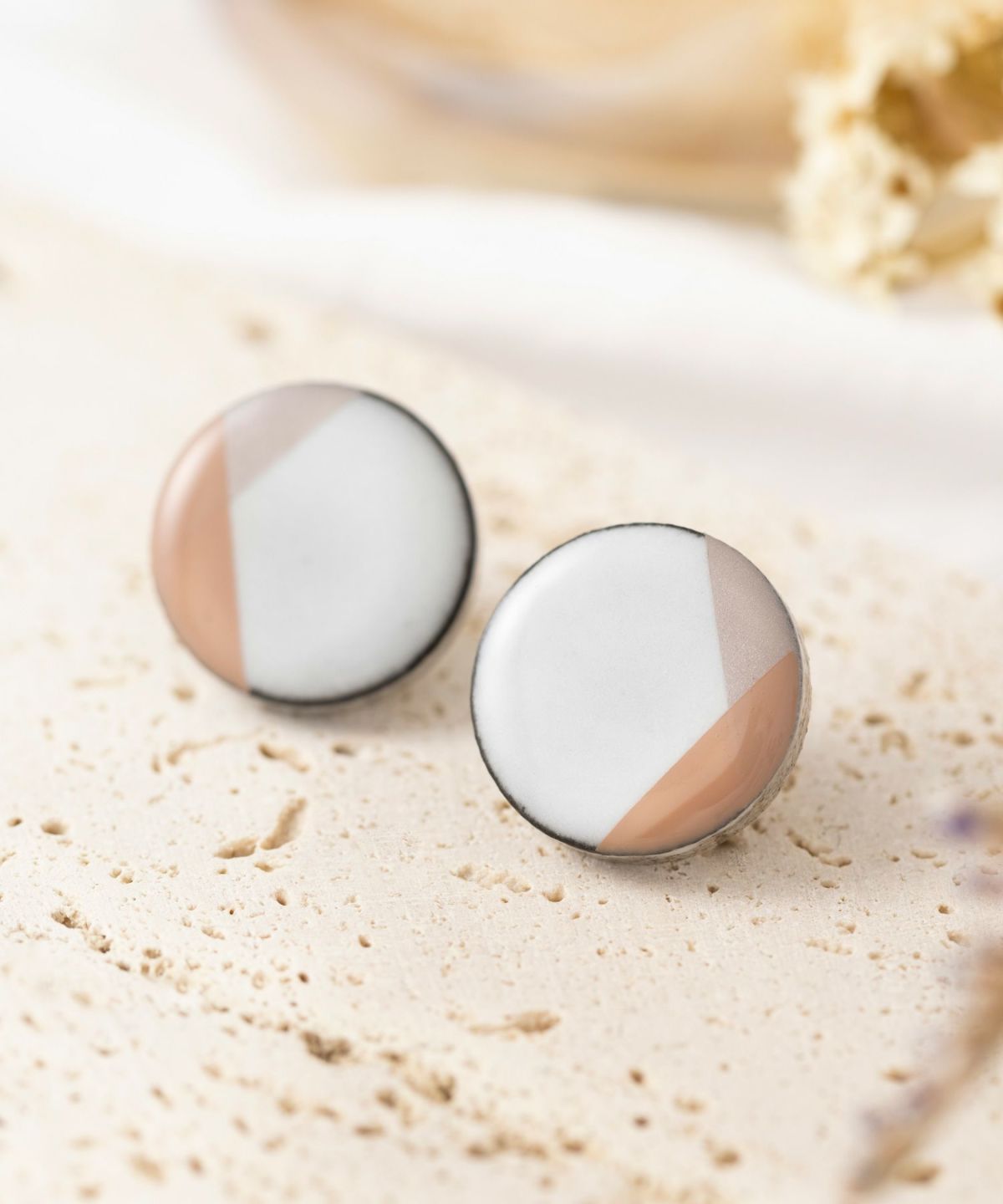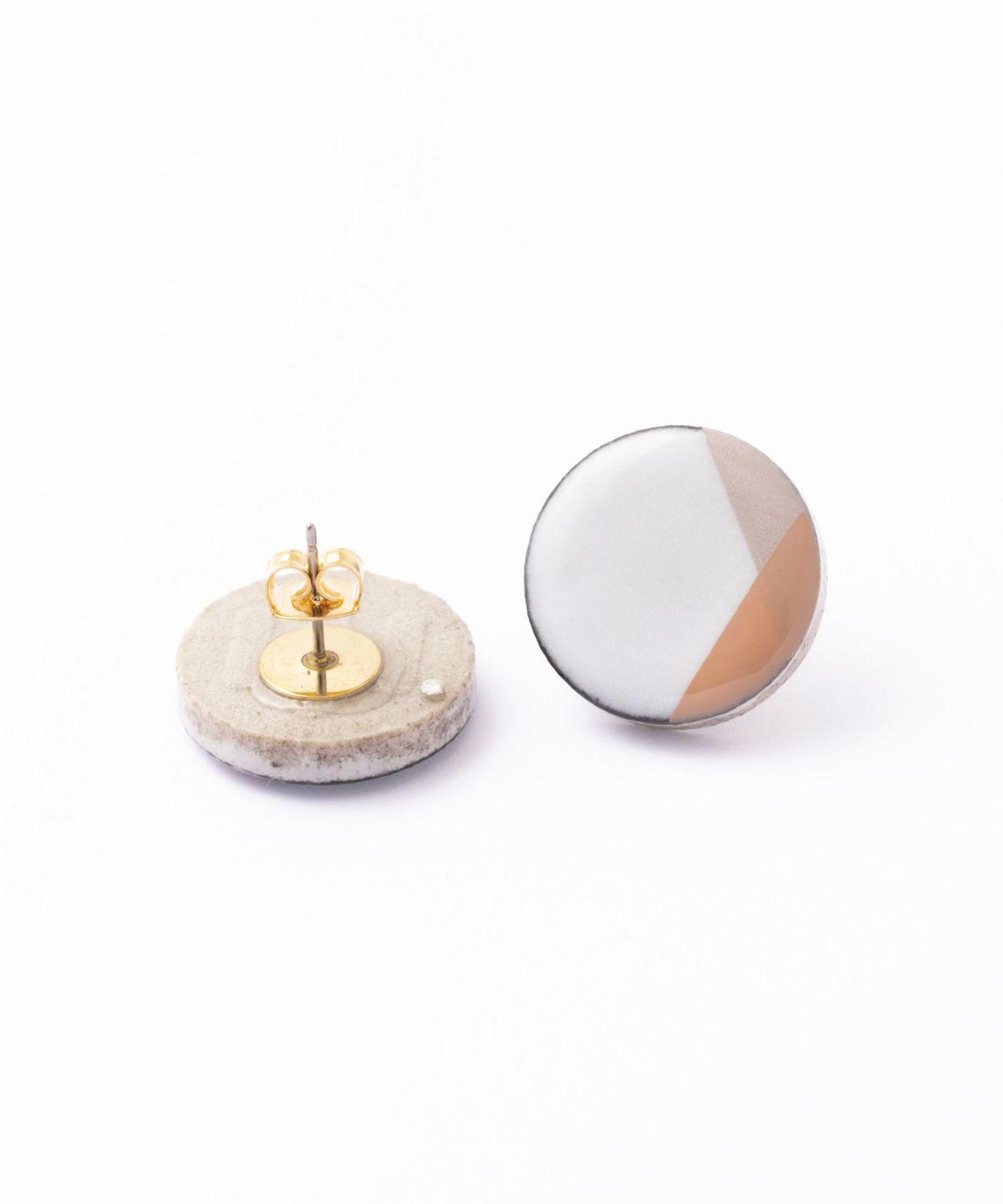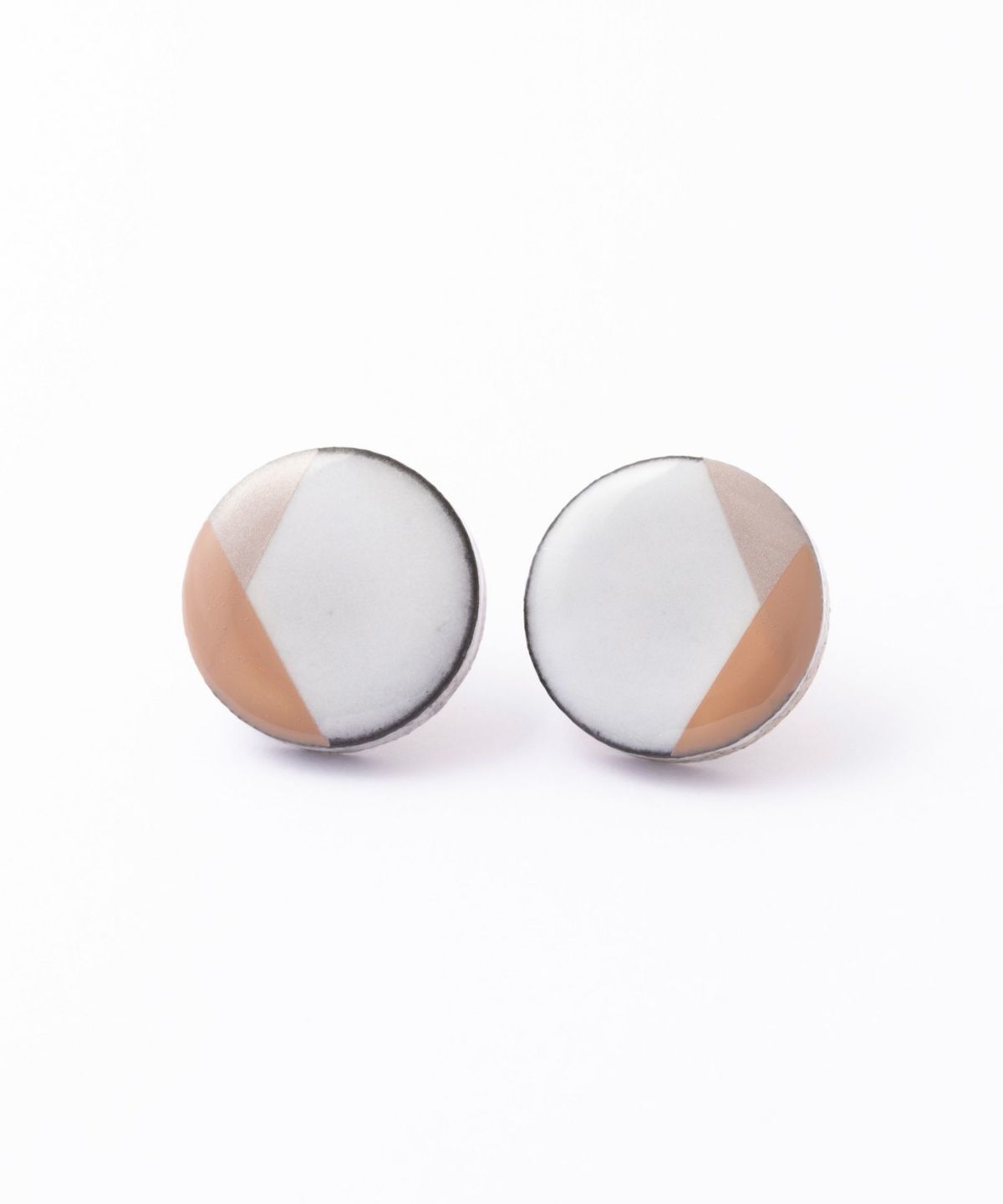 陶器のアクセサリーブランド"MIKELO"とMUKがコラボ企画した別注アイテムです。MIKELOの高級感あふれるデザインとMUKのコンセプトカラーが融合し、上品で柔らかな雰囲気に仕上がりました。Dusty White×Beige×Moca brown優しいカラーで、どんなスタイルにも合わせやすく、ワンランク上の装いに。 ペアピアス(両耳用)です。